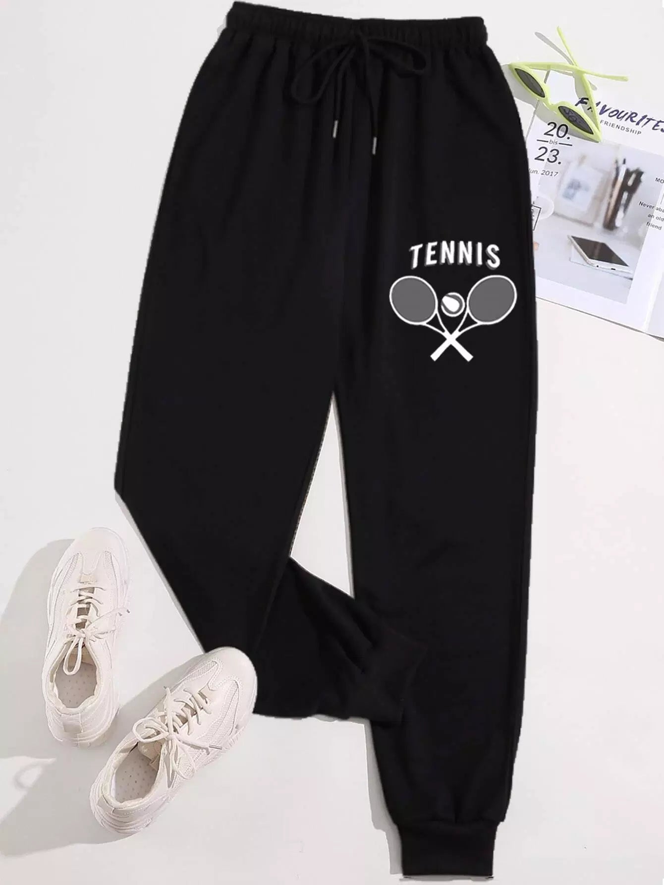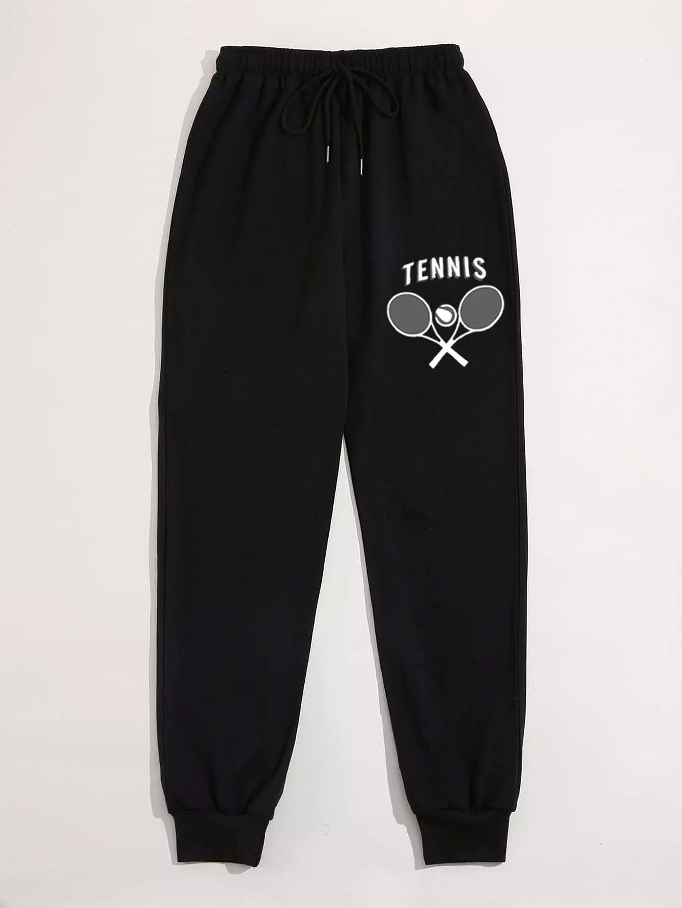 Tennis And Letter Graphic Drawstring Waist Sweatpants