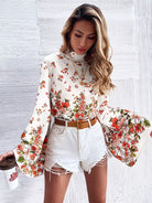 Women - Tie Back Bell Sleeve Floral Print Blouse