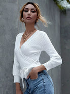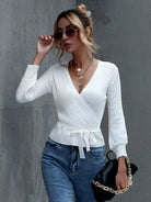 Tie Front Surplice Sweater