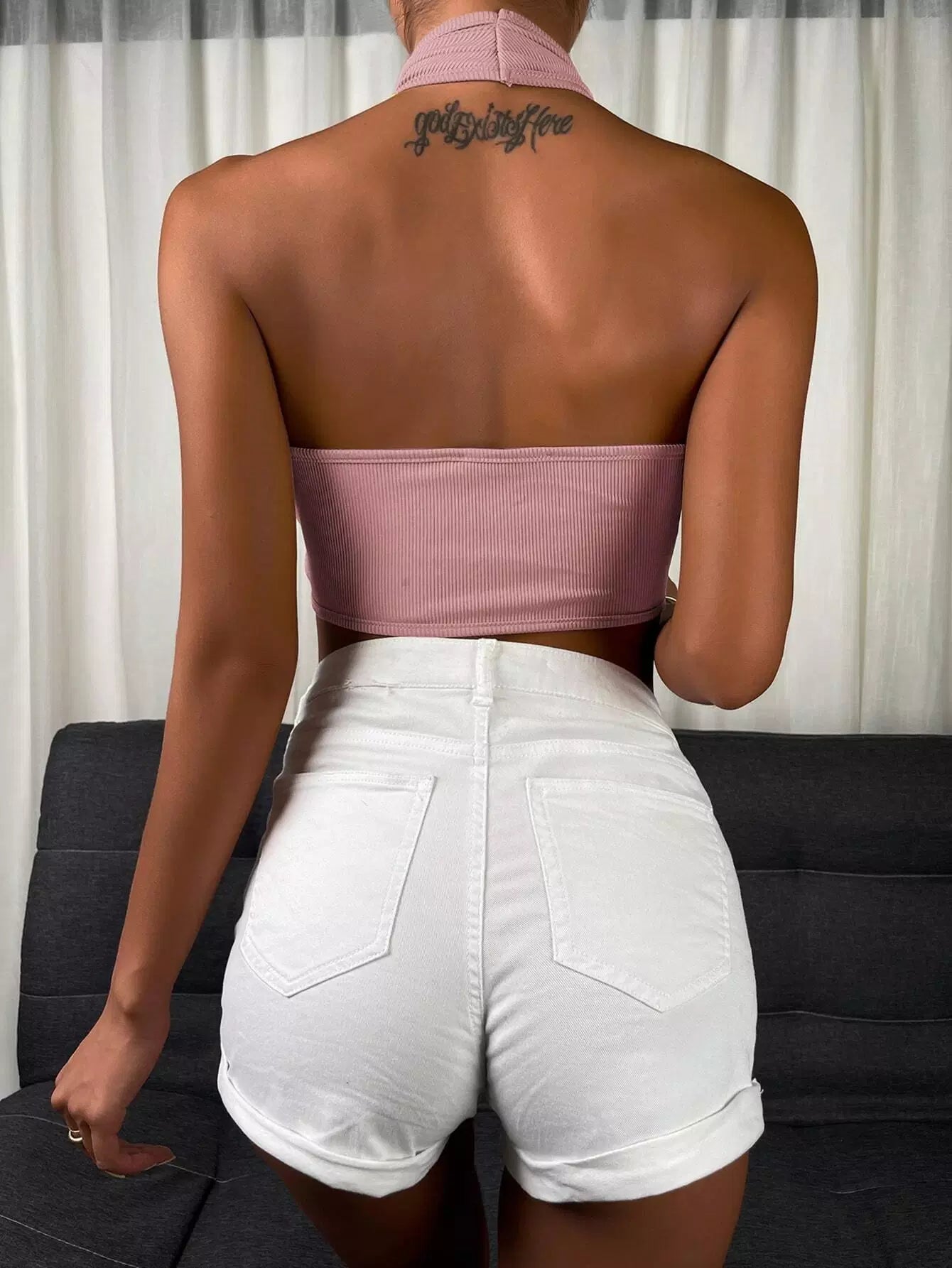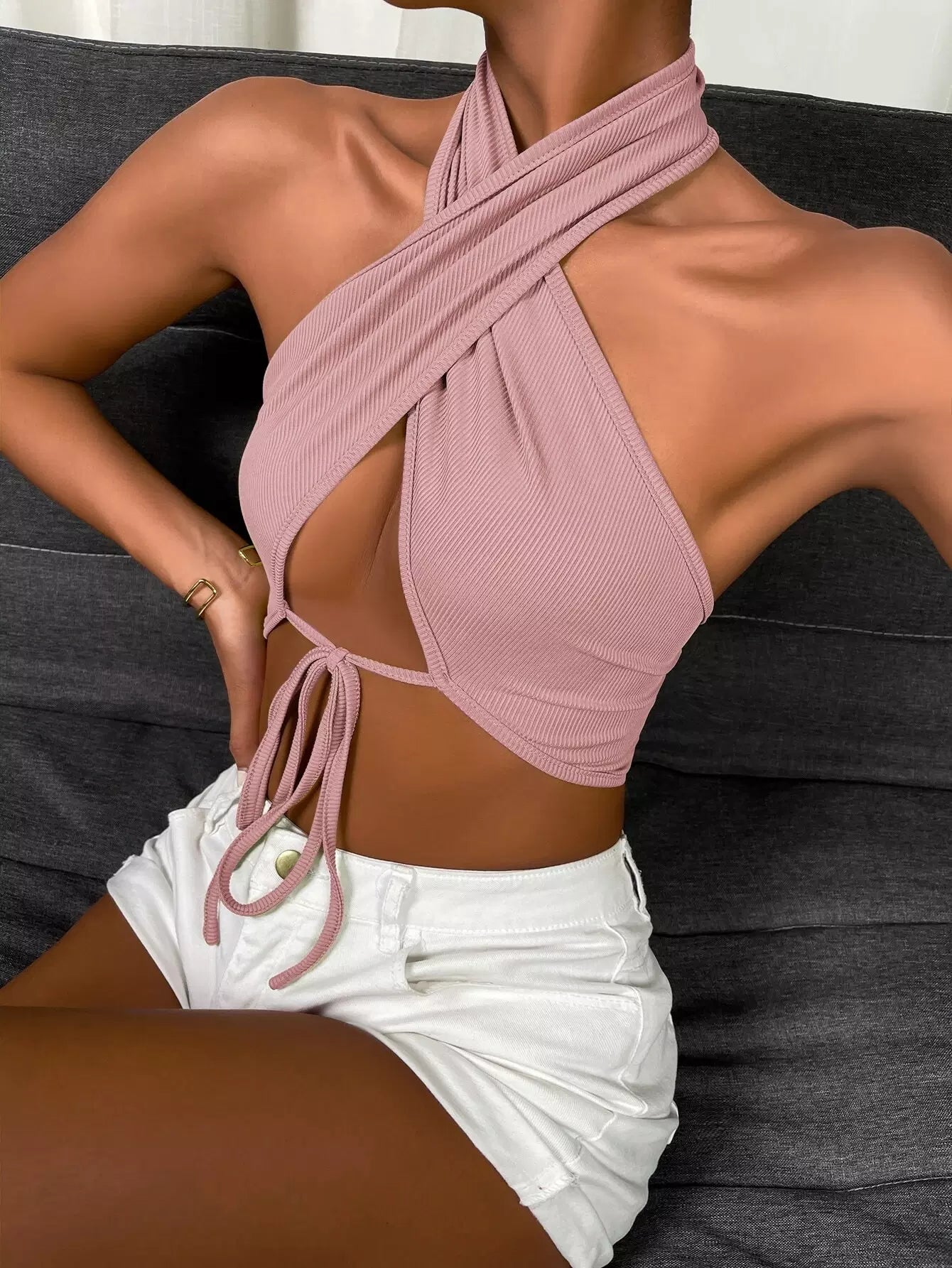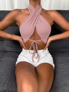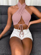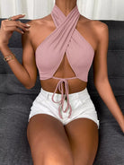 Tie Front Wrap Cross Halter Crop Top