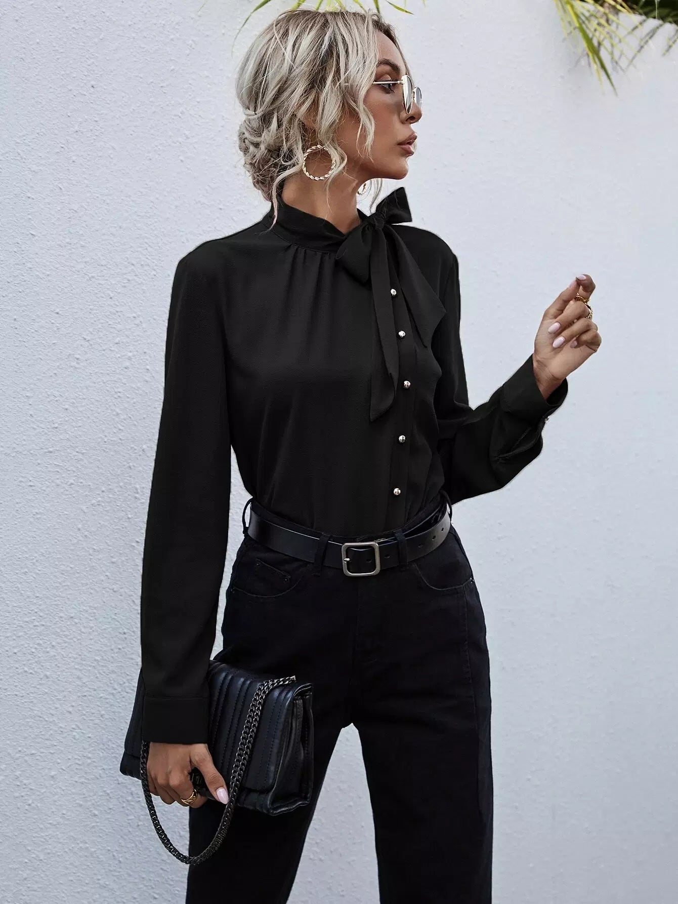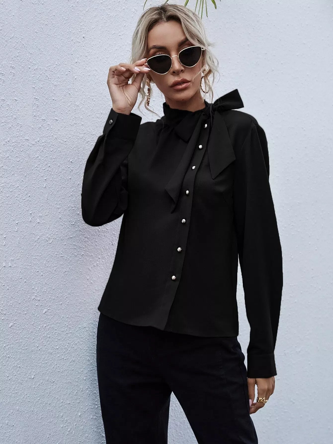 Tie Neck Button Front Blouse