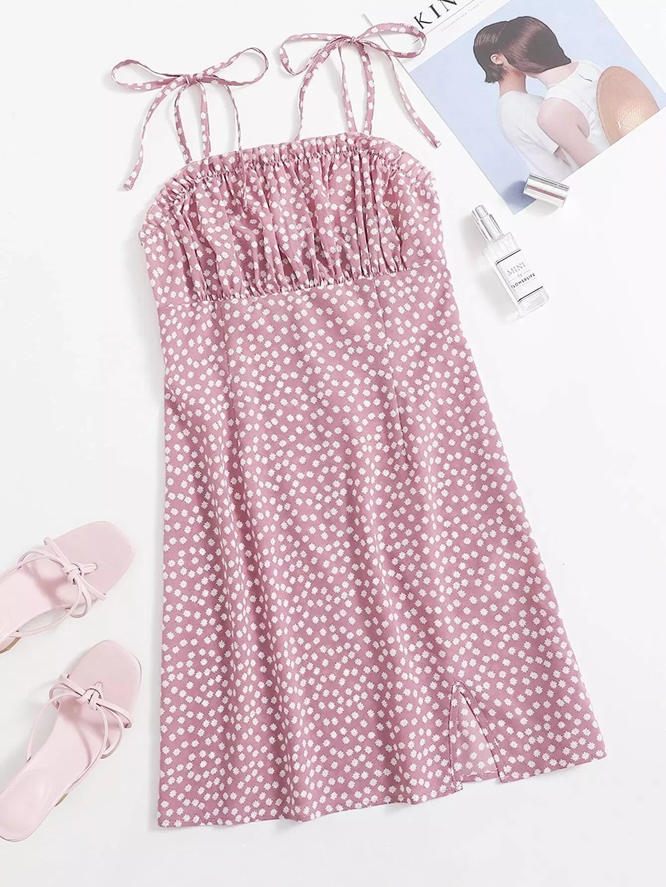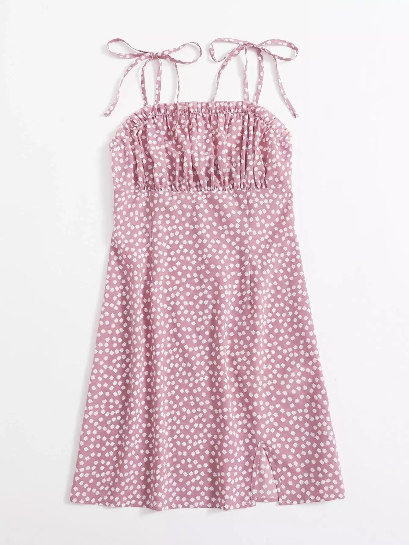 Tie Shoulder Ruched Bust Ditsy Floral Dress