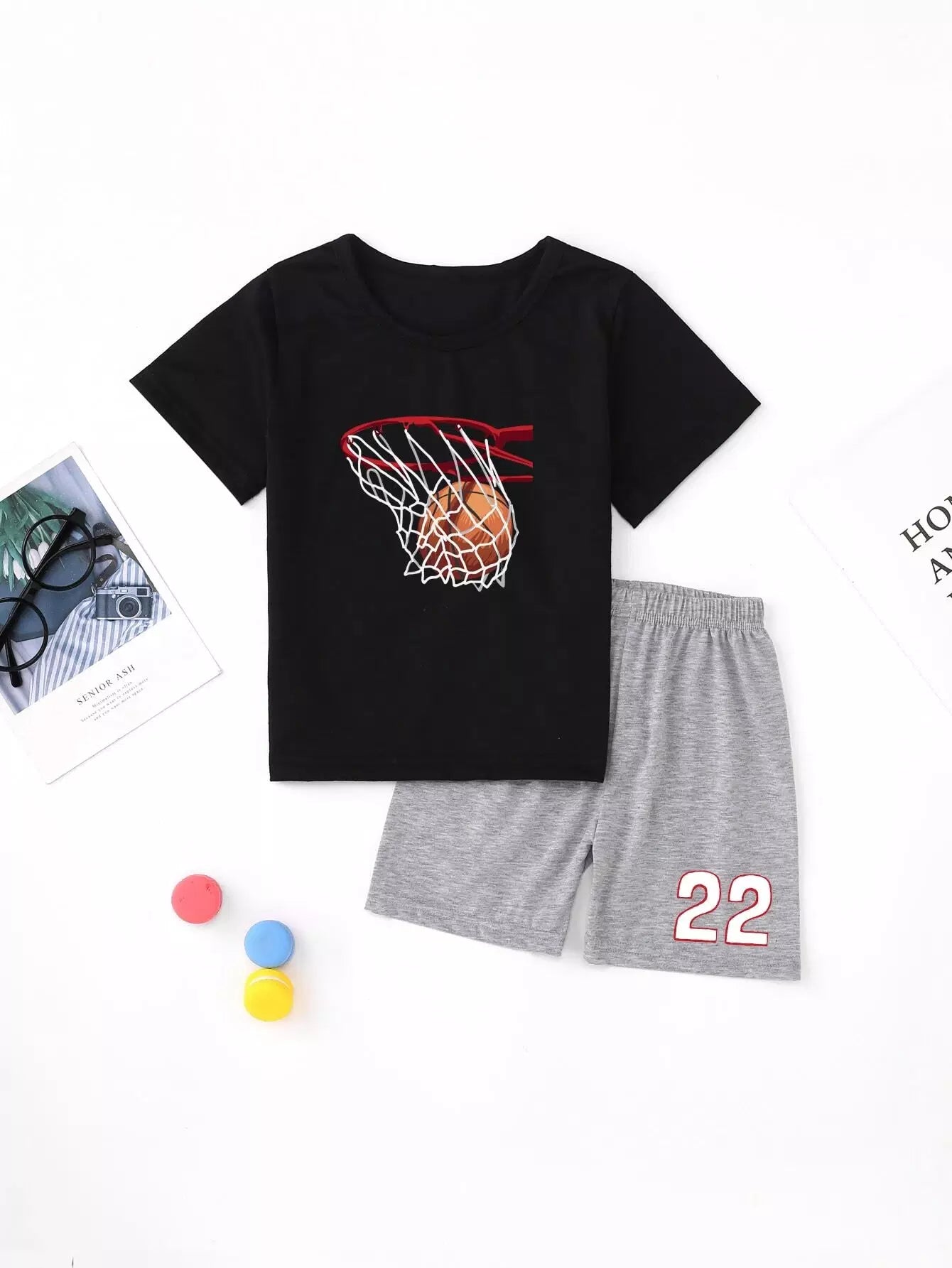 Toddler Boys Basketball Print Tee & Athletic Shorts