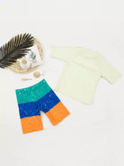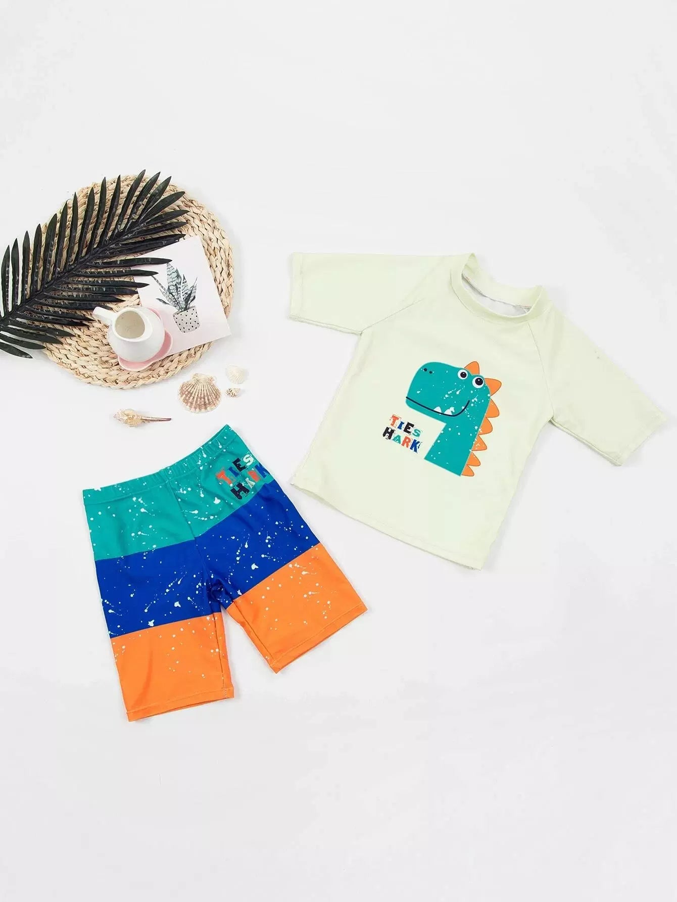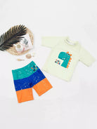 Toddler Boys Cartoon Dinosaur & Colorblock Swimsuit