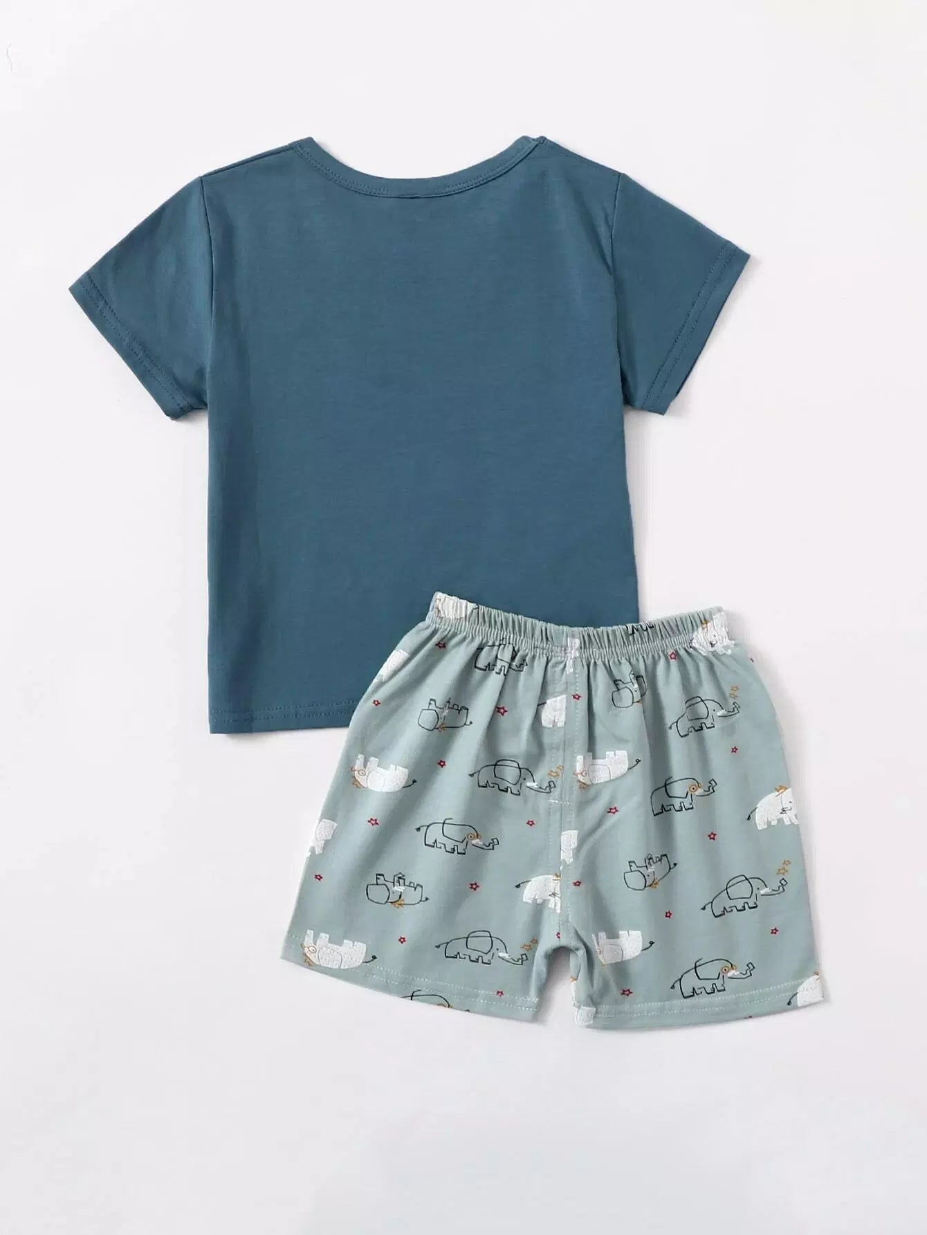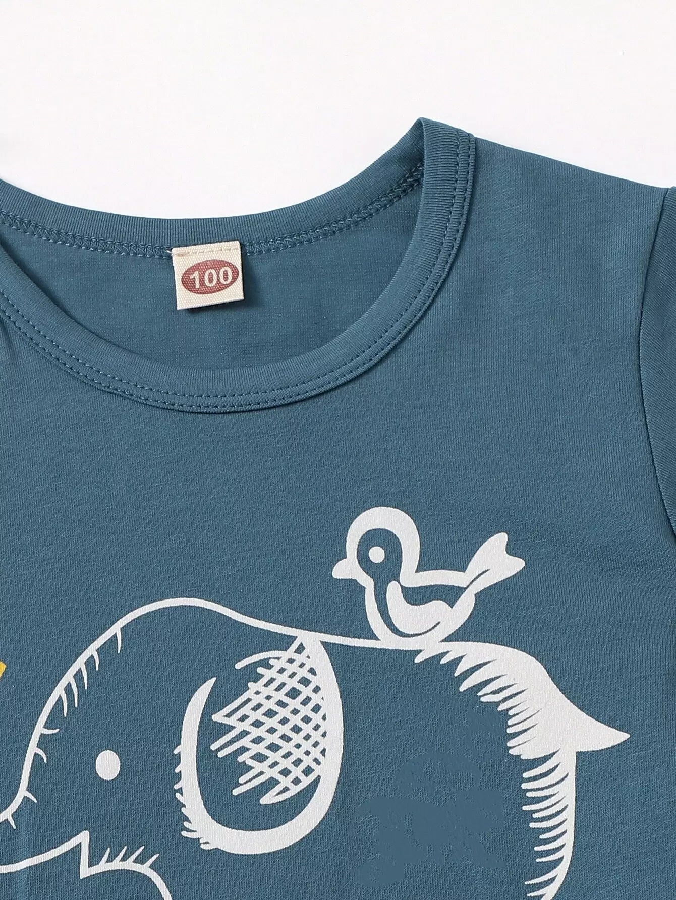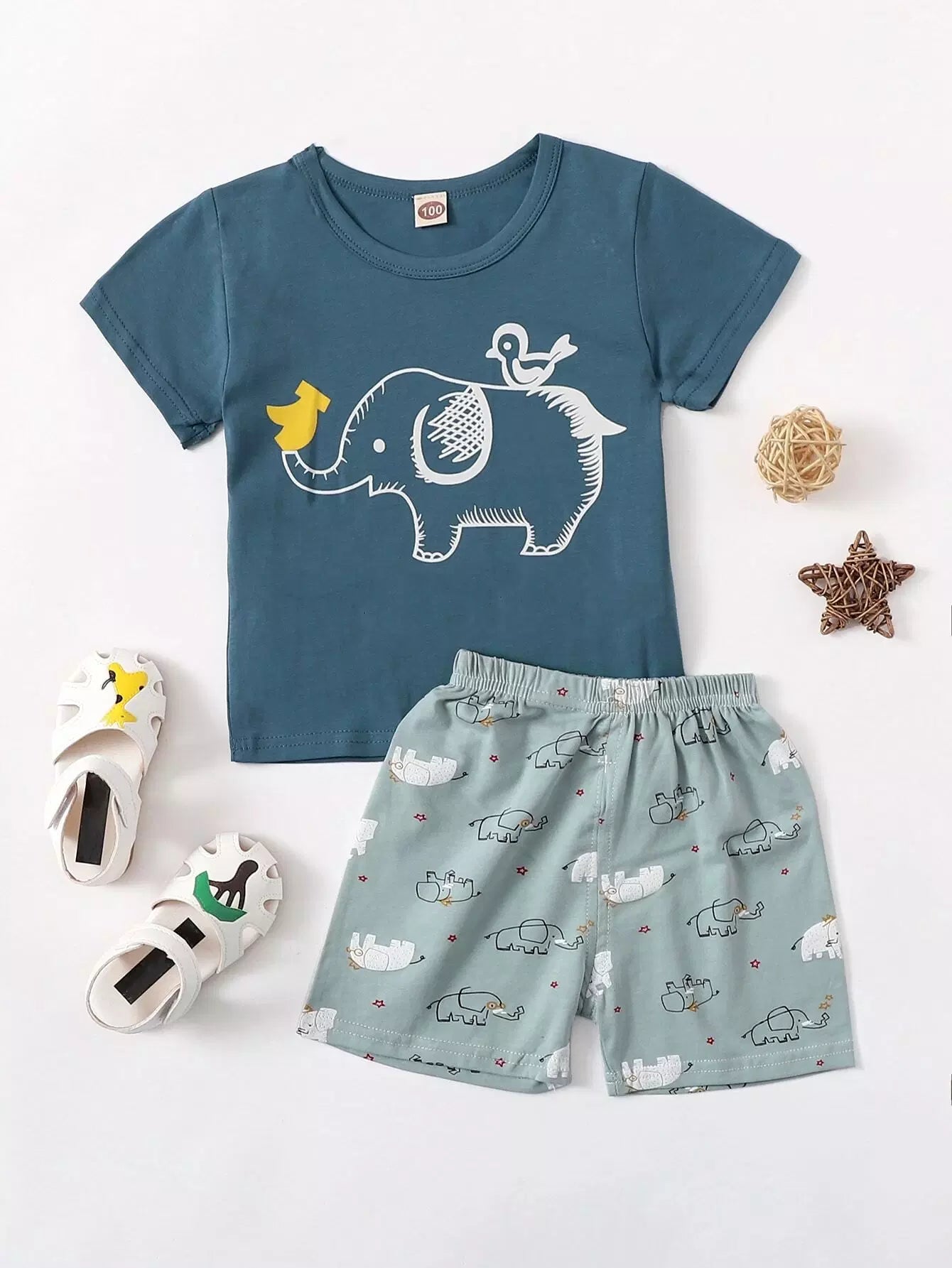 Kids - Toddler Boys Cartoon Elephant Graphic Tee & Shorts Set