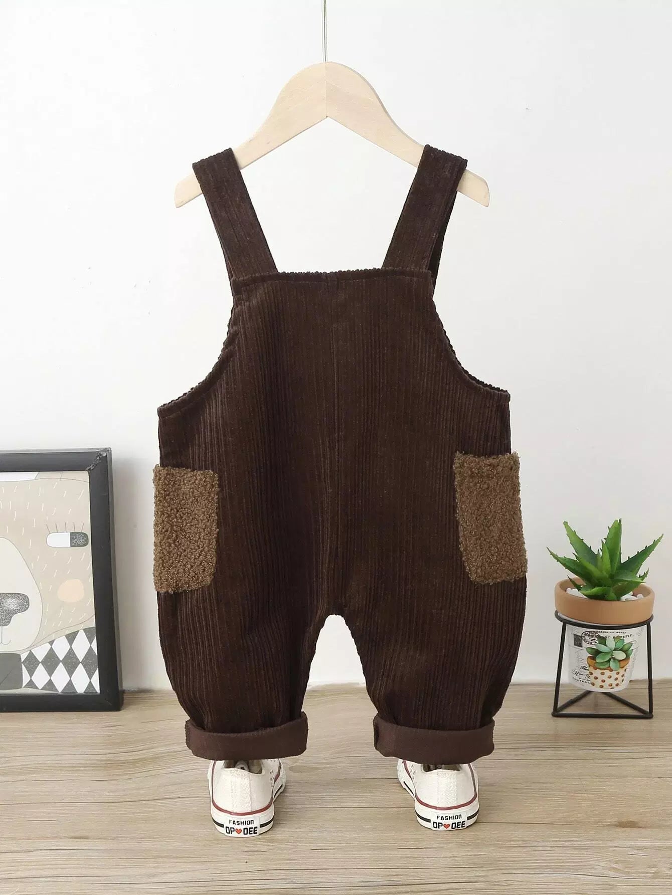 Toddler Boys Colorblock Teddy Panel Dual Pocket Corduroy Overalls