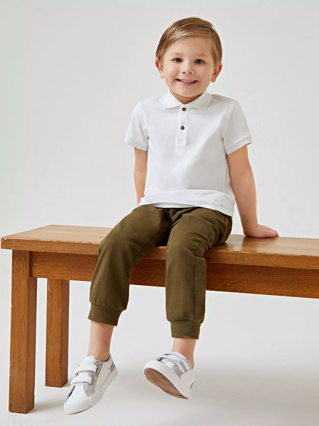 Toddler Boys Cotton Solid Polo Shirt & Joggers Set
