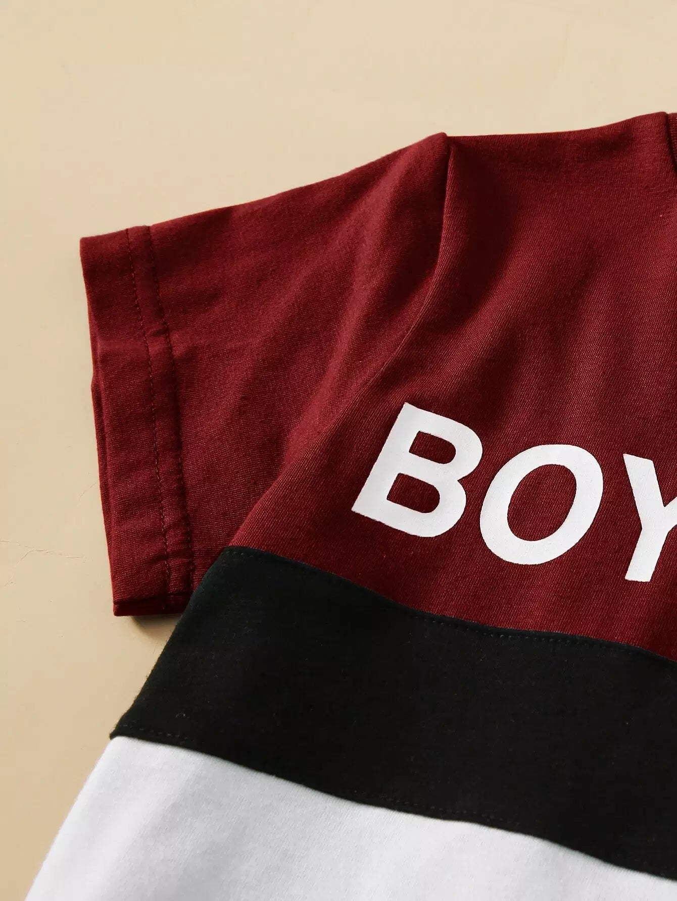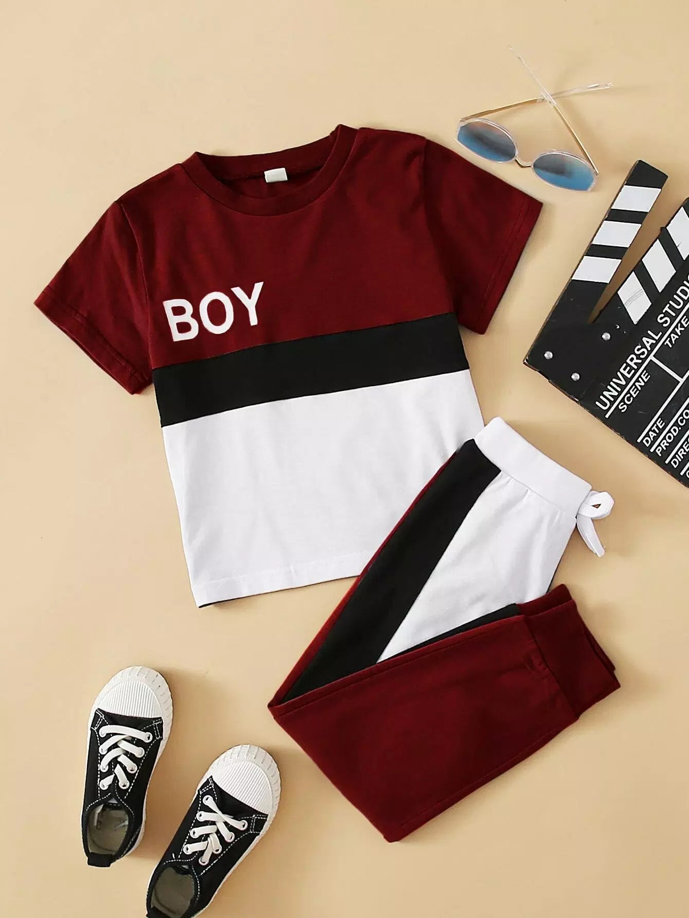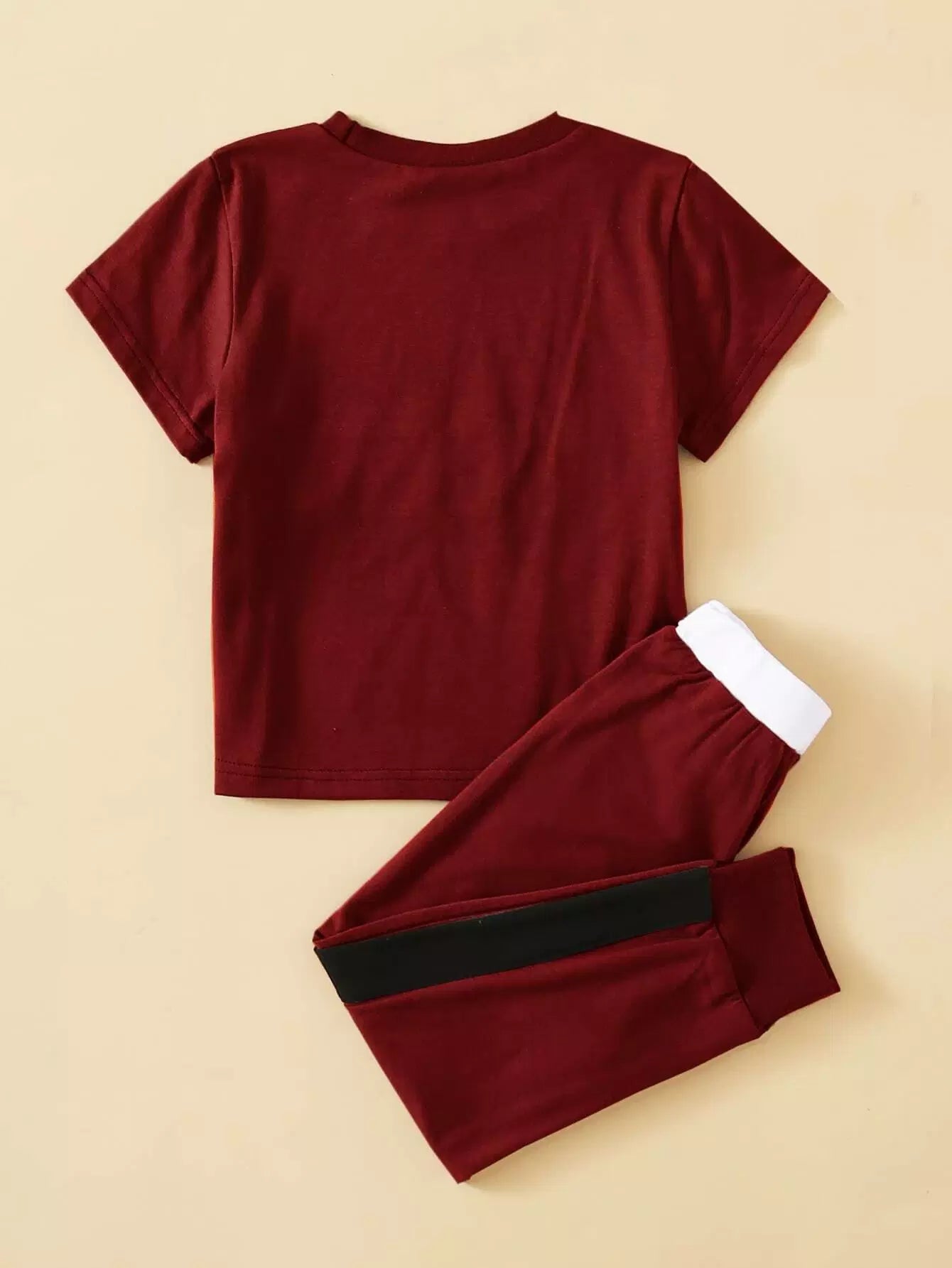 Toddler Boys Cut And Sew Letter Graphic Tee With Knot Sweatpants
