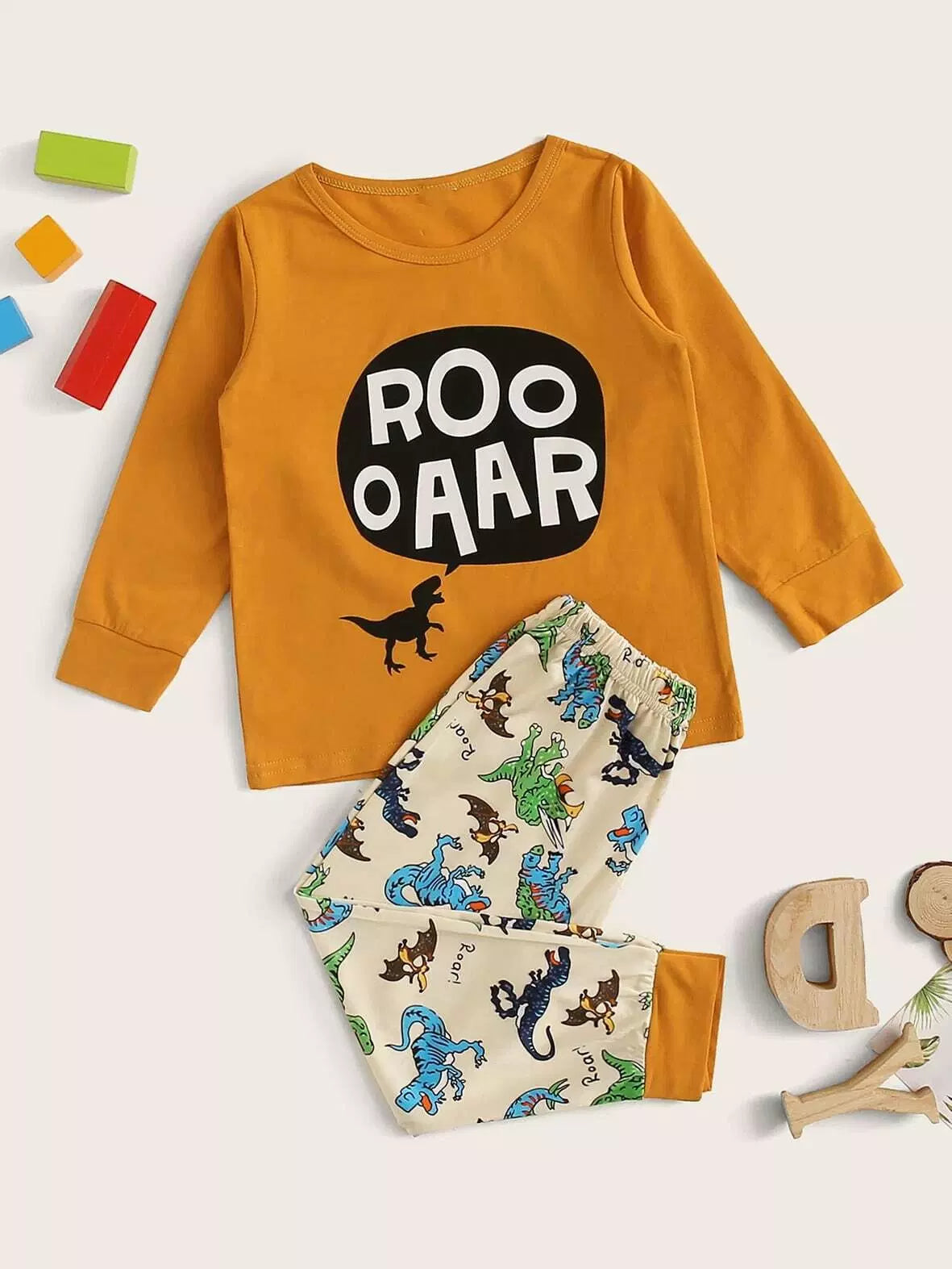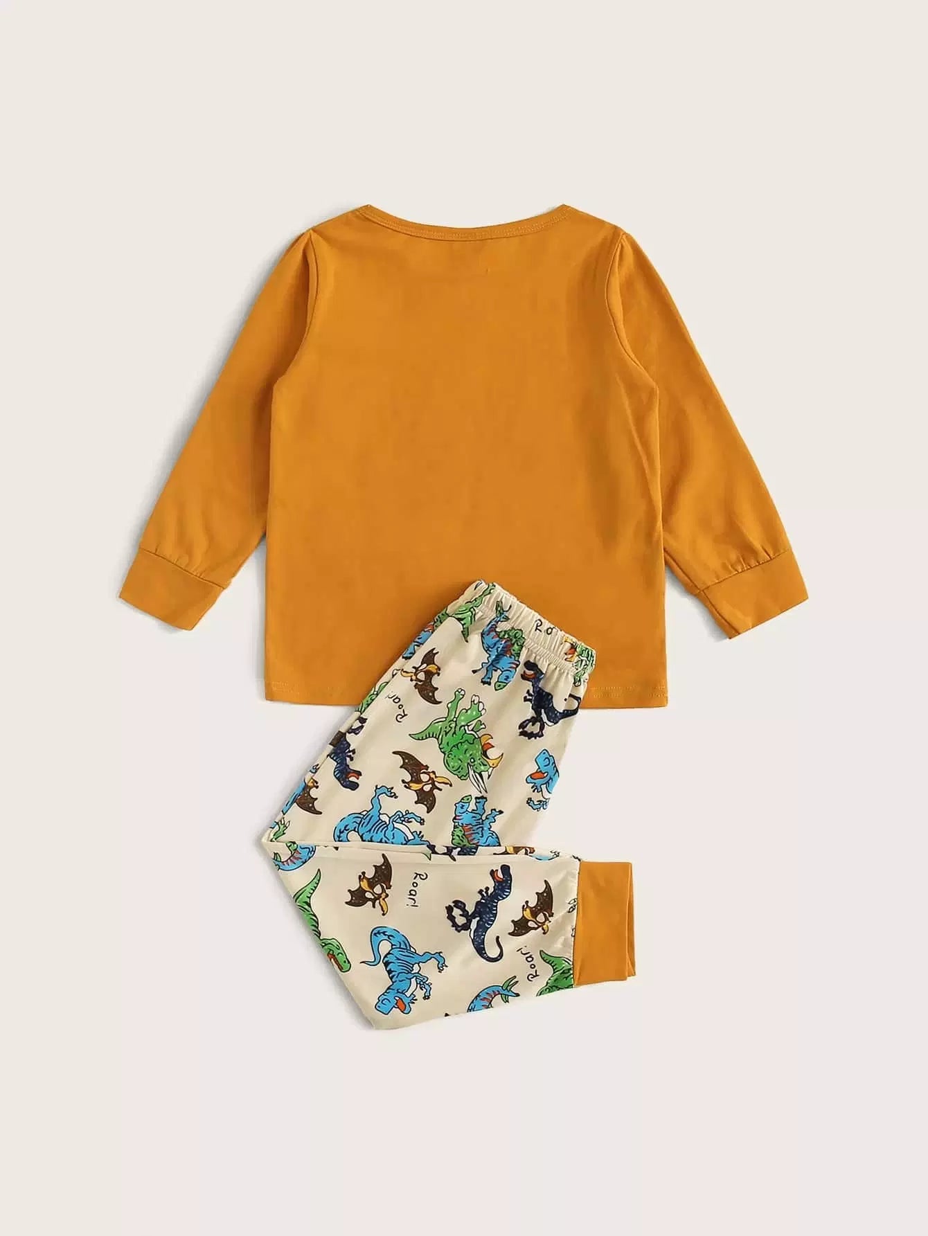 Kids - Toddler Boys Letter & Dinosaur Print PJ Set