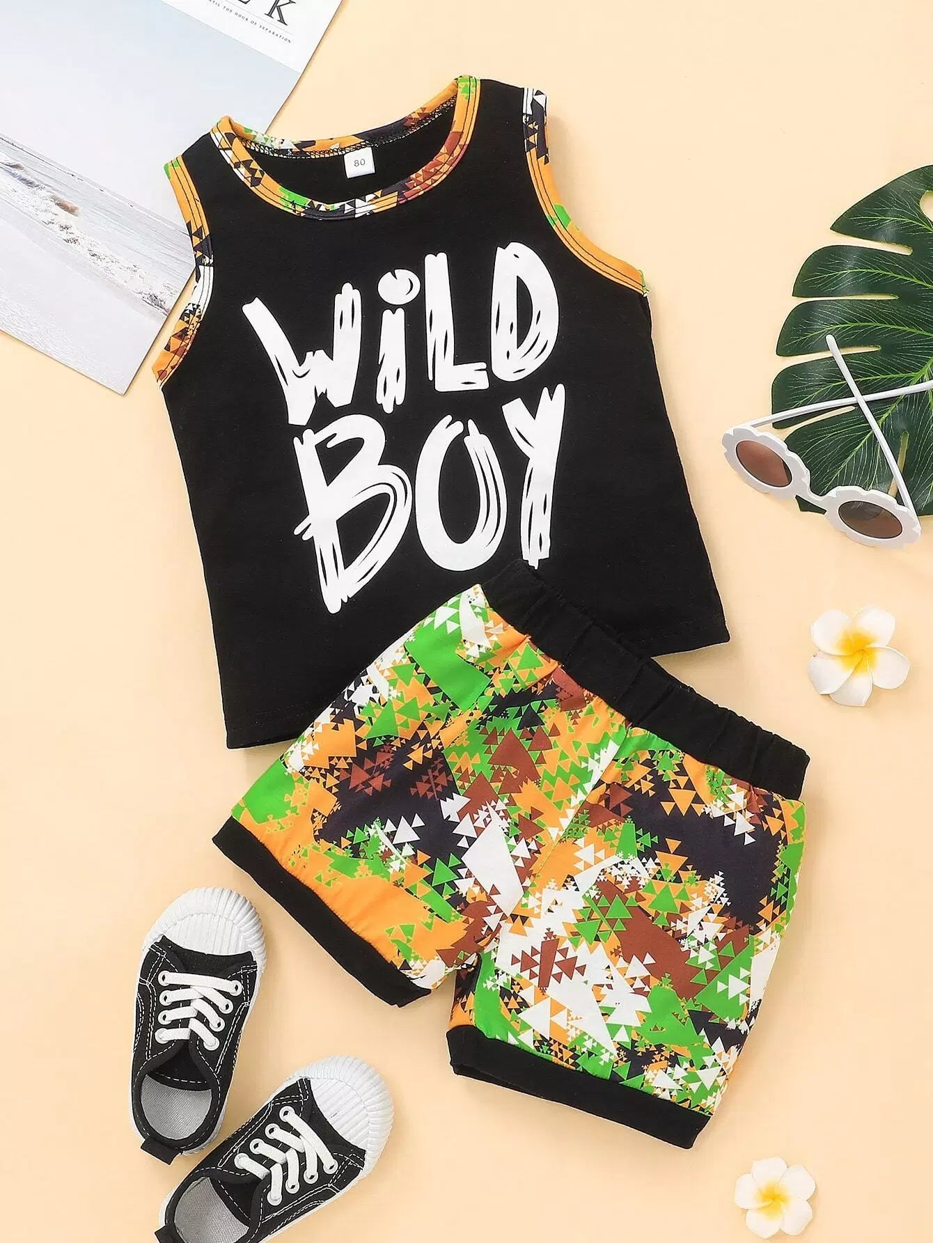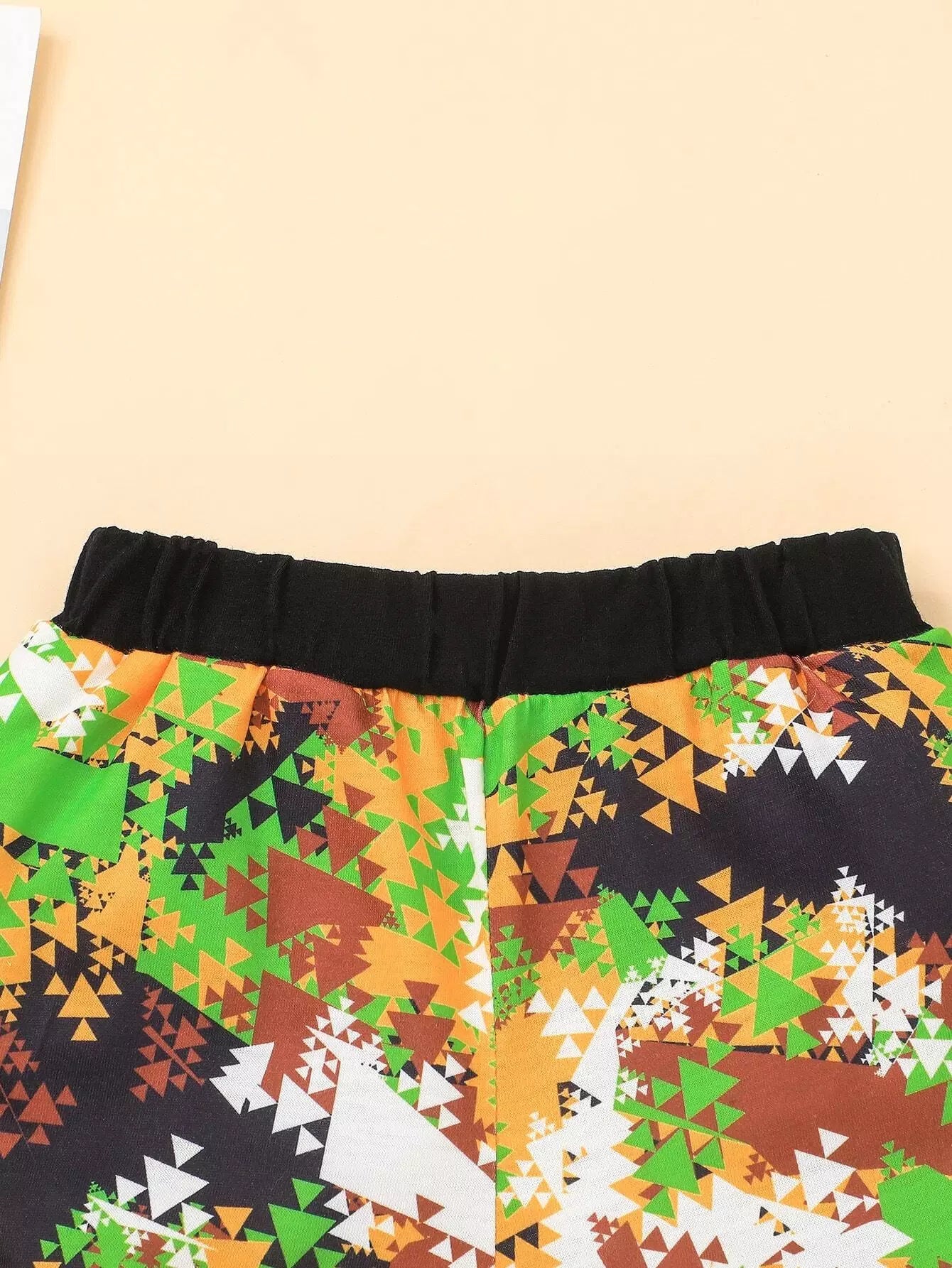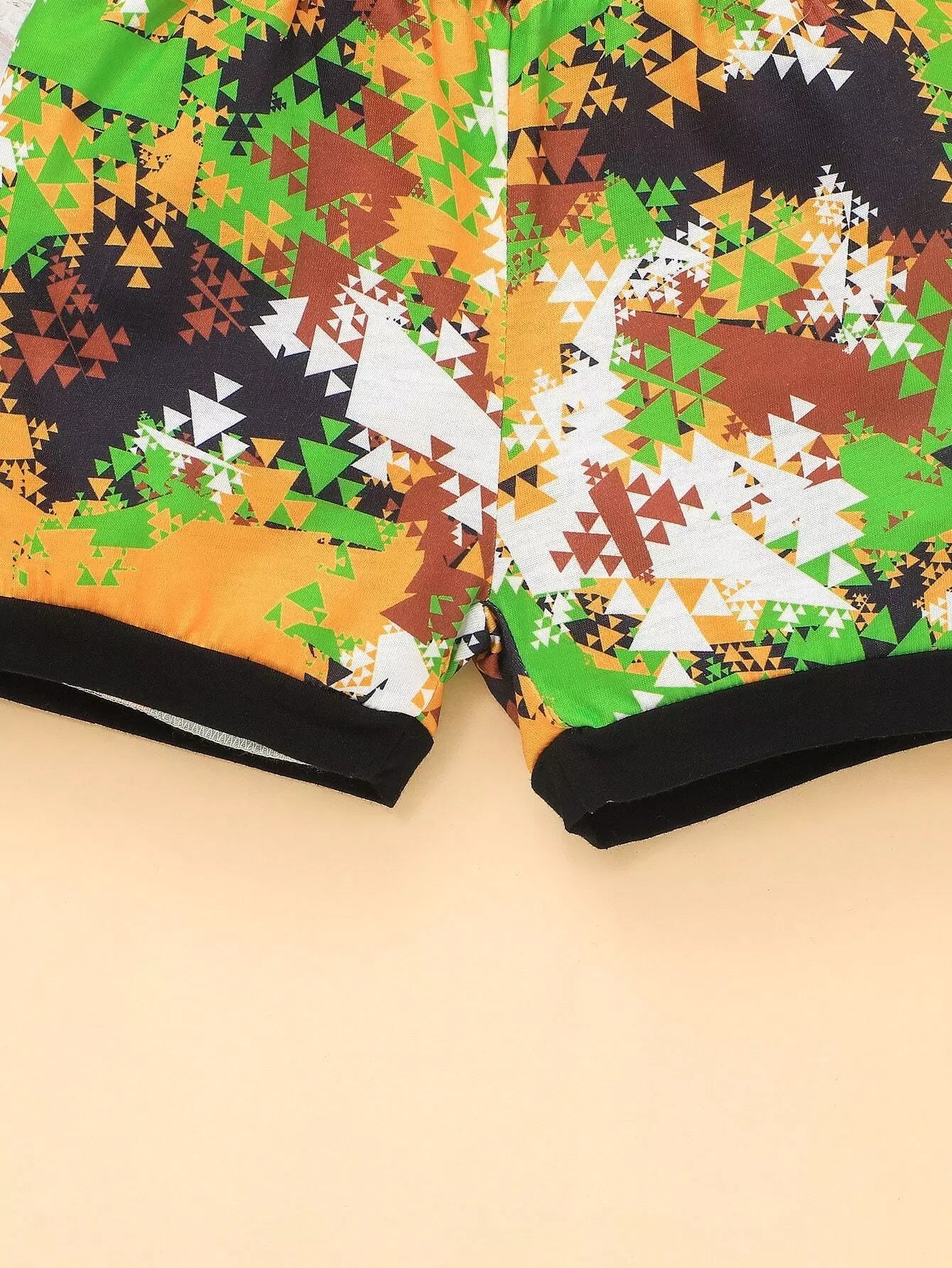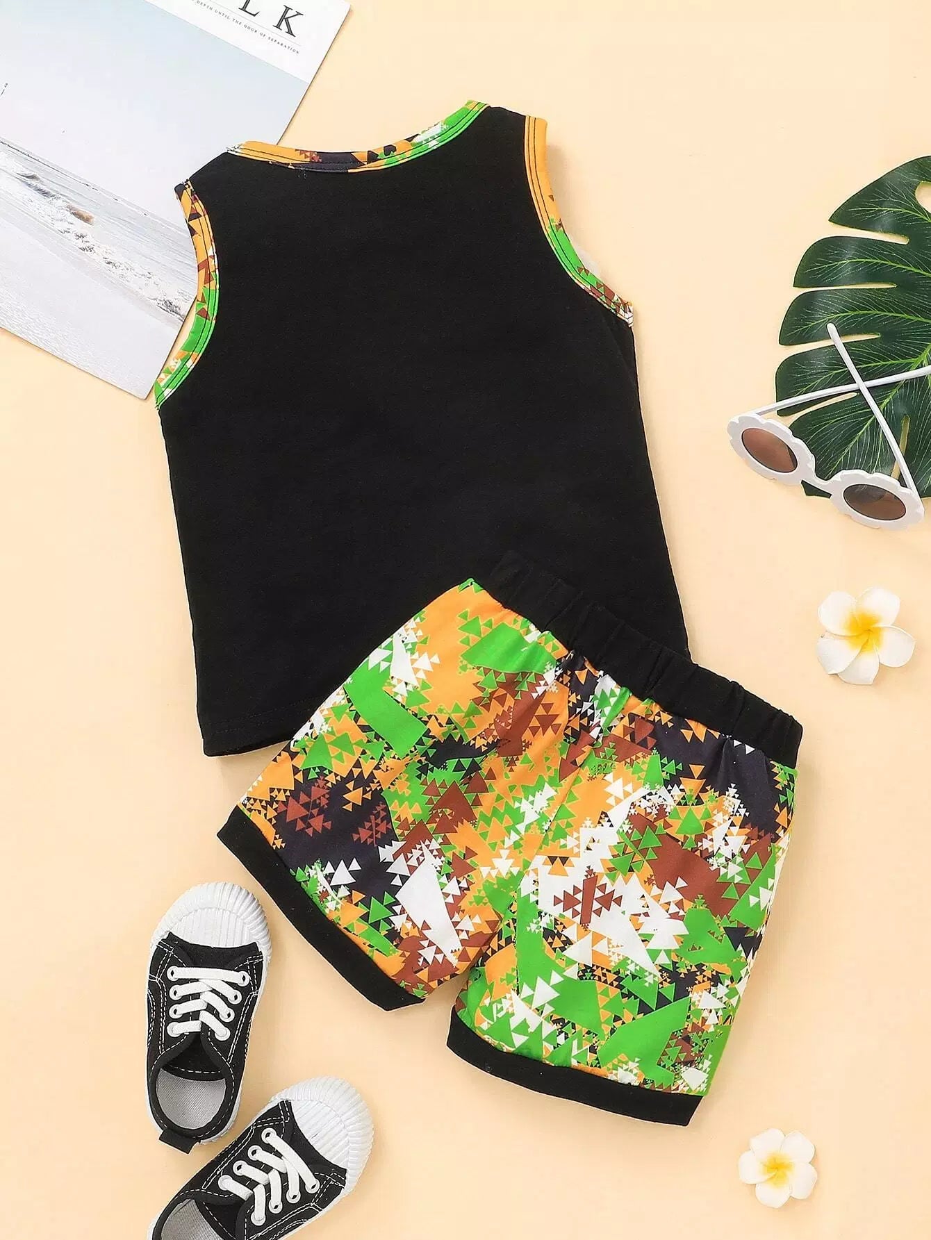 Toddler Boys Letter Graphic Contrast Binding Tank Top & Geo Print Shorts