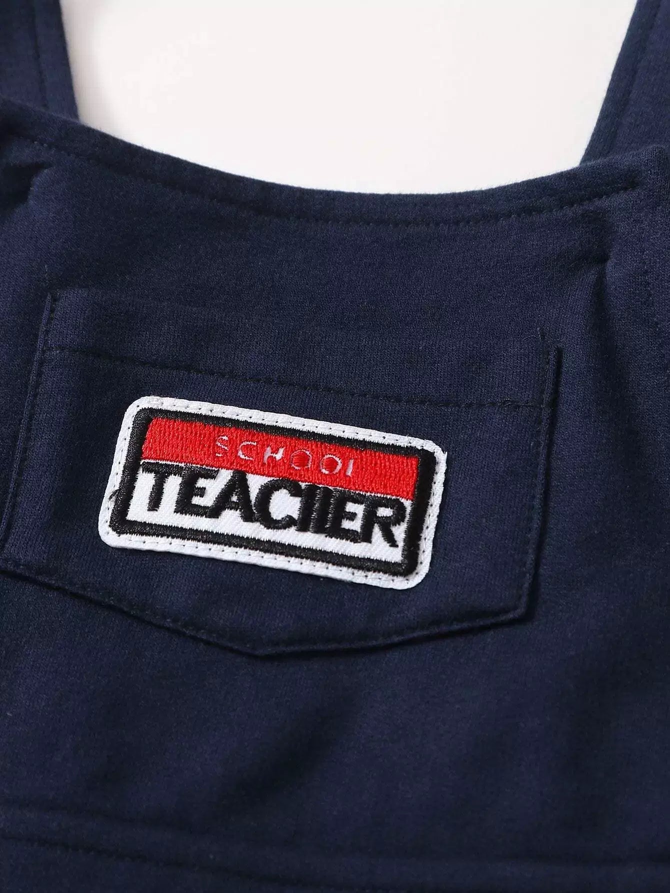Toddler Boys Patch Detail Triangle Trim Overalls