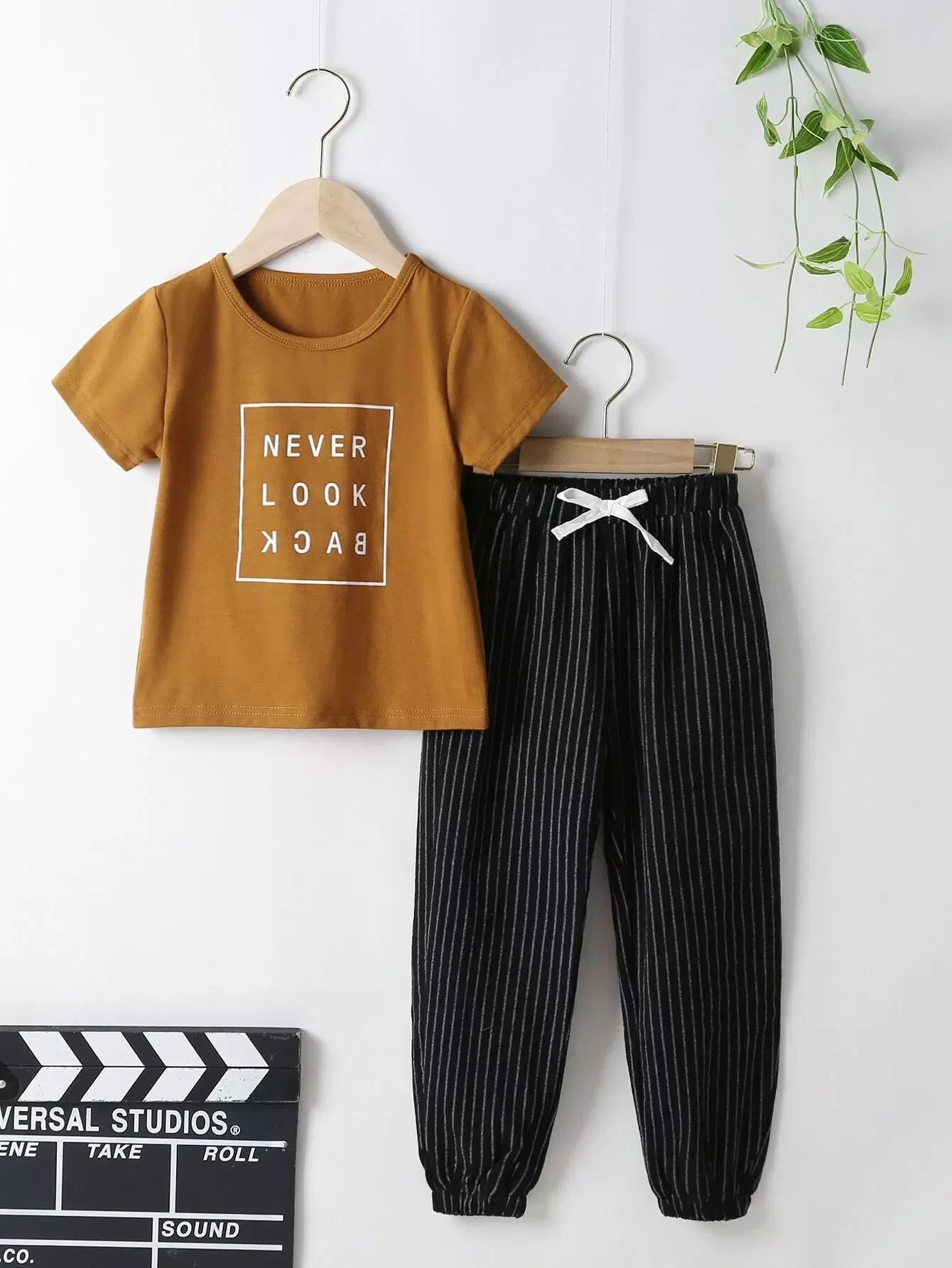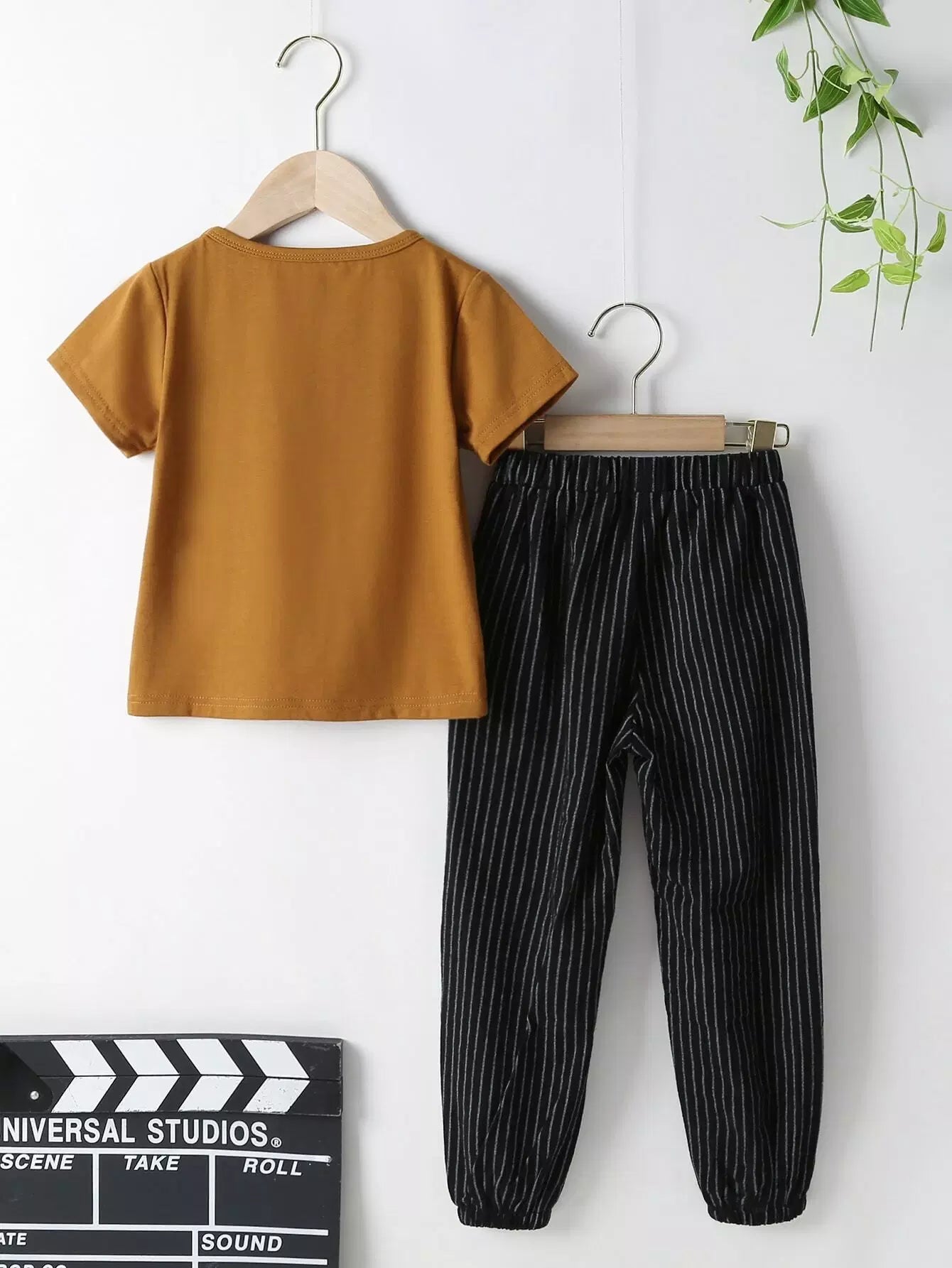 Toddler Boys Slogan Graphic Tee & Striped Pants