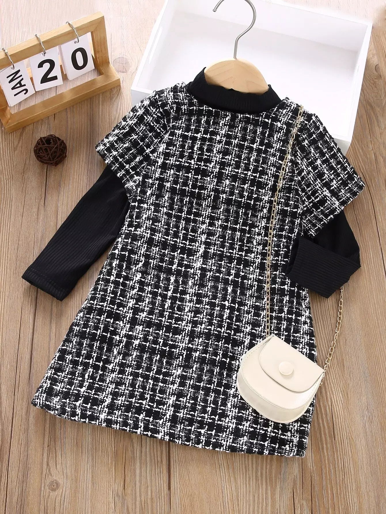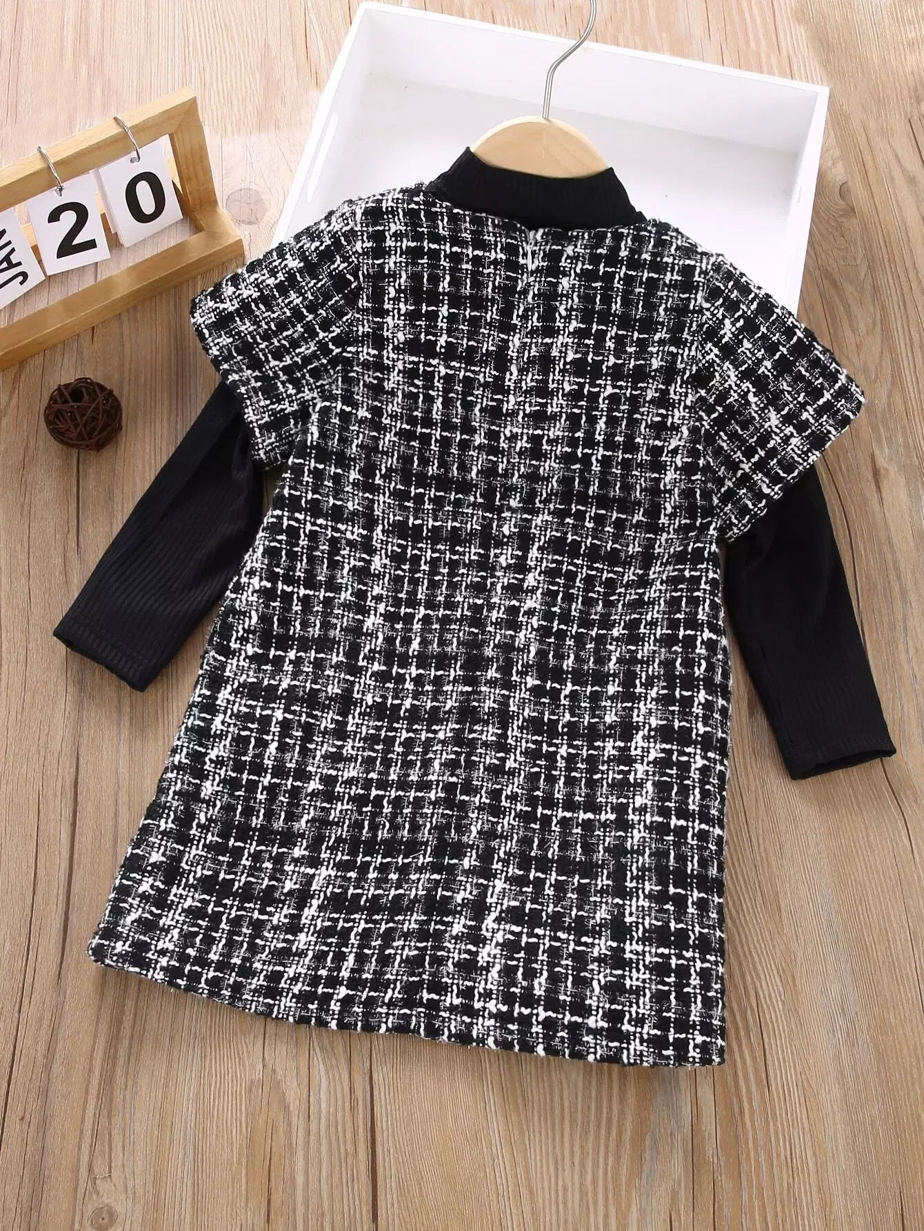 Toddler Girl Tweed Dress With Stand Collar Tee