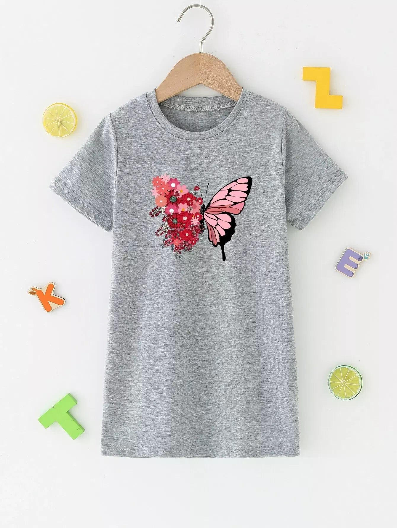 Toddler Girls 1pc Floral & Butterfly Print Tee Dress