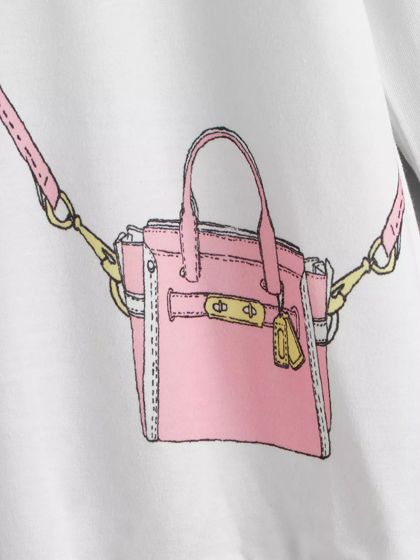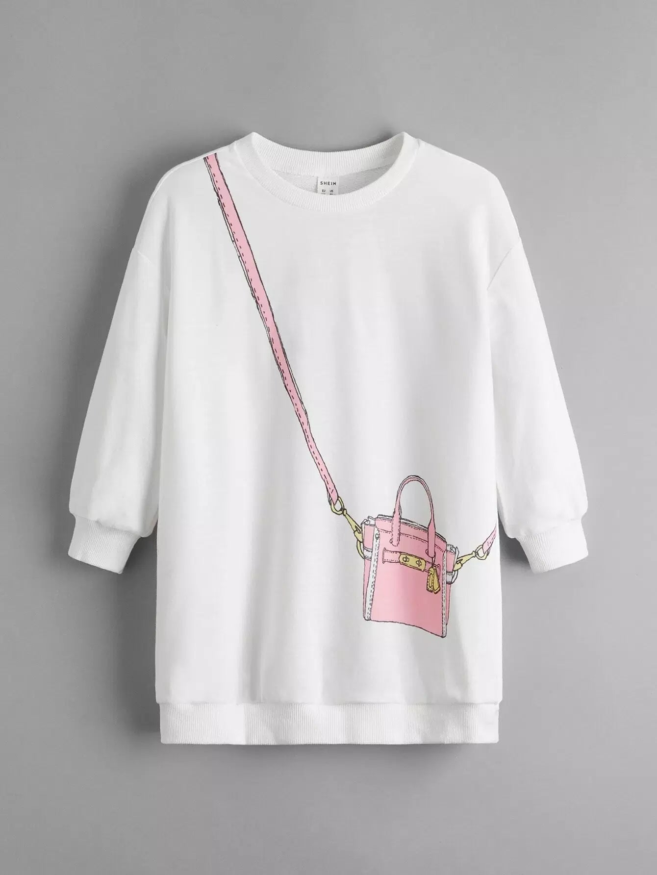 Toddler Girls Bag Print Drop Shoulder Pullover