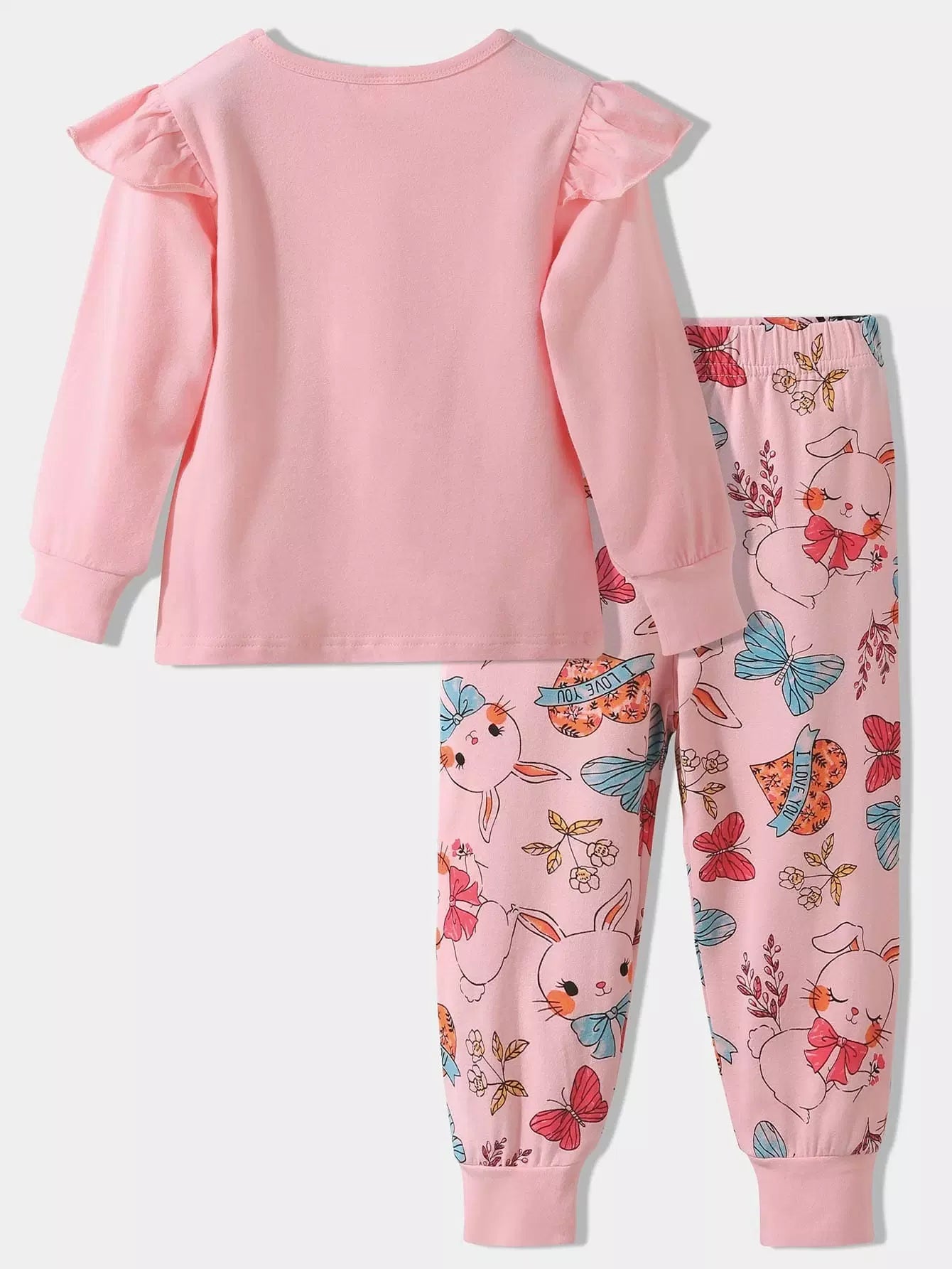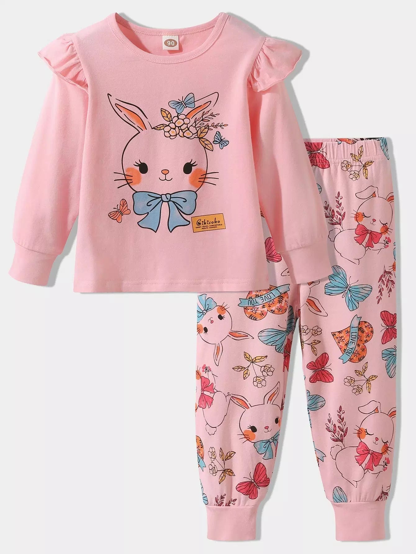 Toddler Girls Cartoon Graphic Ruffle Trim PJ Set