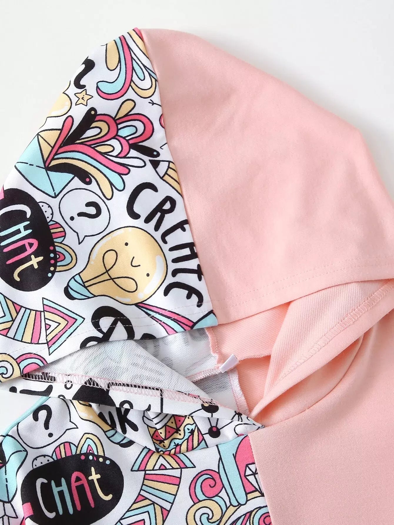 Toddler Girls Cartoon Graphic Spliced Hoodie With Joggers