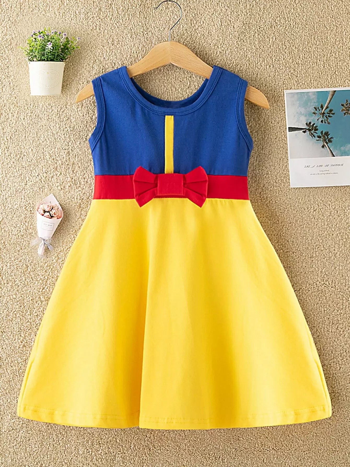 Toddler Girls Color-block Bow Front Flare Dress