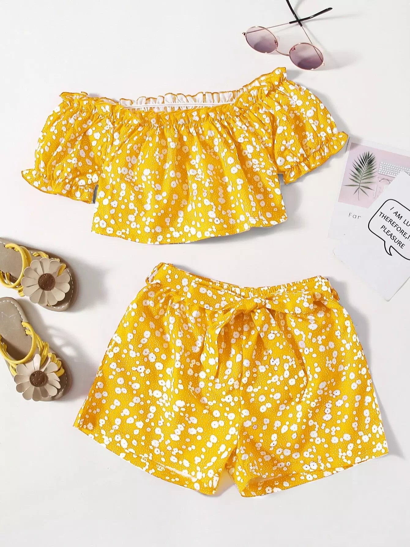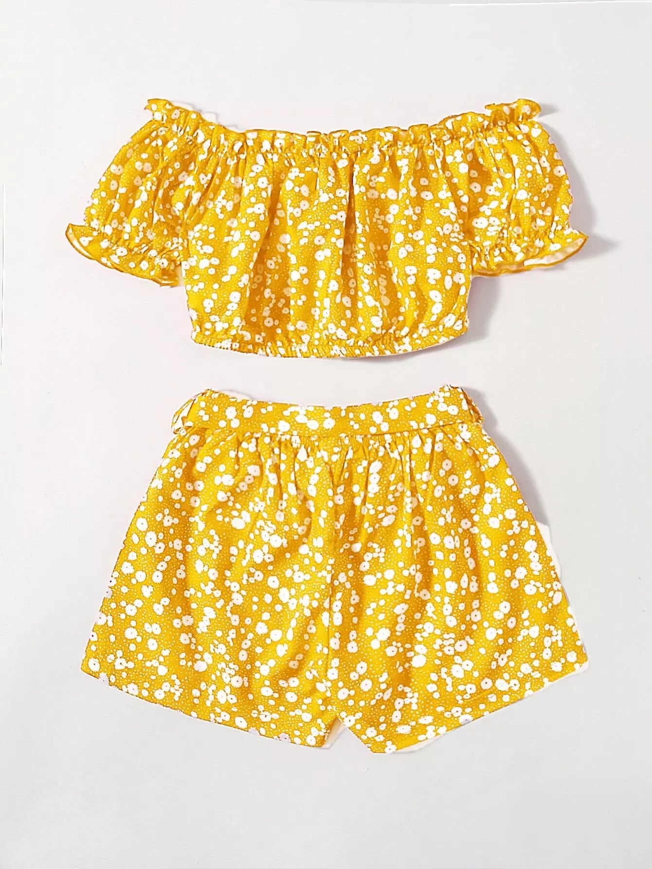Toddler Girls Ditsy Floral Bardot Top & Shorts Without Belt