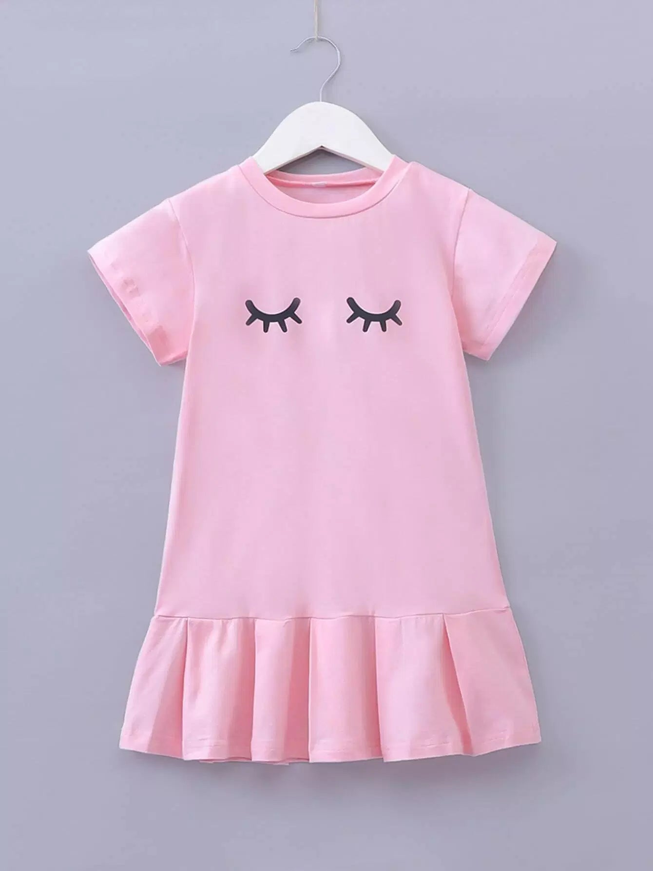 Toddler Girls Eyelash Print Ruffle Hem Babydoll Dress
