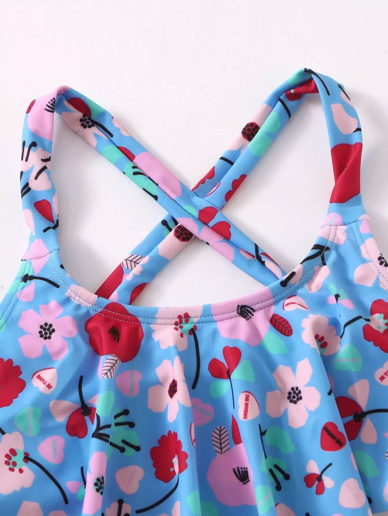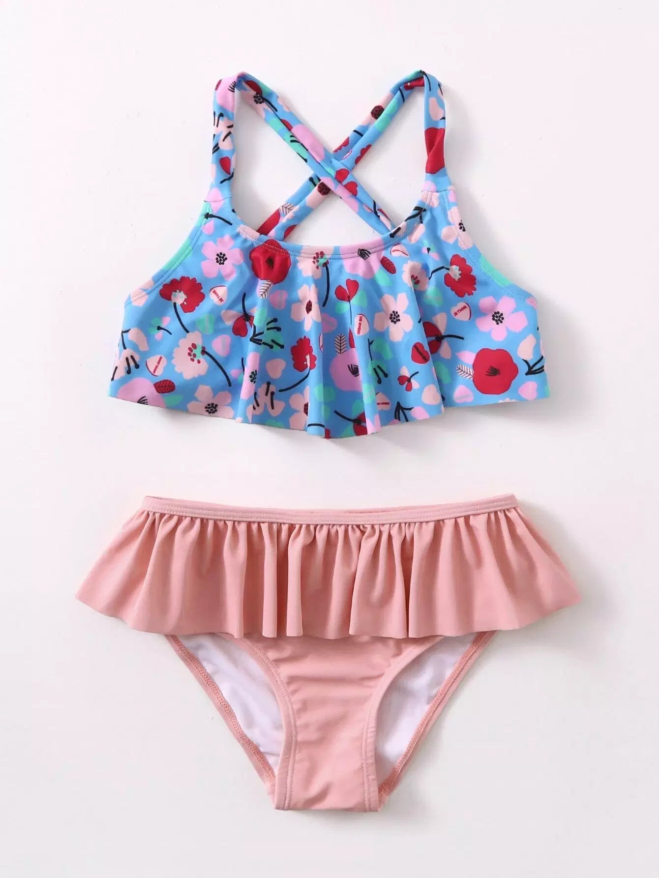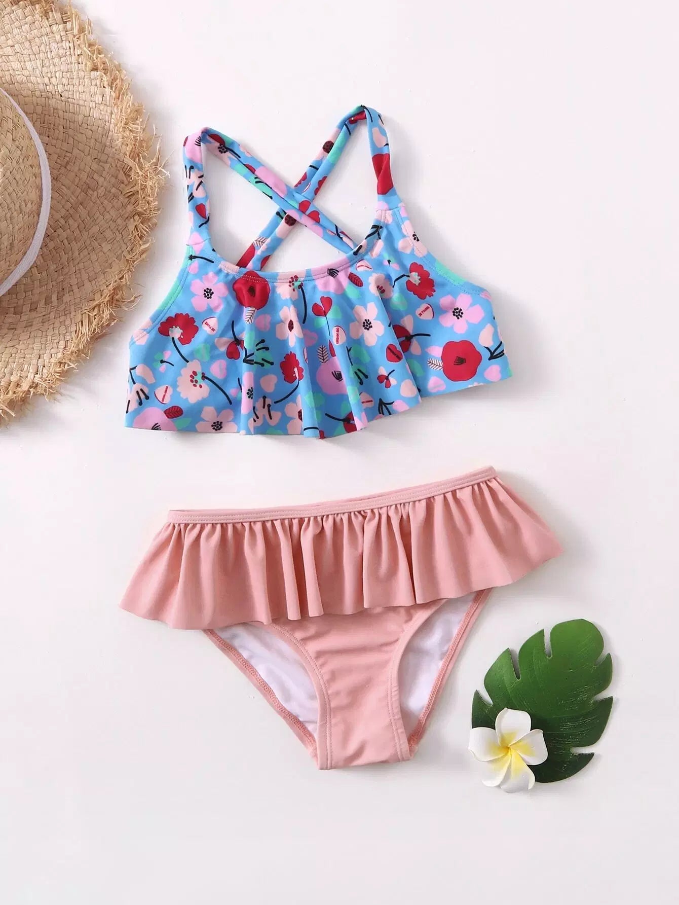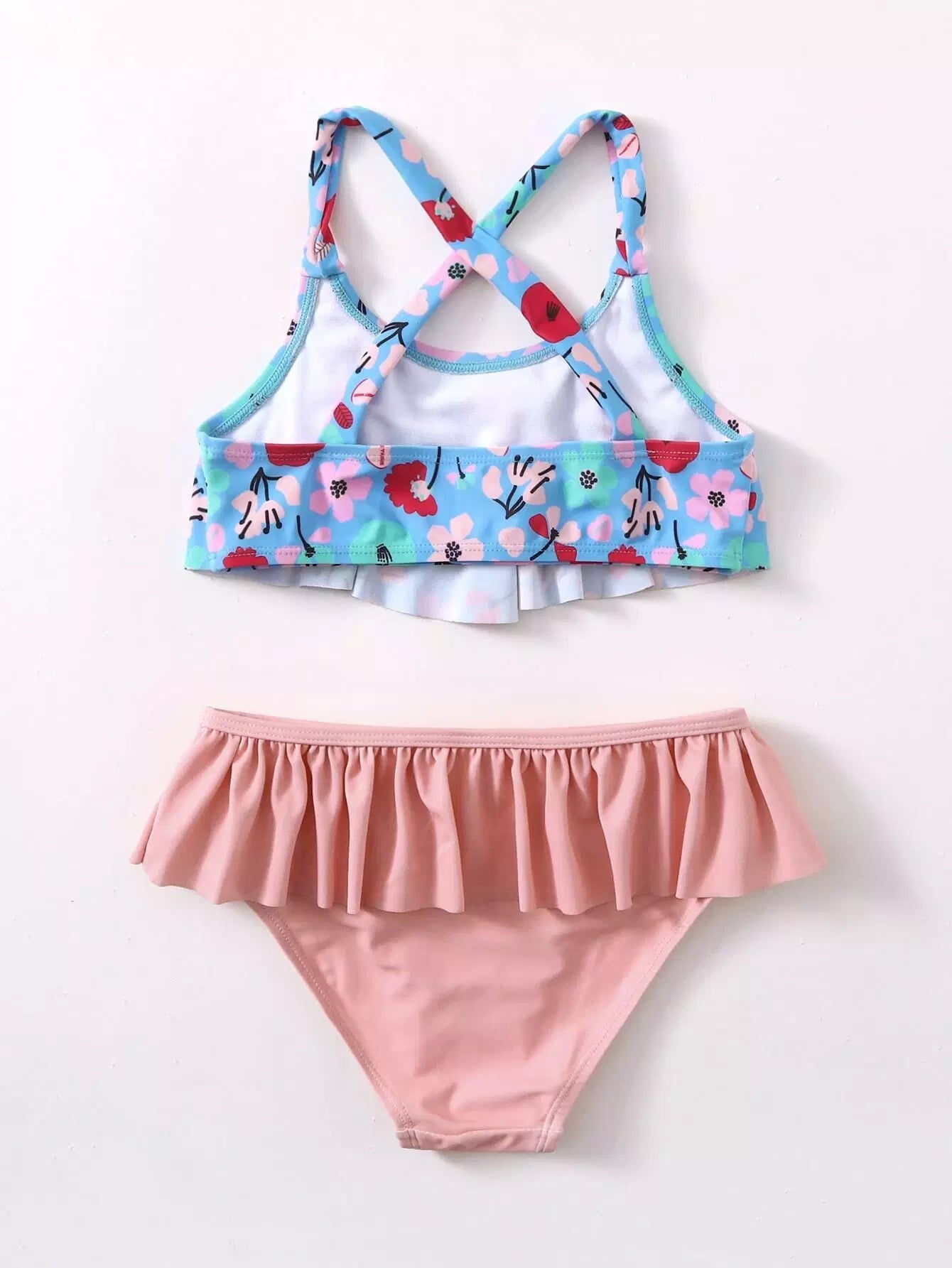 Toddler Girls Floral Print Ruffle Bikini Swimsuit