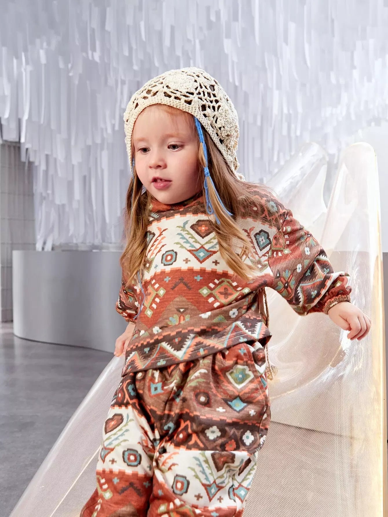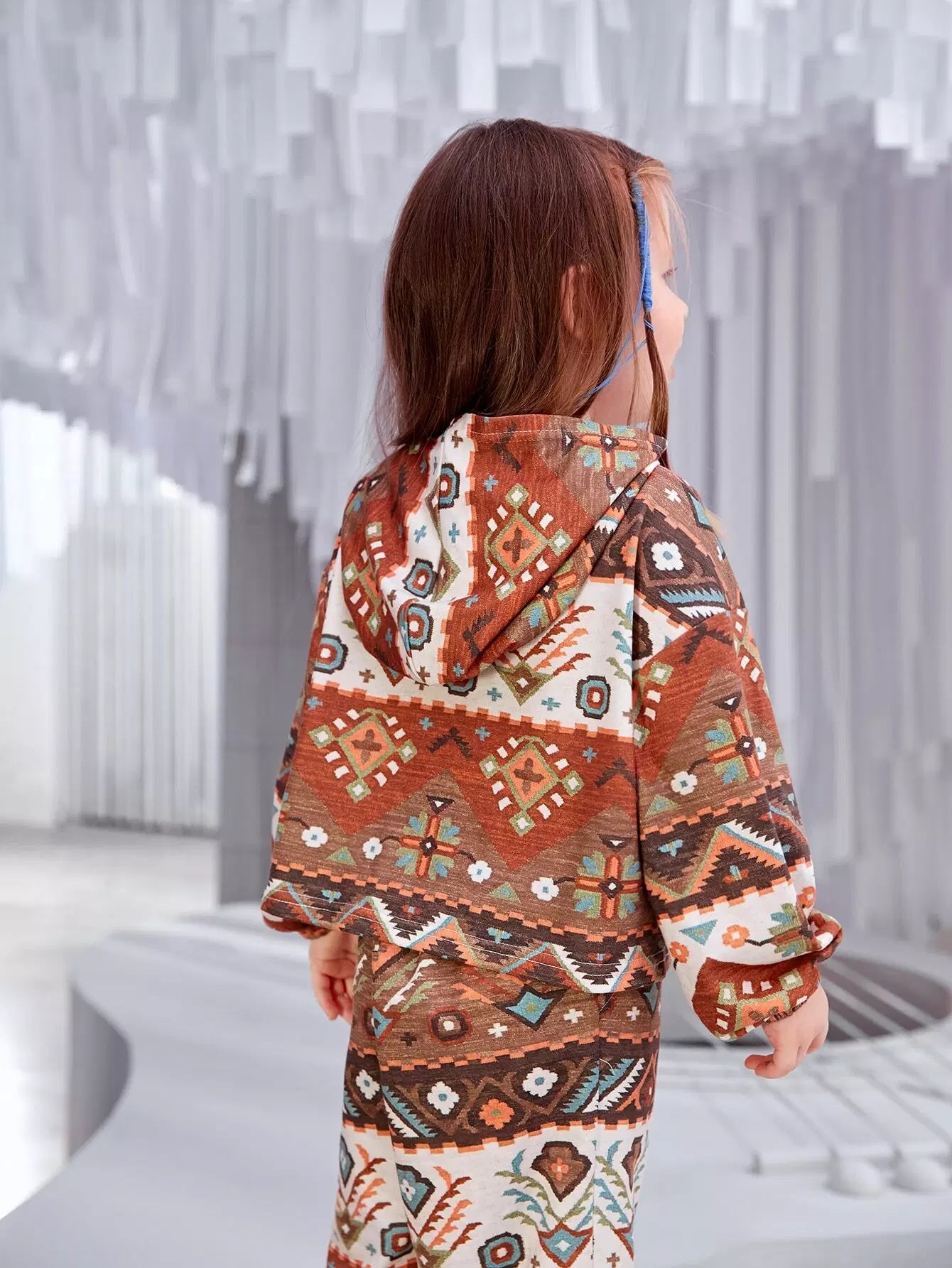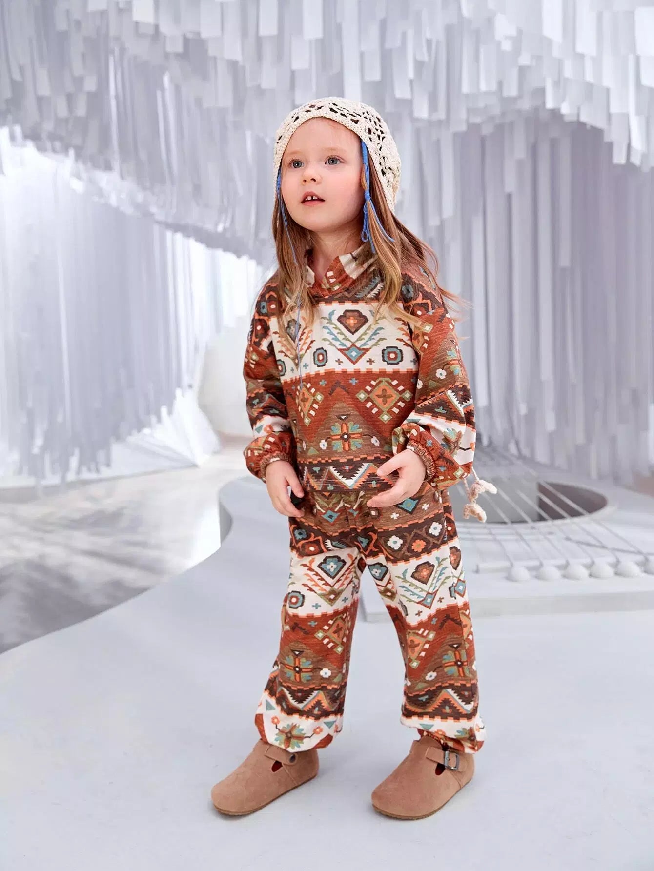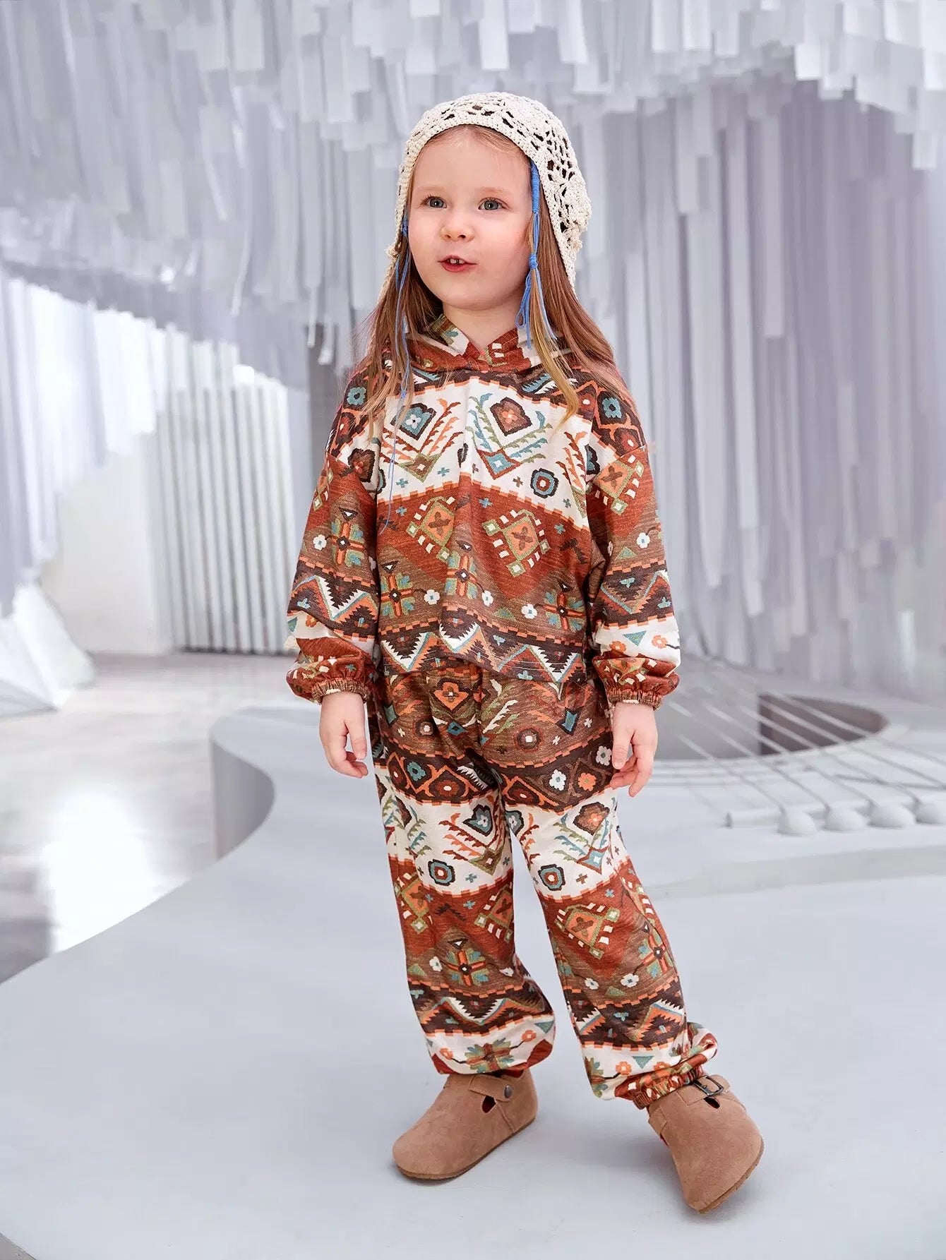 Toddler Girls Geo Print Drop Shoulder Hoodie