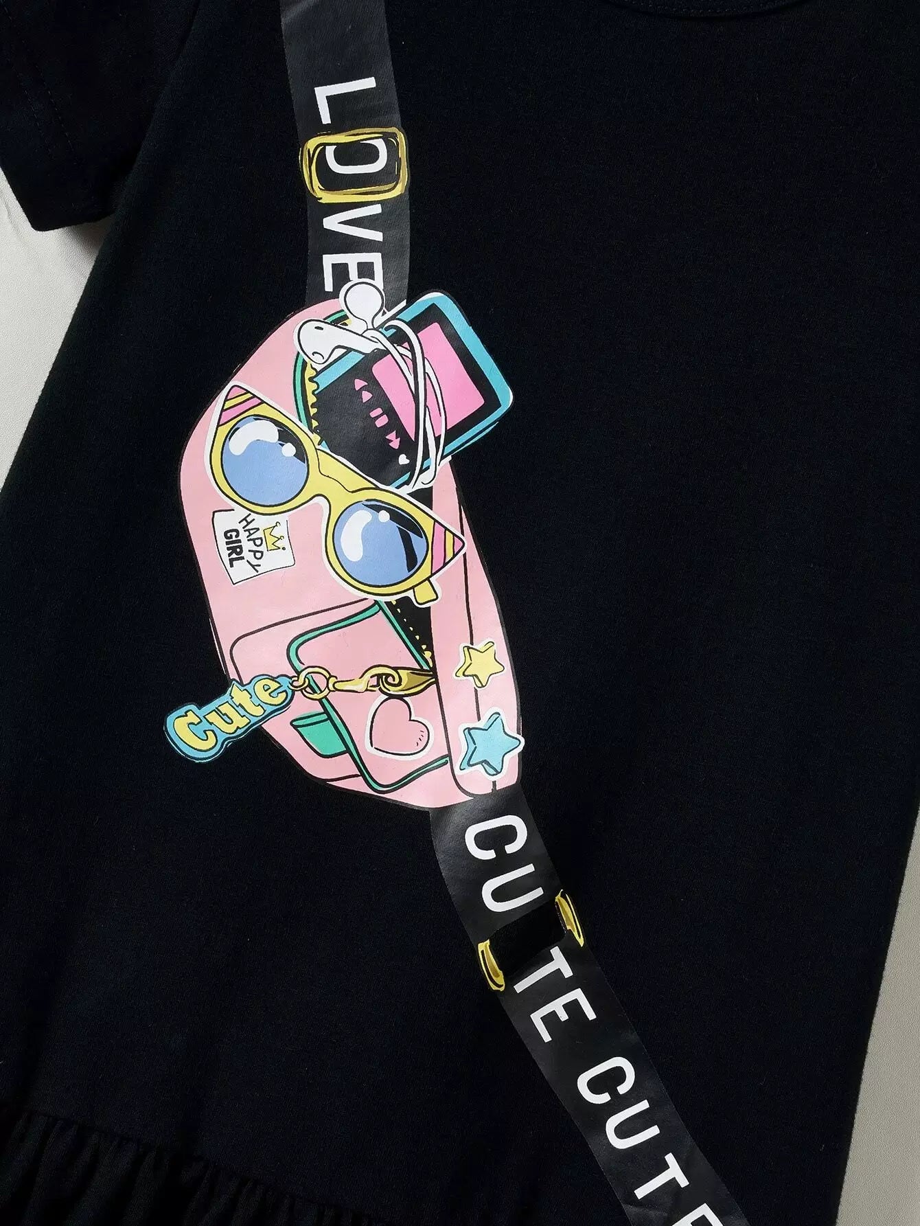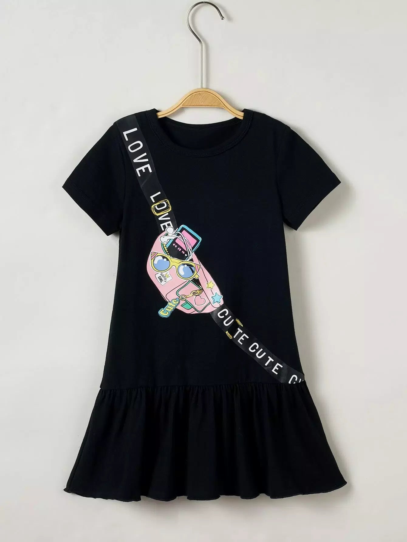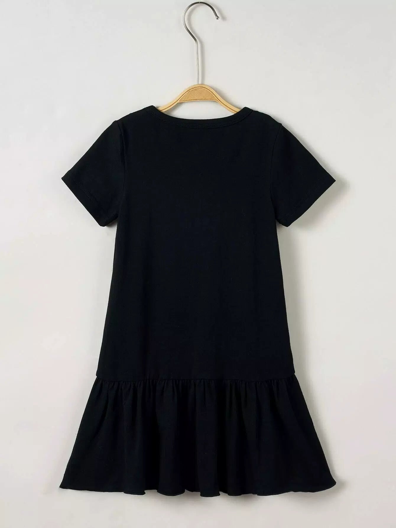 Toddler Girls Letter & Cartoon Graphic Ruffle Hem Dress