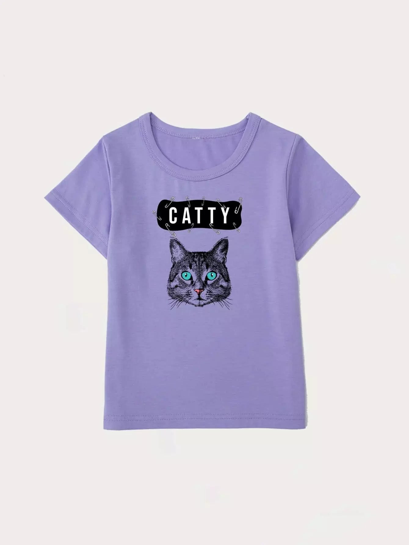 Toddler Girls Letter & Cat Print Tee