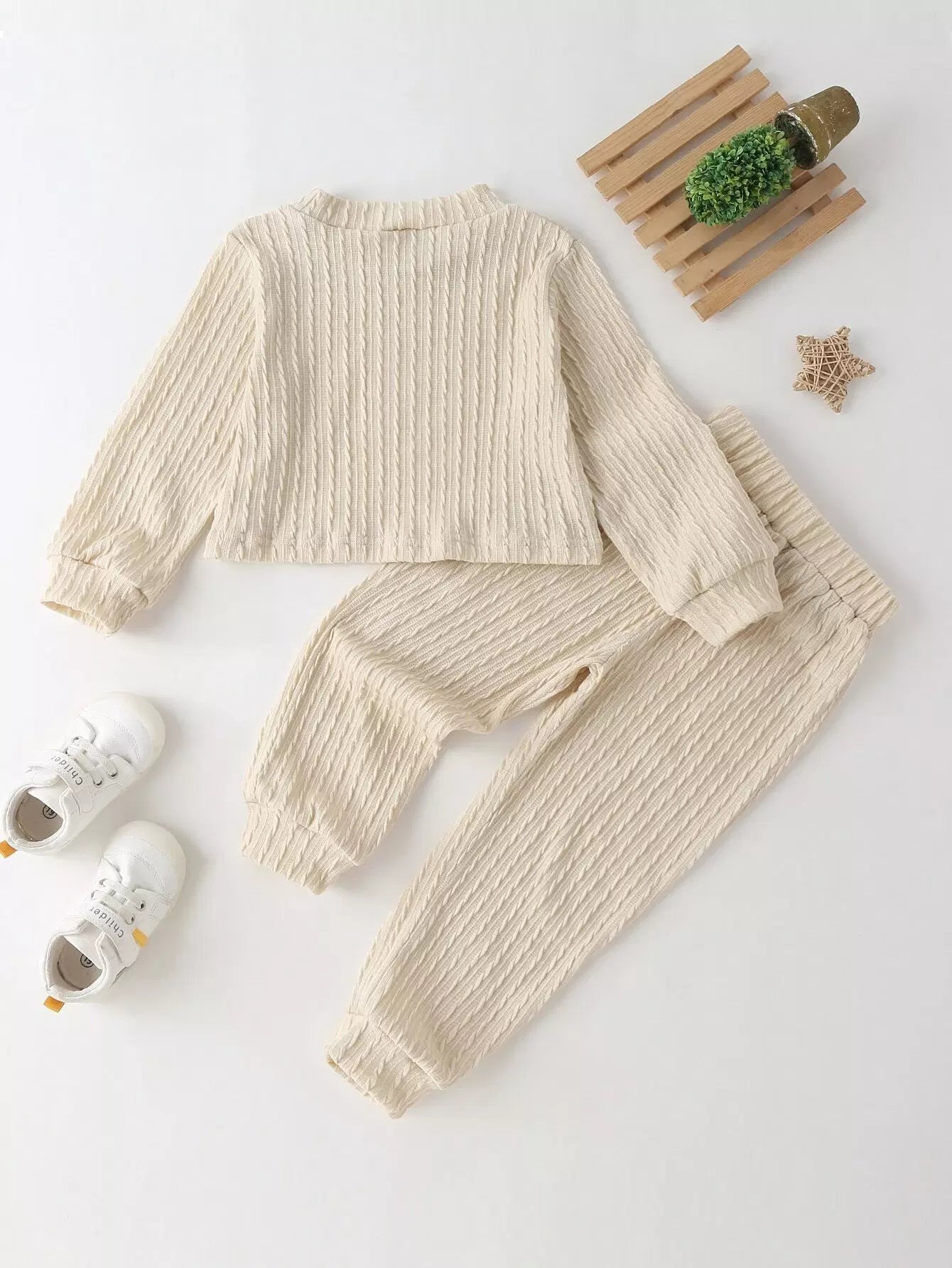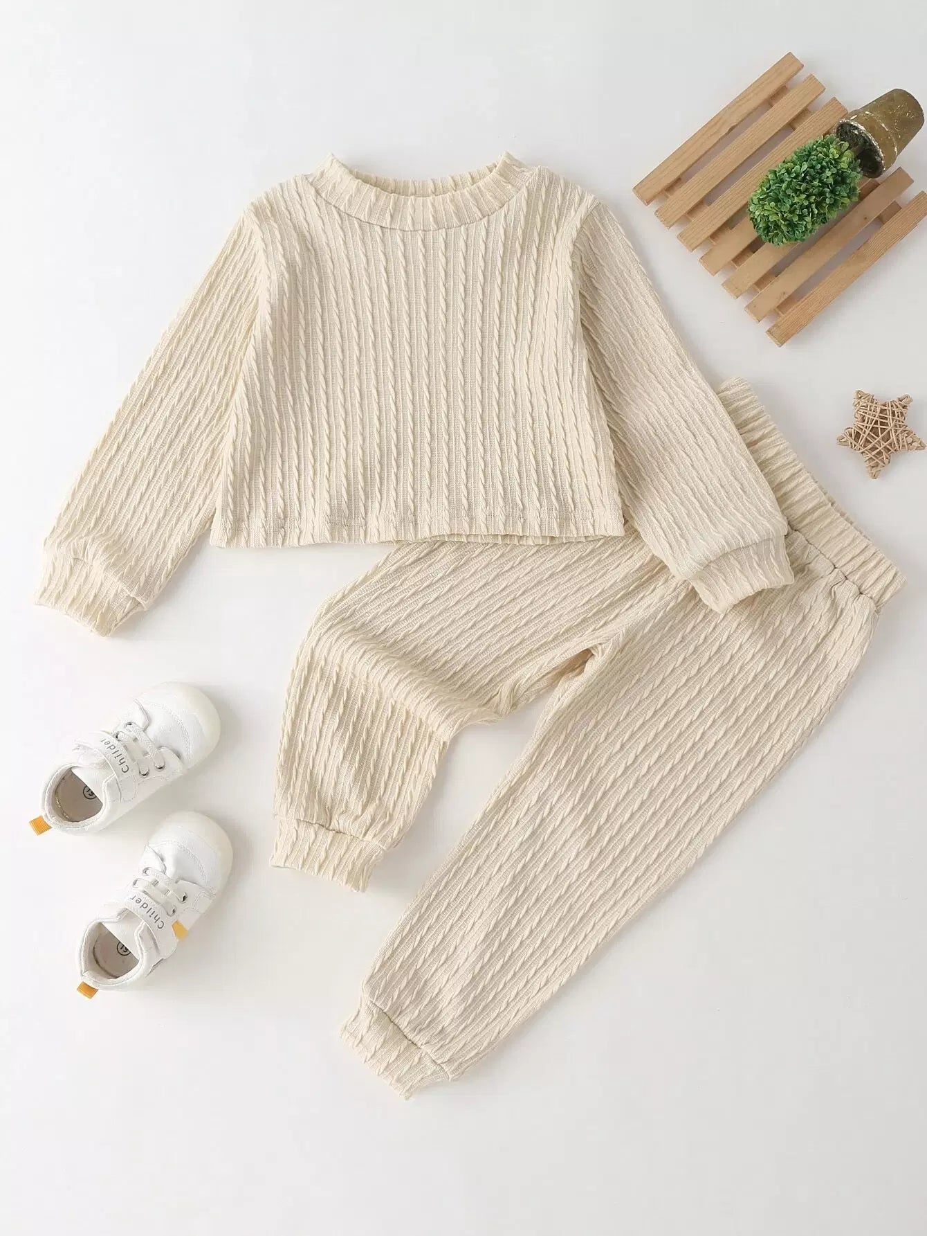 Toddler Girls Mock Neck Textured Pullover & Sweatpants