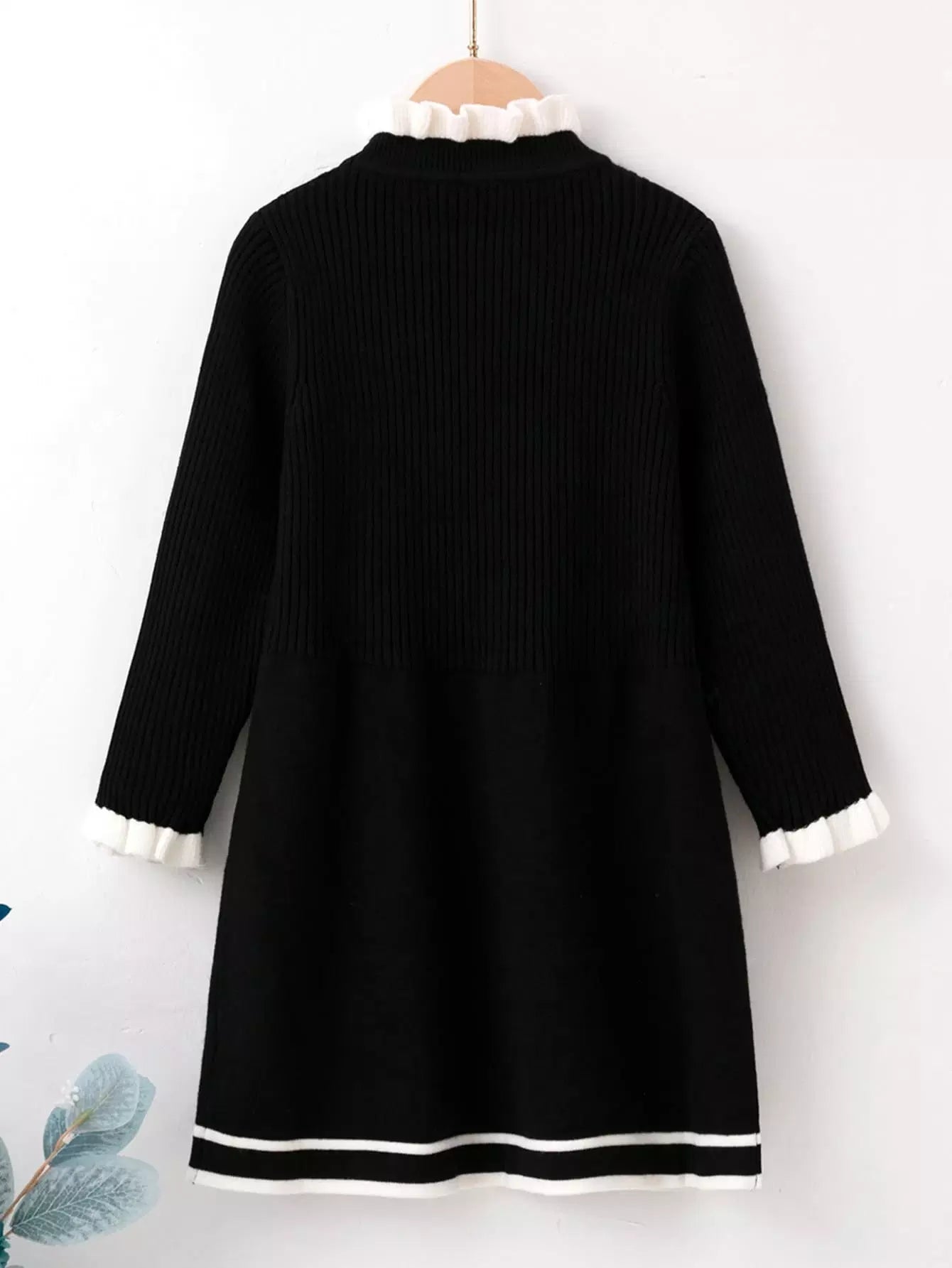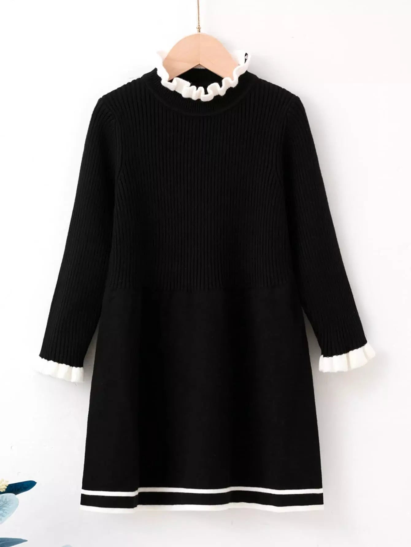 Toddler Girls Ruffle Neck Flounce Sleeve Sweater Dress