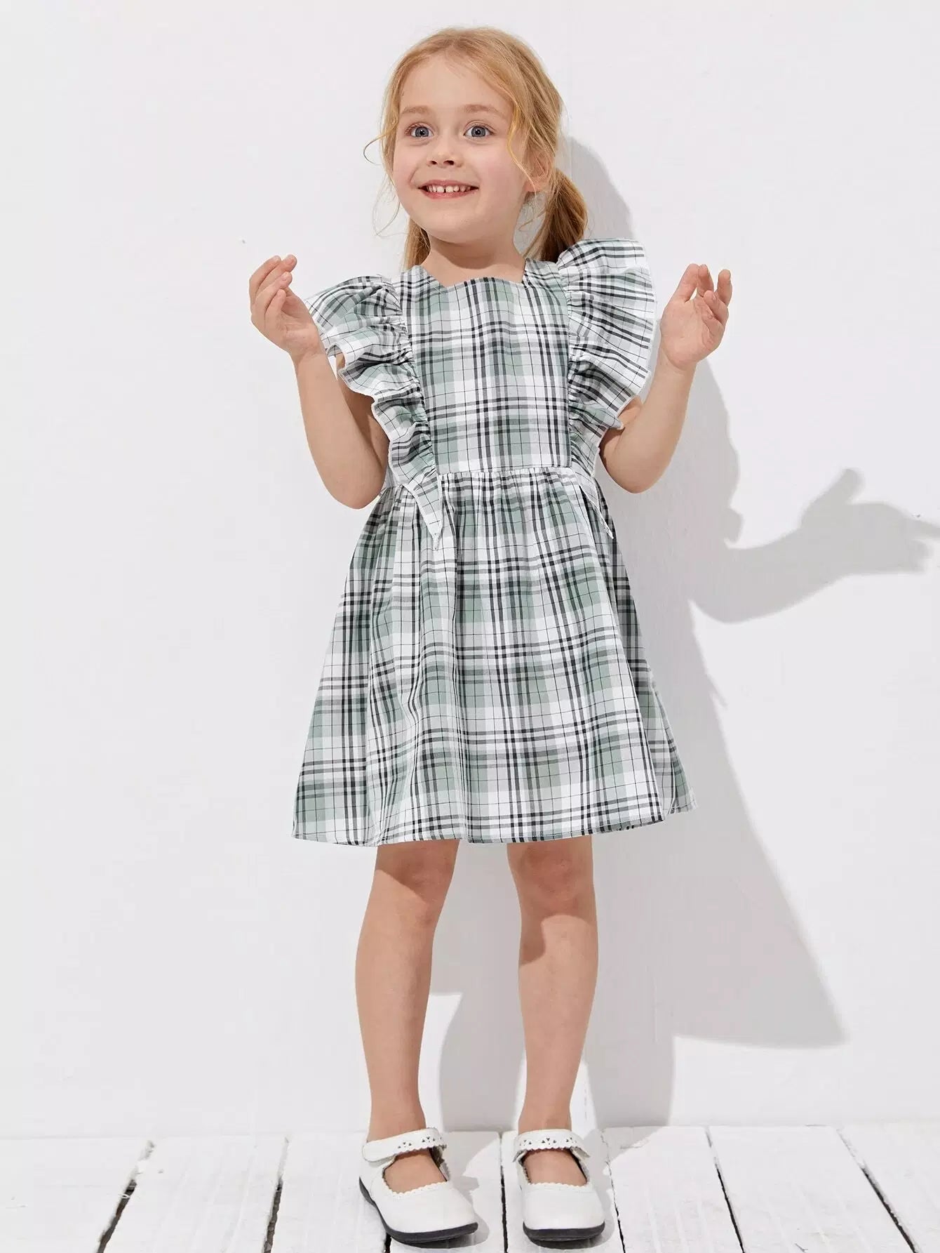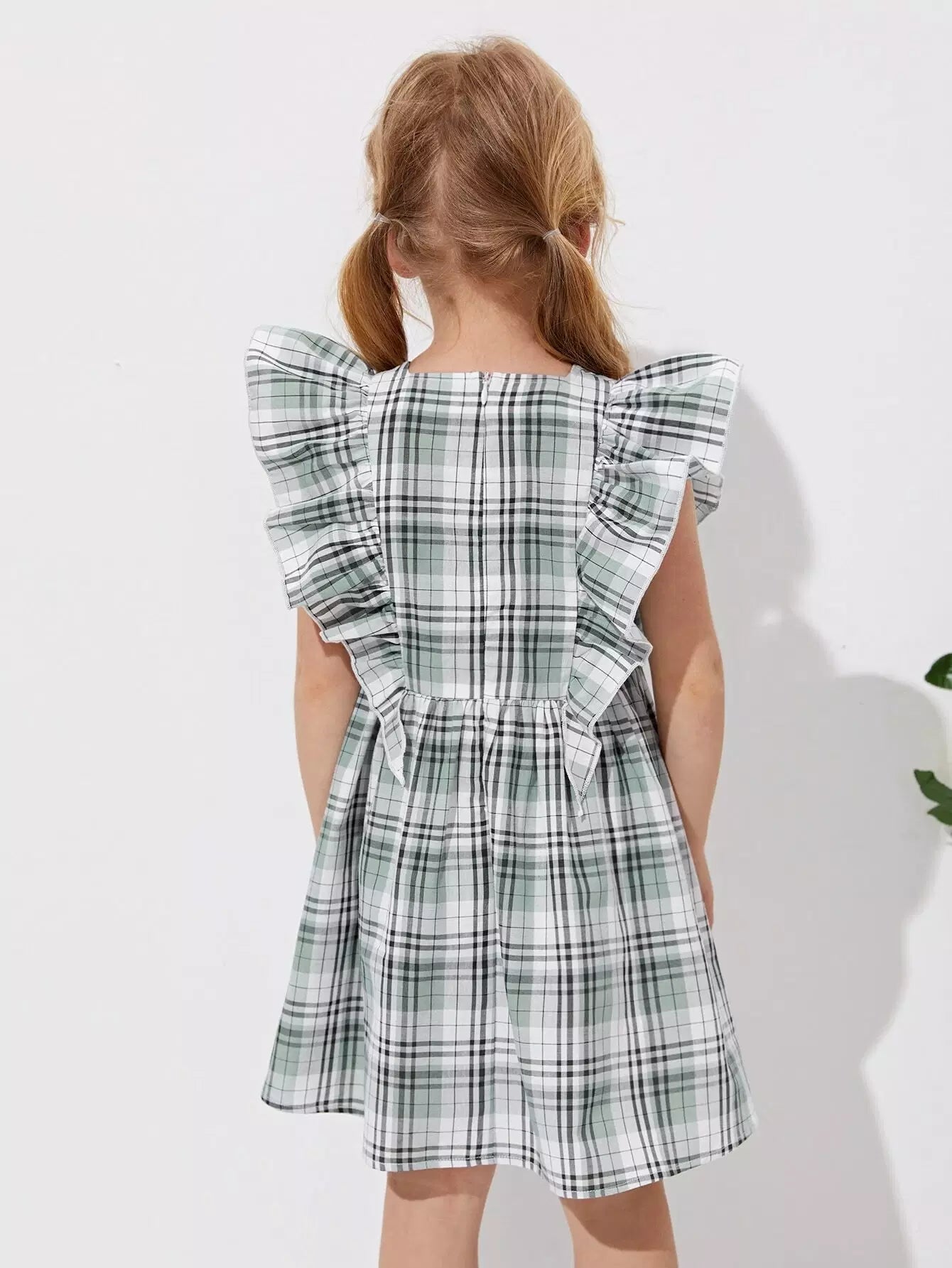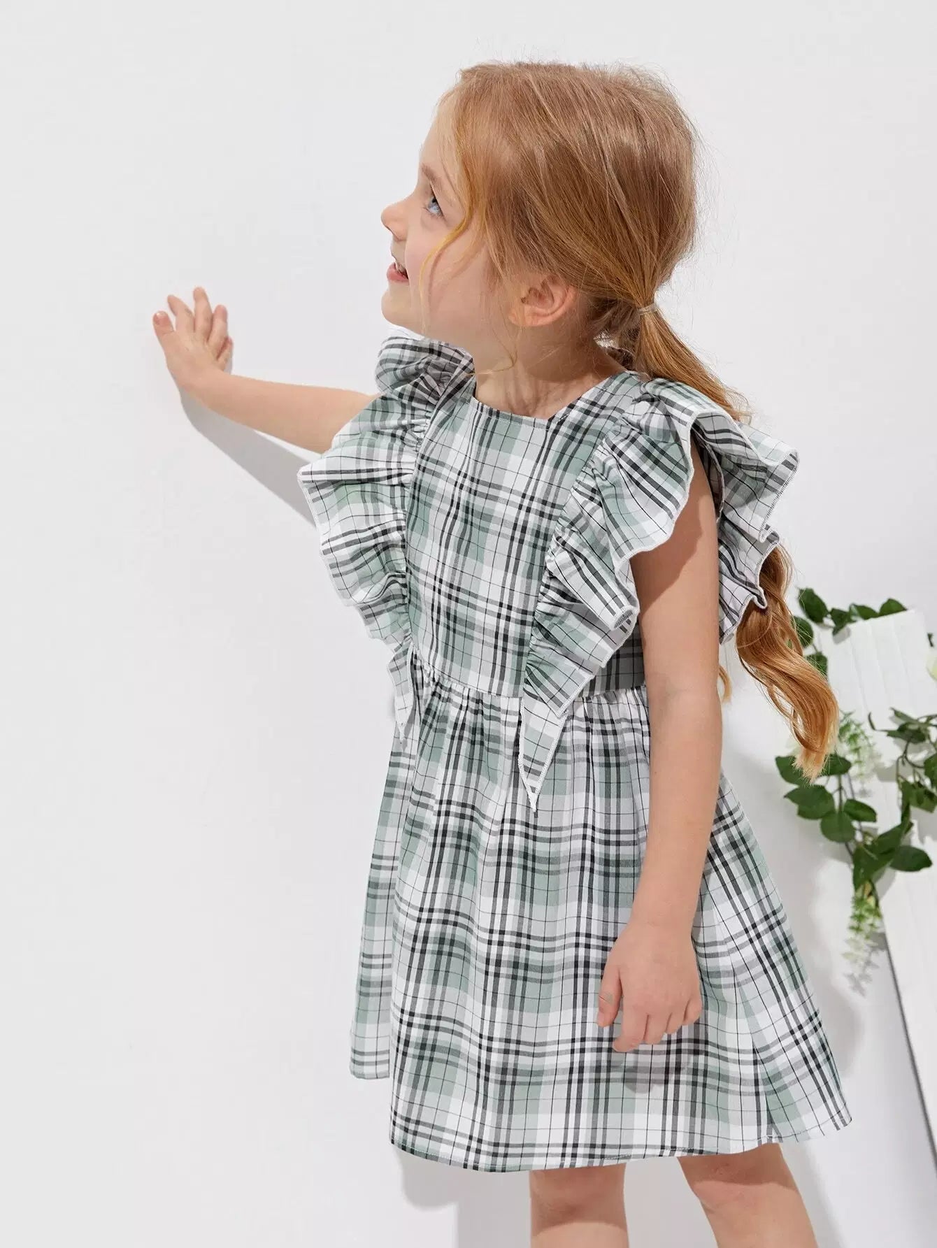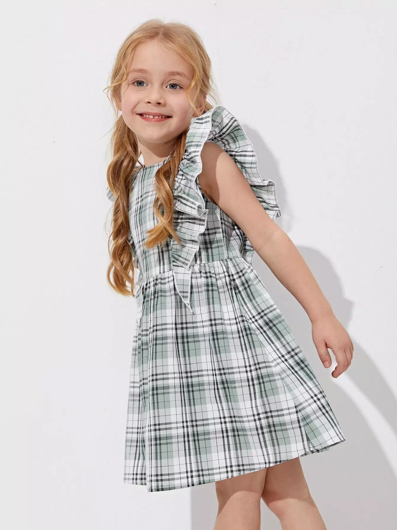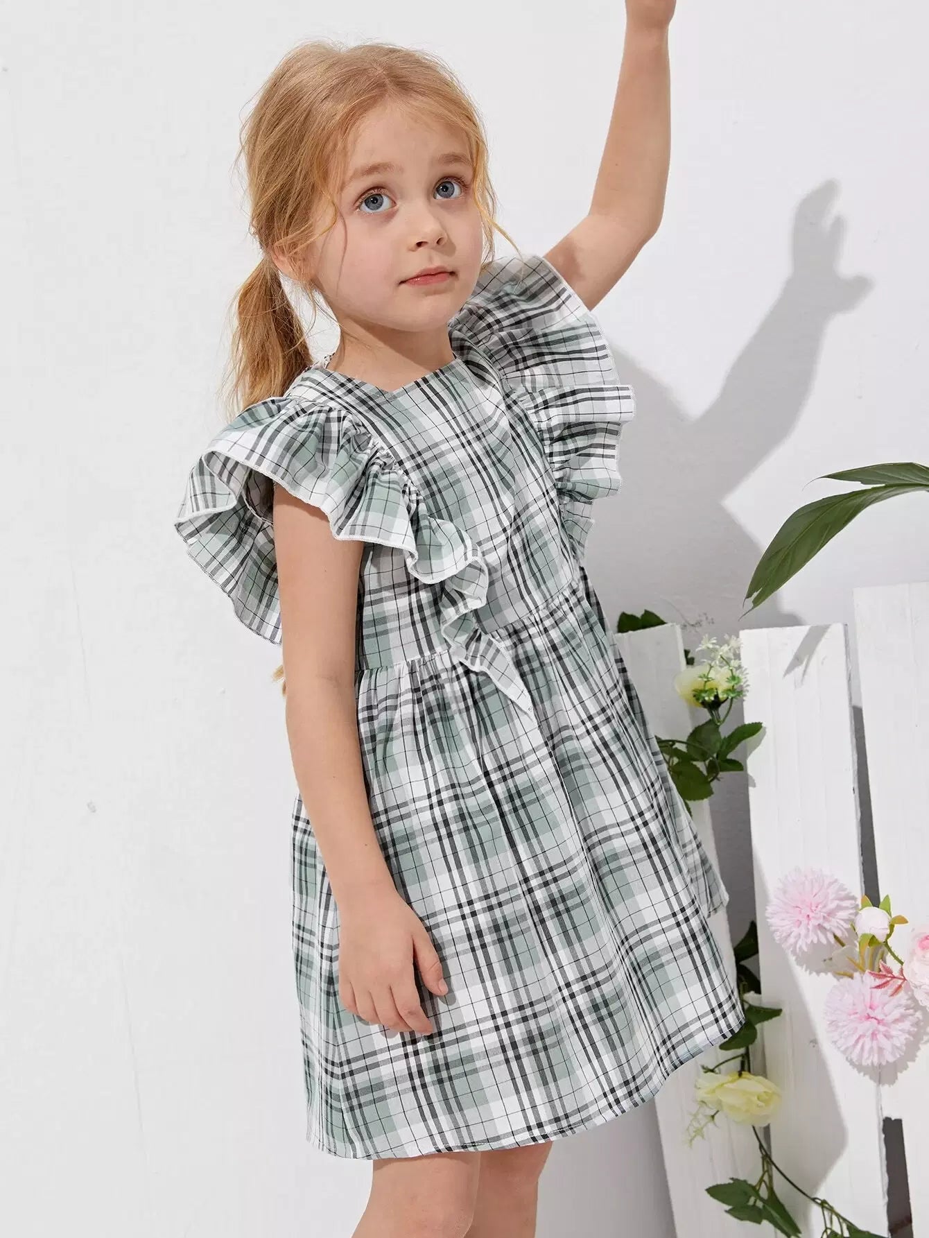 Toddler Girls Ruffle Trim Plaid Print Dress