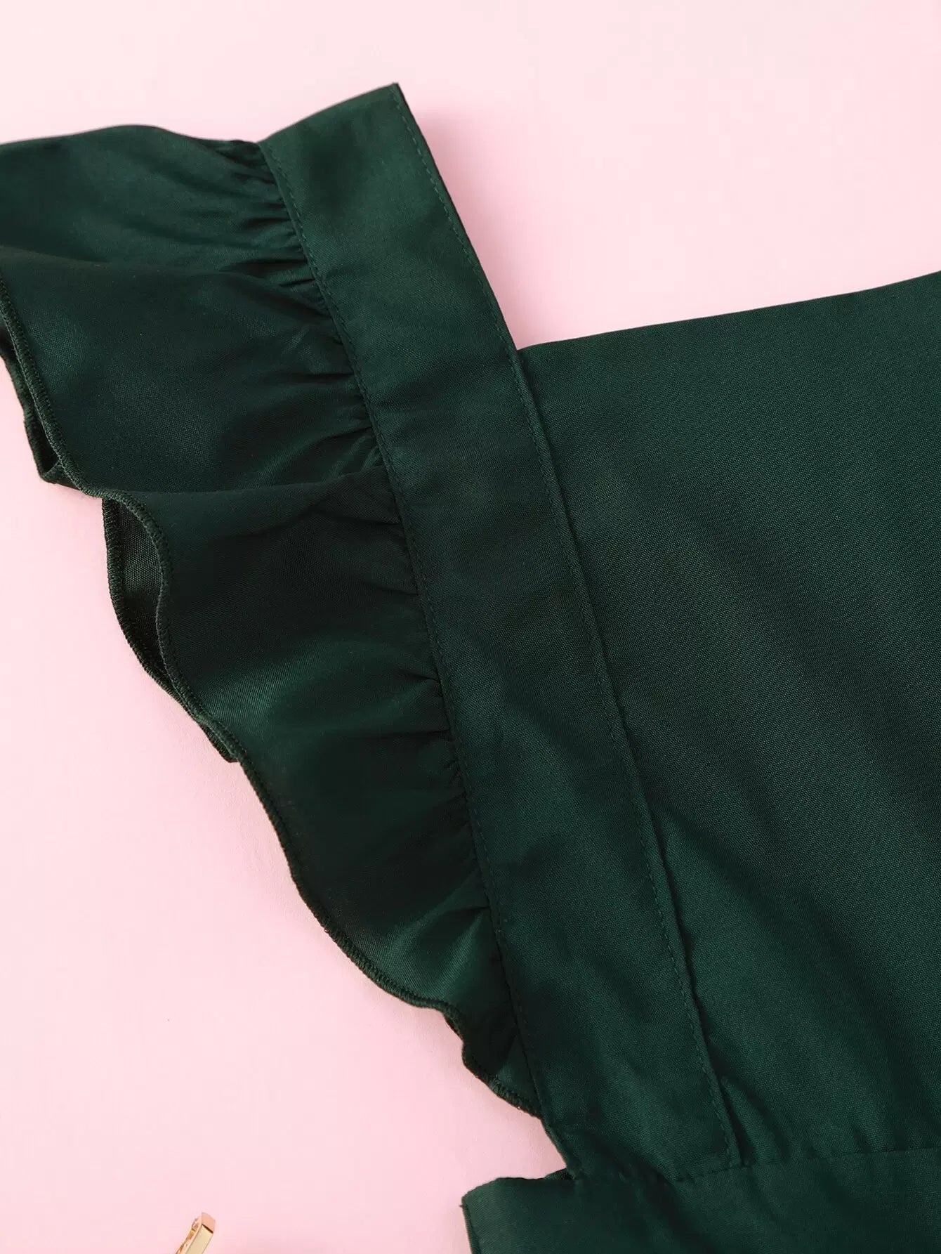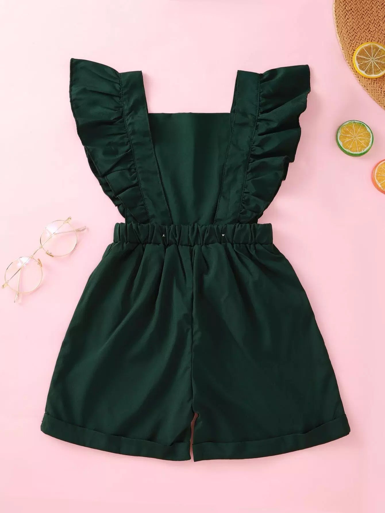 Toddler Girls Ruffle Trim Rolled Hem Overall Romper