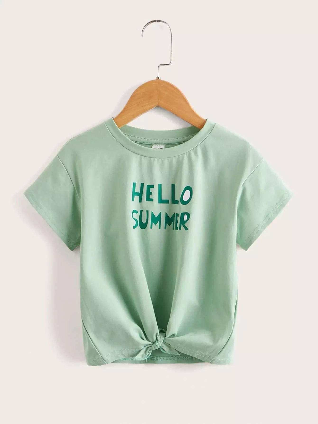 Toddler Girls Slogan Graphic Knot Hem Tee
