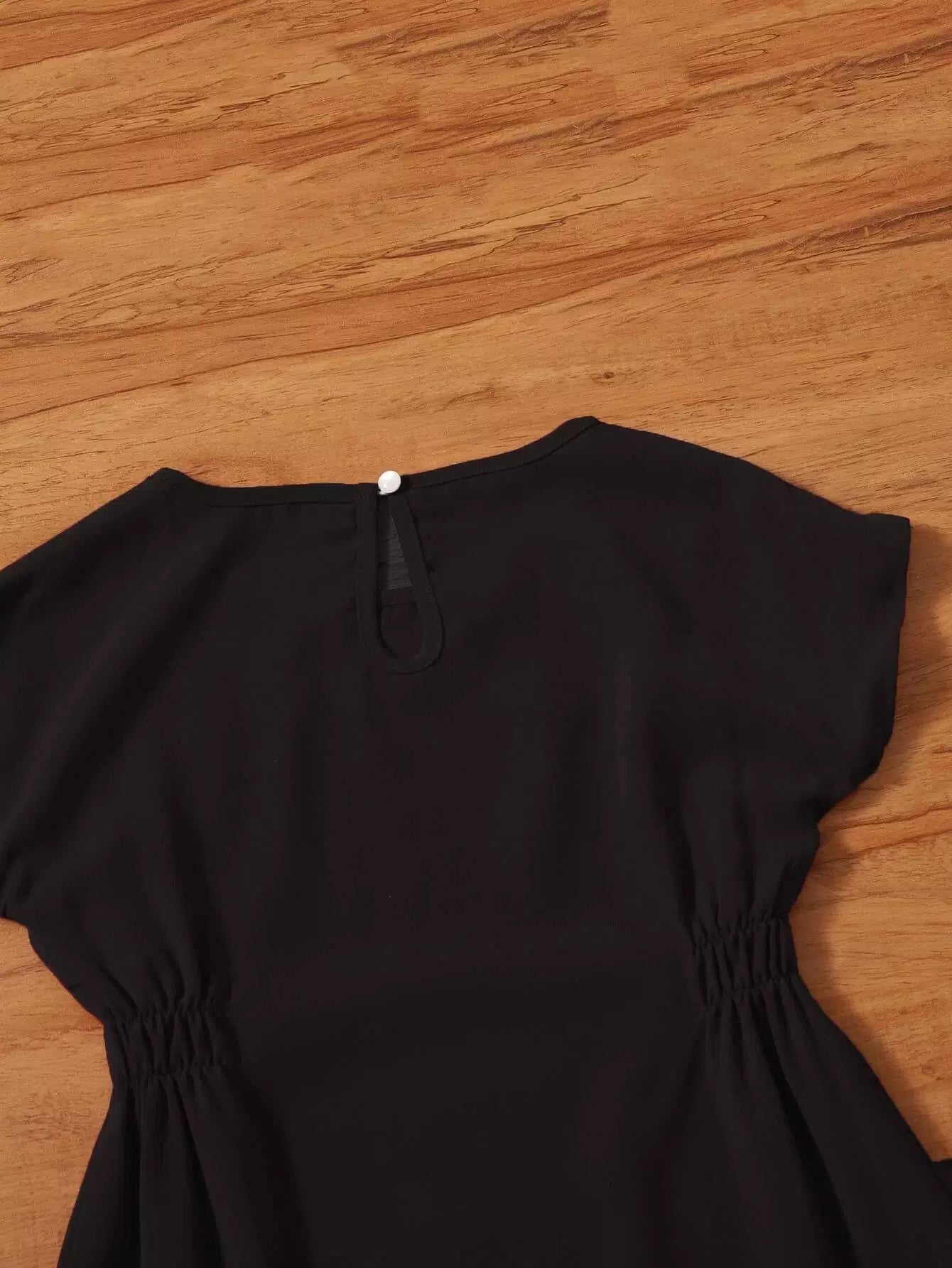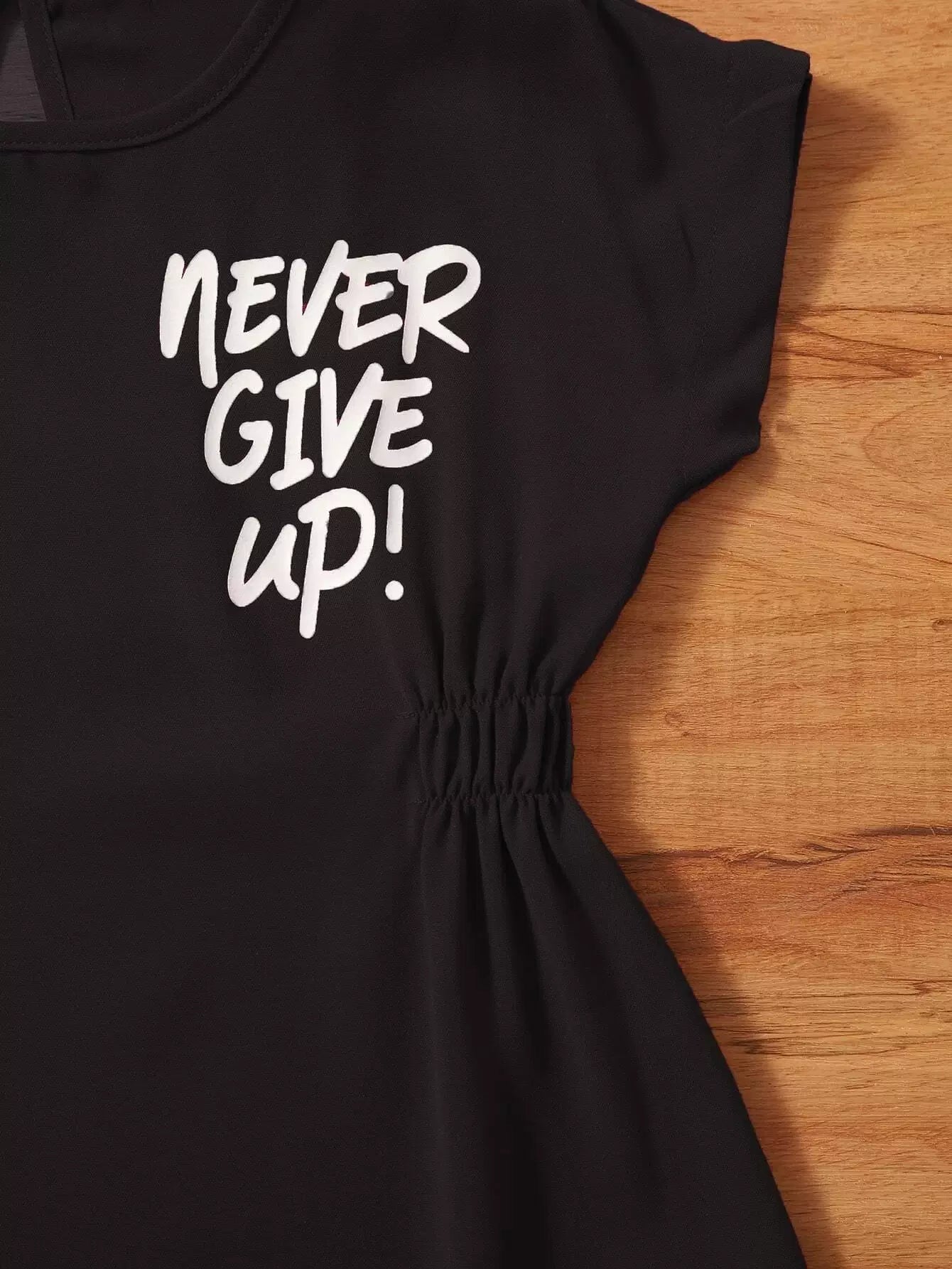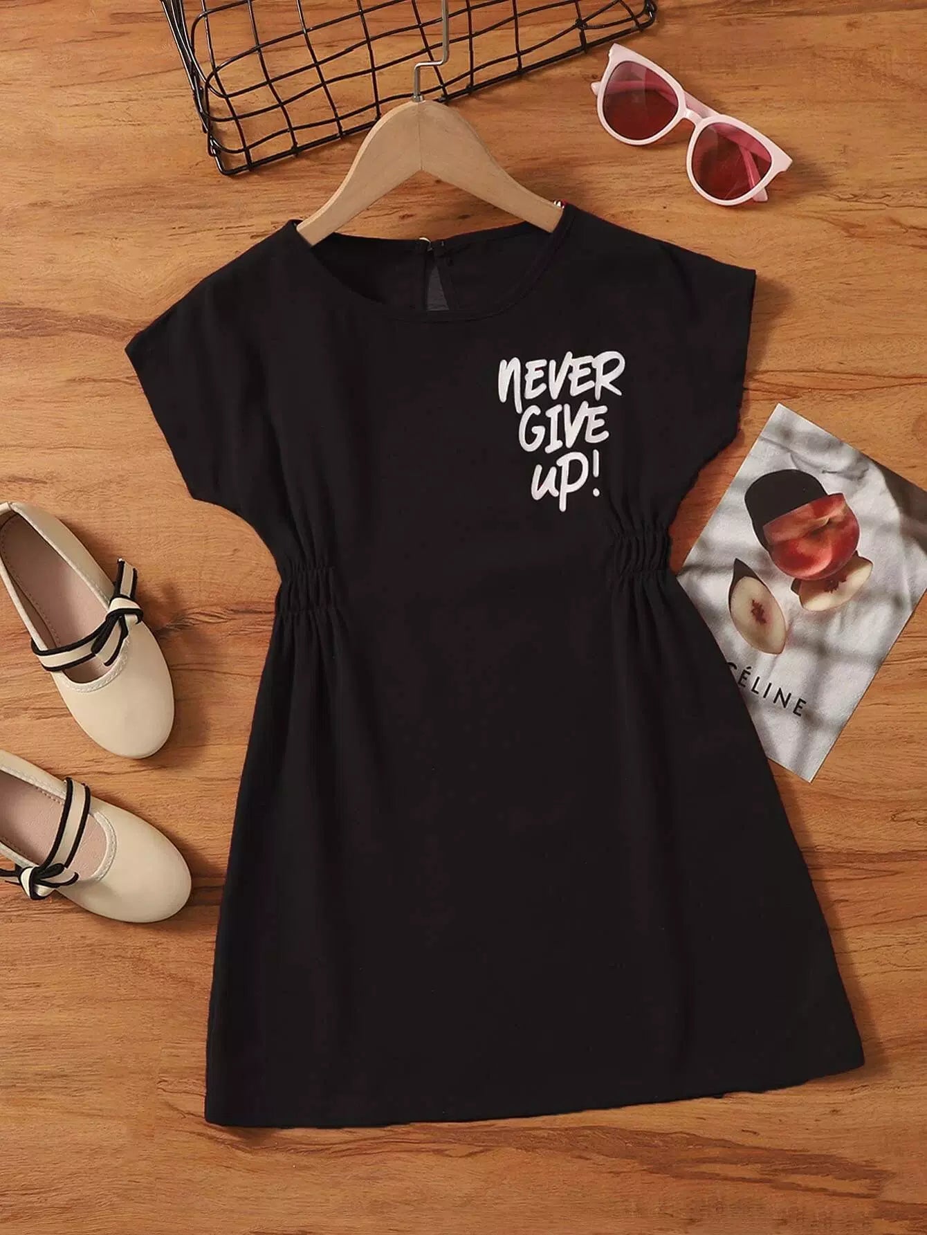 Toddler Girls Slogan Graphic Shirred Batwing Sleeve Dress