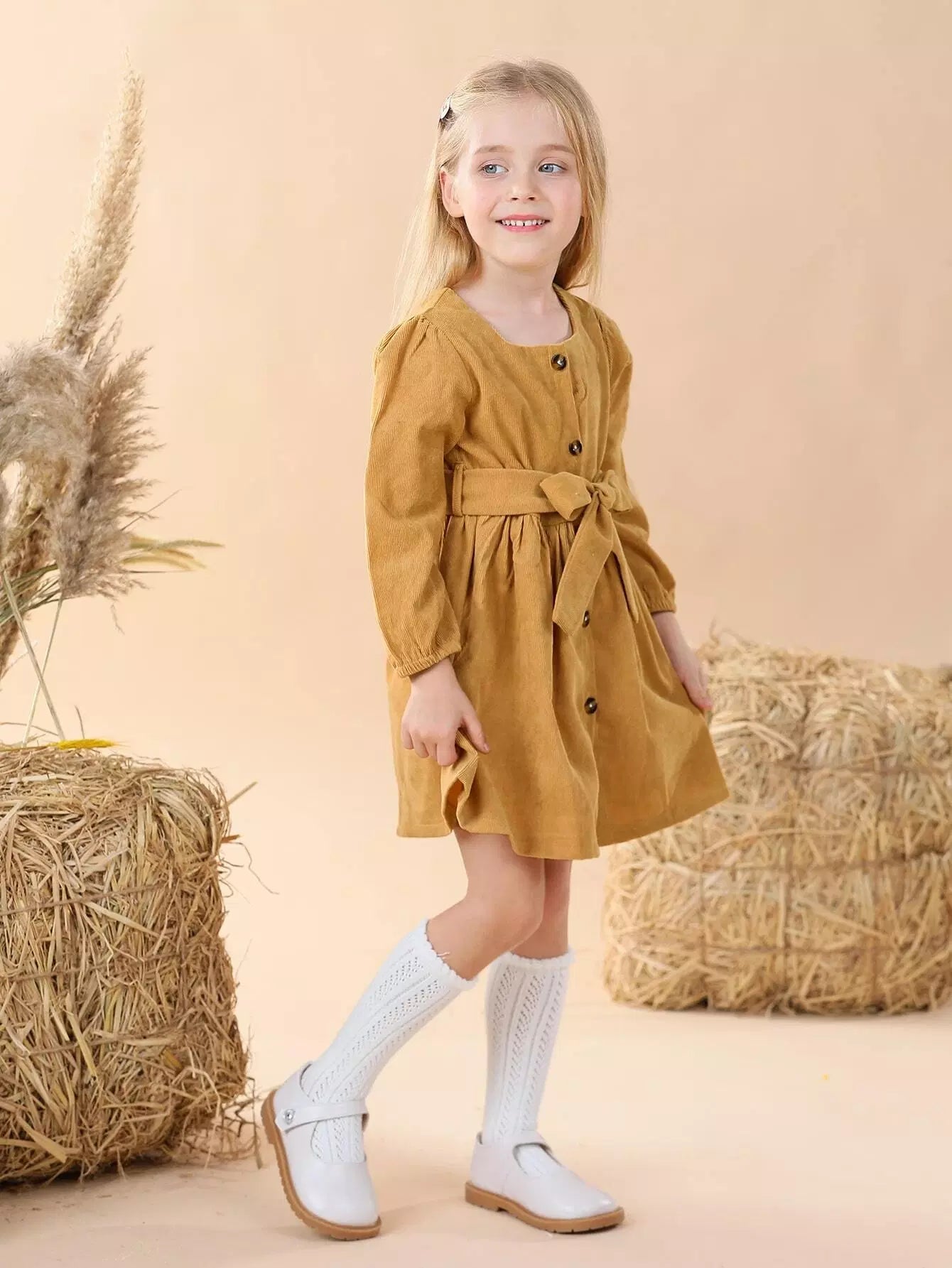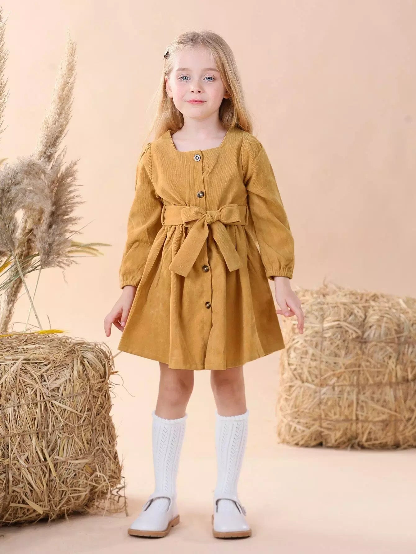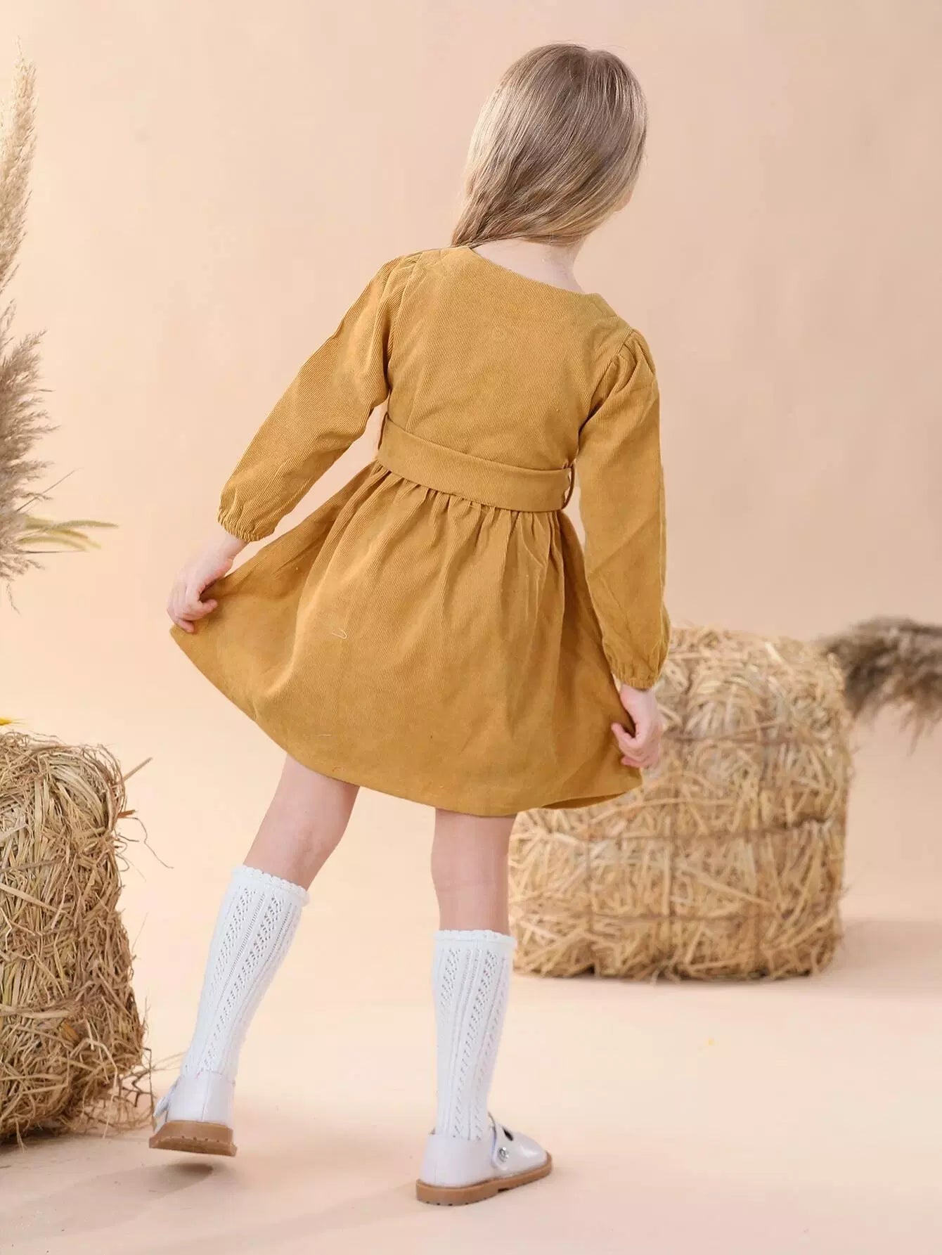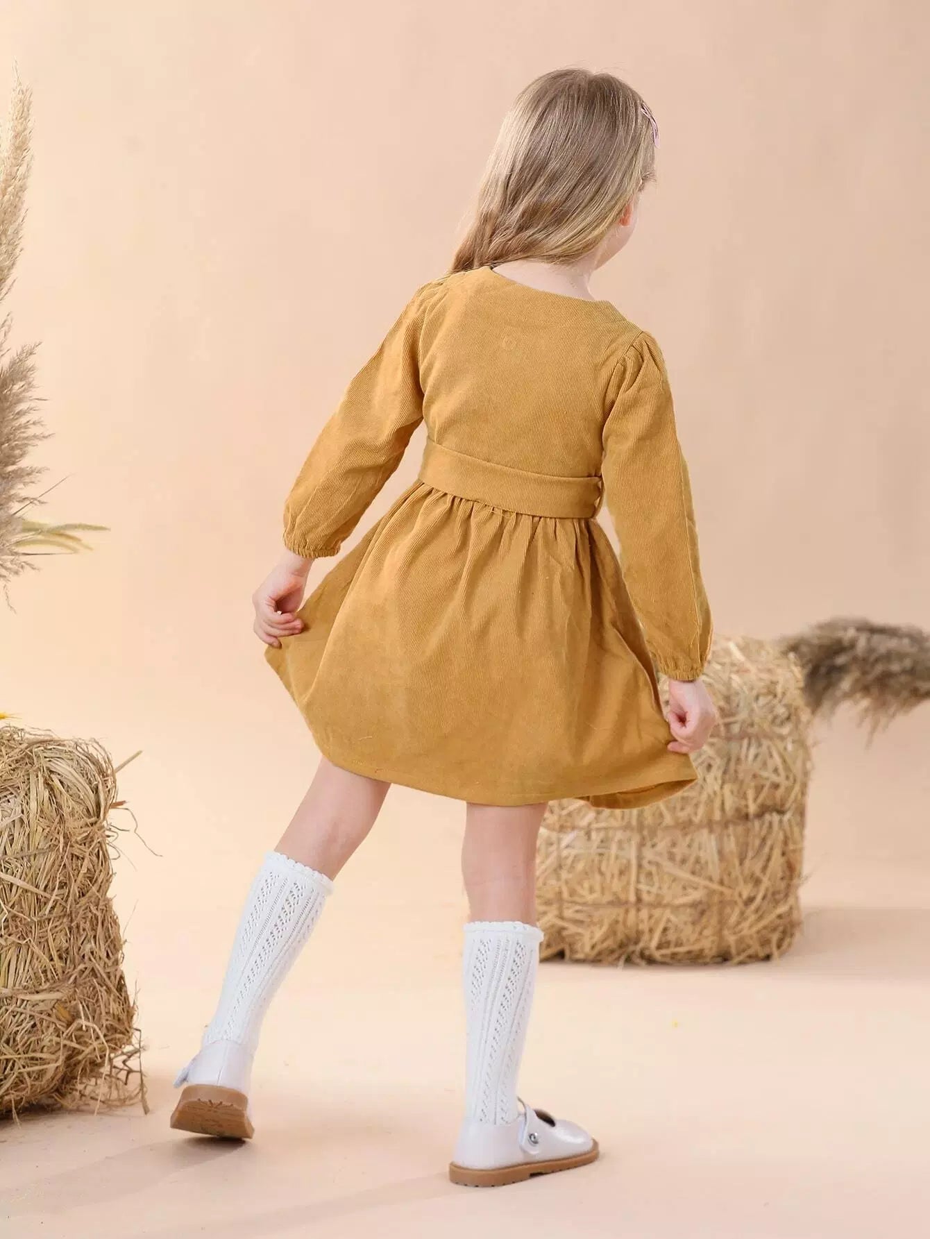 Toddler Girls Square Neck Corduroy Dress Without Belt