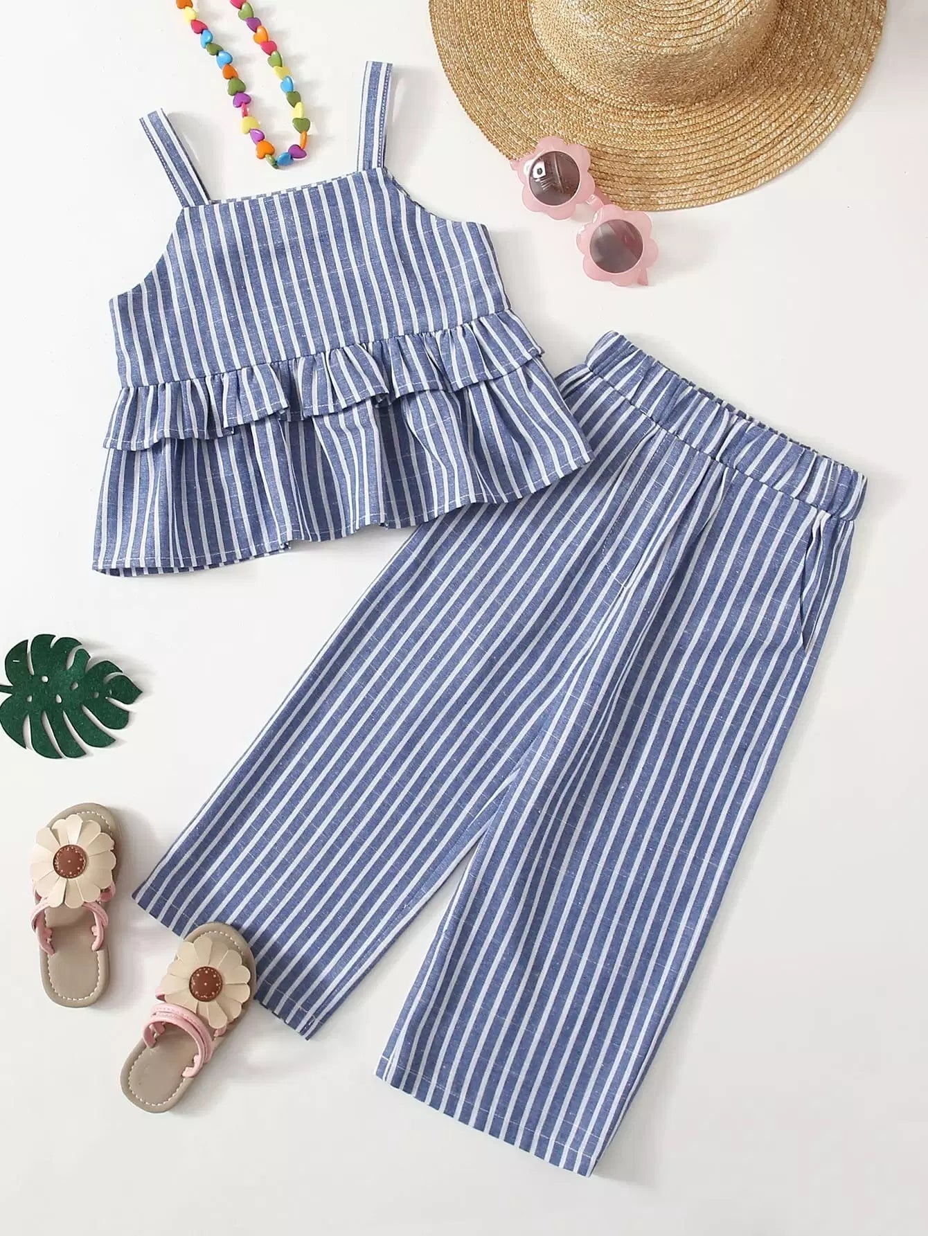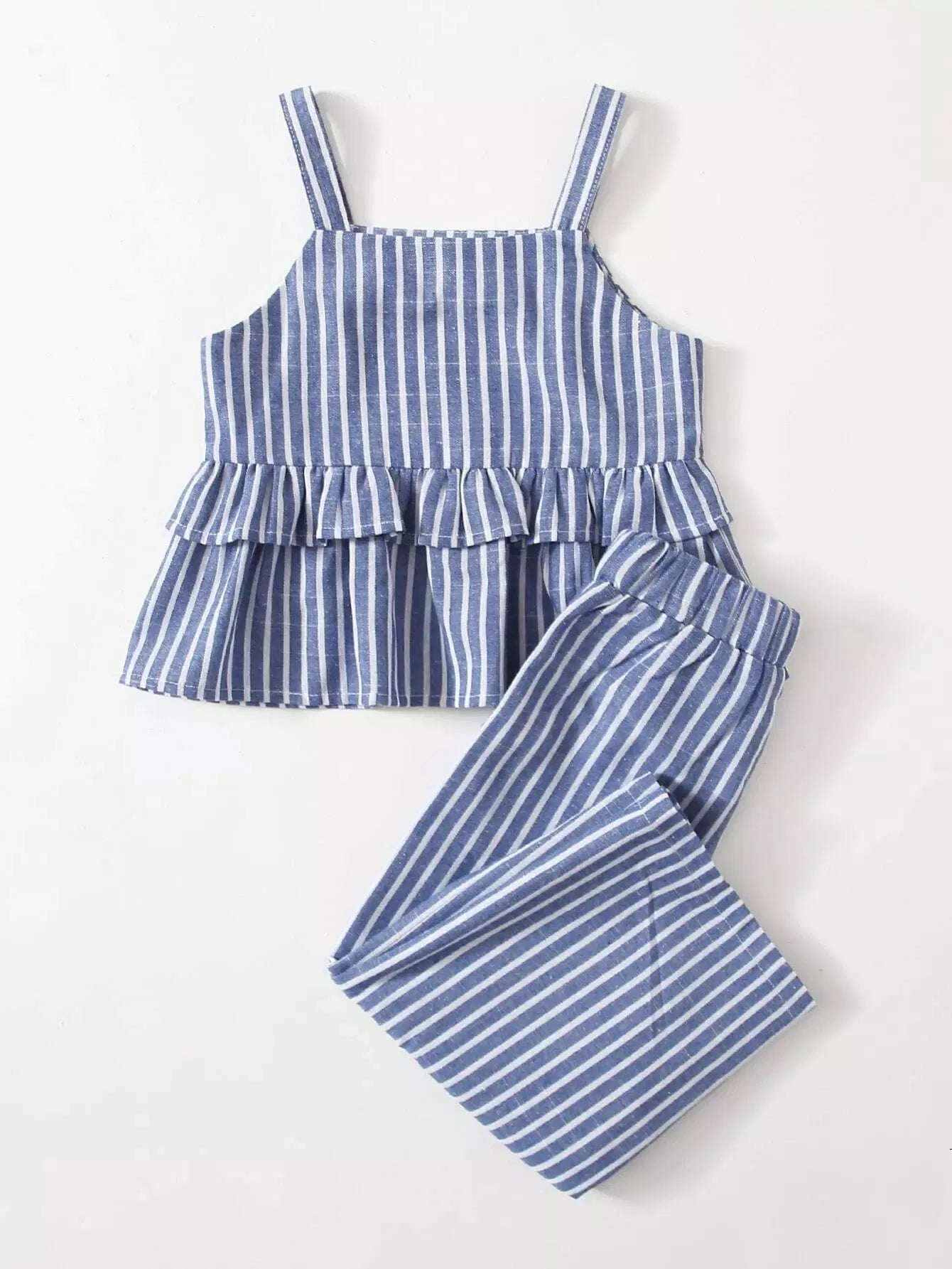 Toddler Girls Striped Ruffle Hem Cami Top & Pants