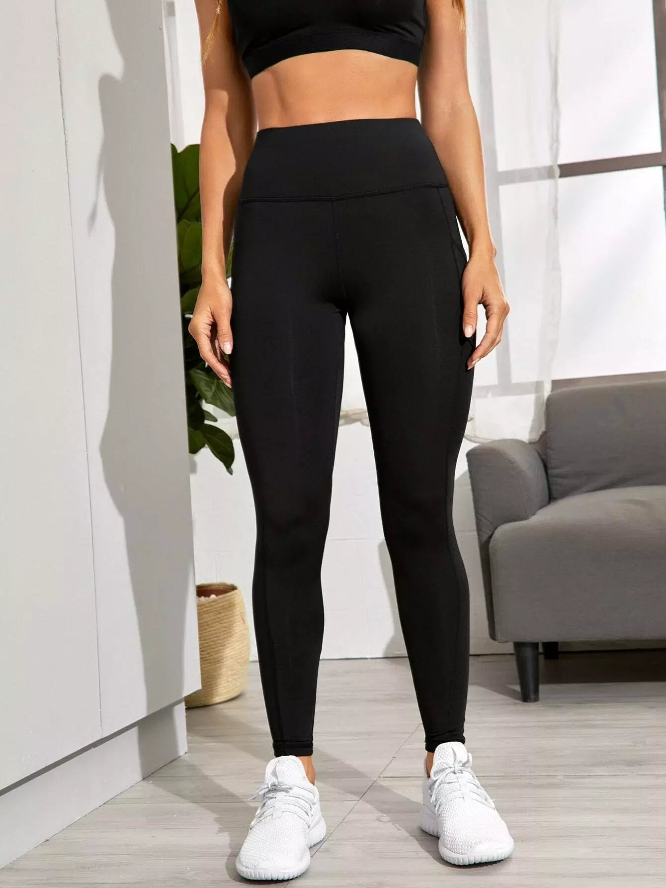 Topstitching Wide Band Waist Sports Leggings With Phone Pocket