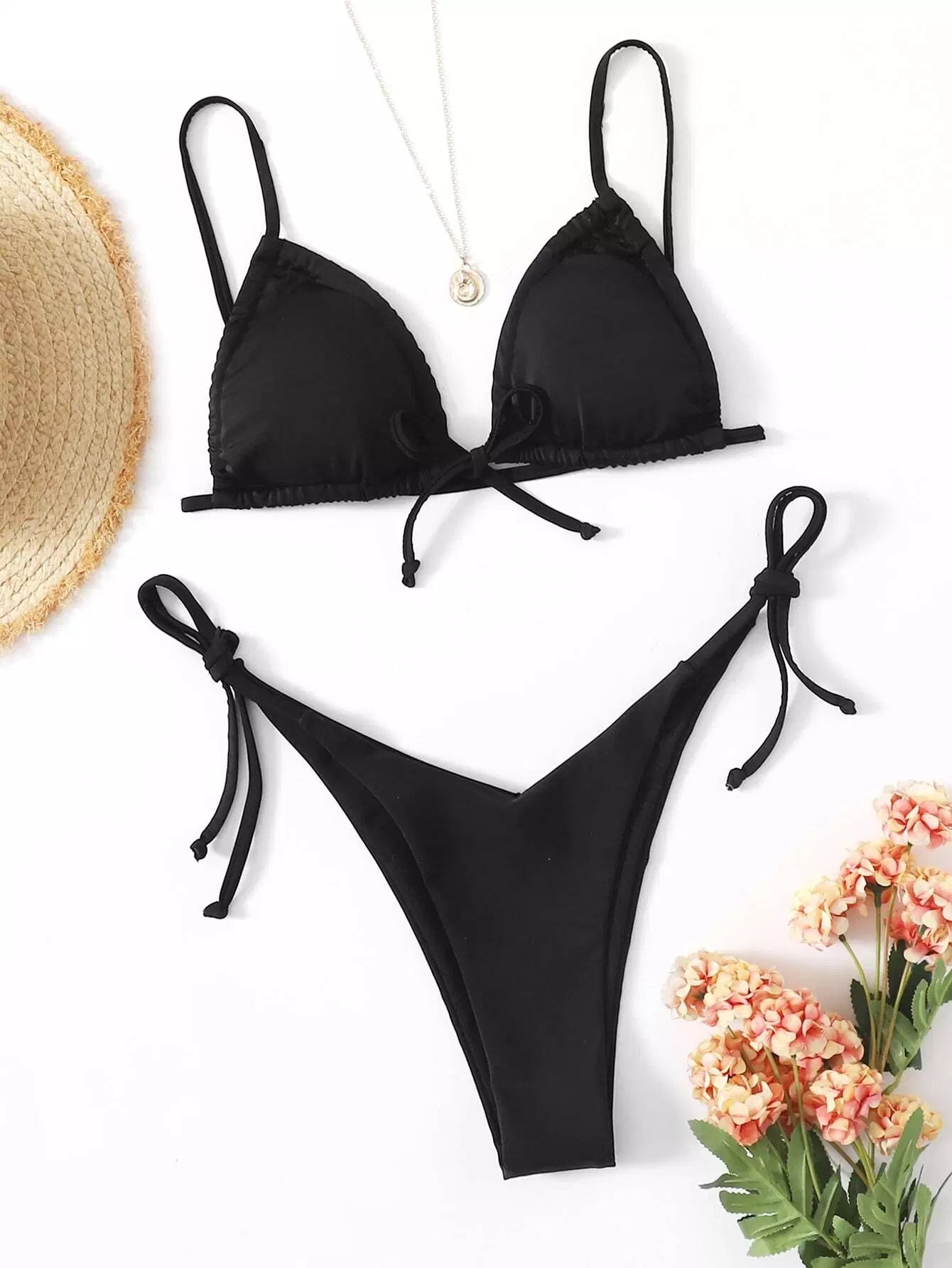 Triangle Tie Side Thong Bikini Swimsuit