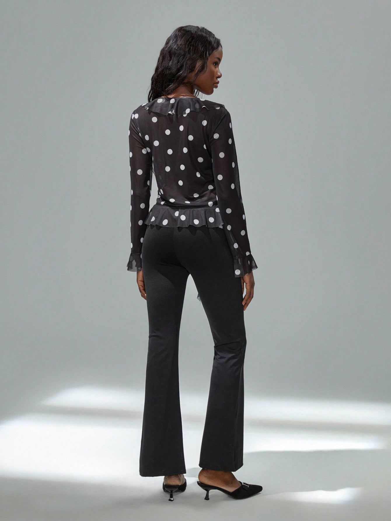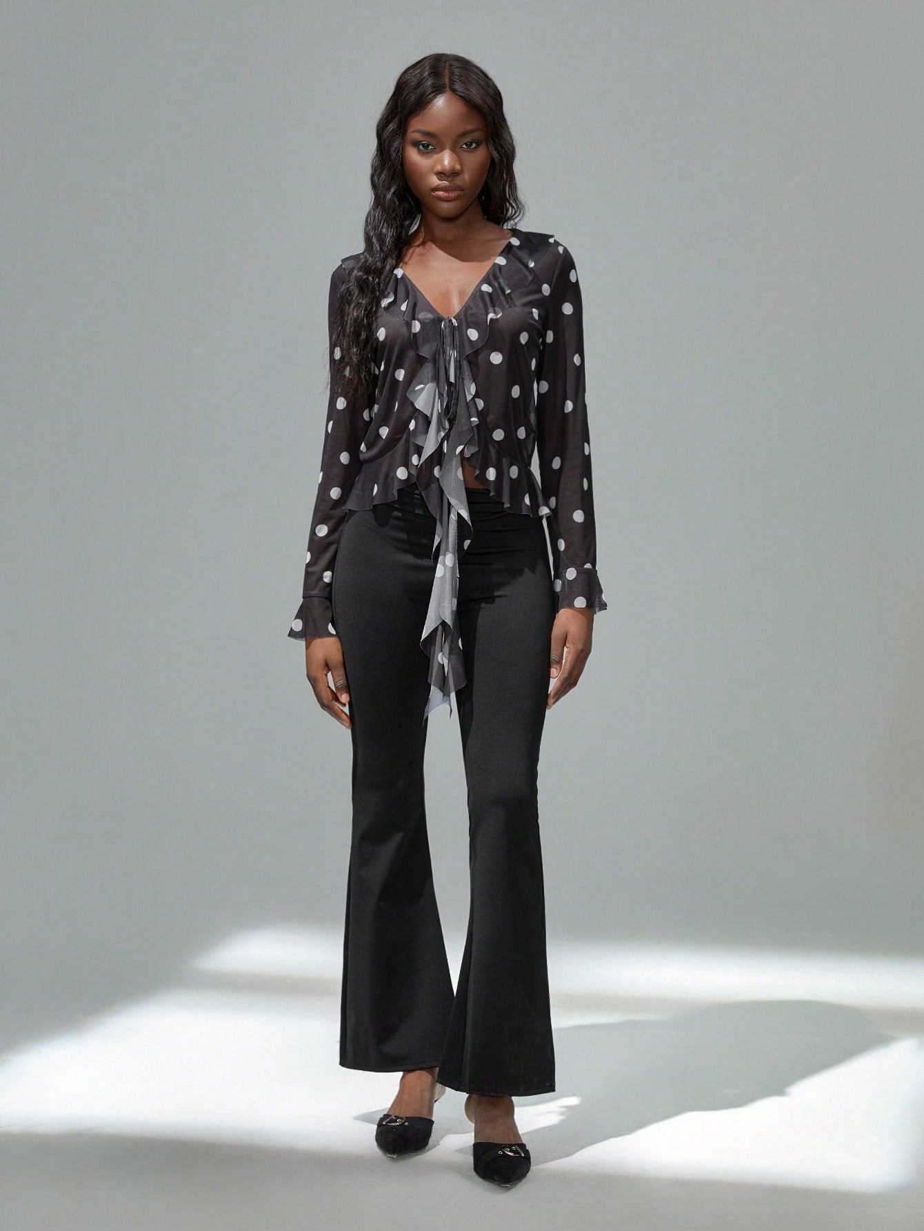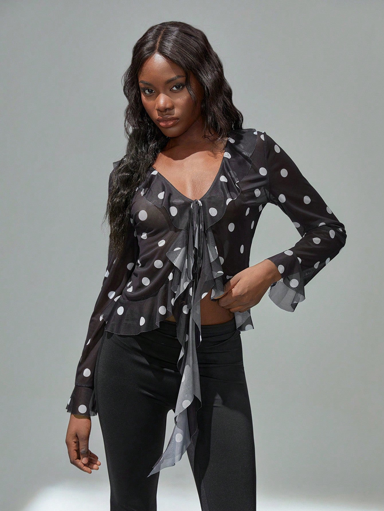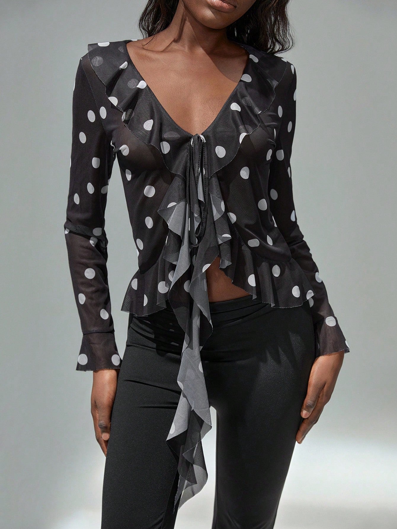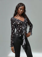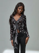 TRNVIE Women's Fashion Casual Polka Dot Vintage Style Short Ruffle Hem Sheer Long Sleeve Sun Protection
