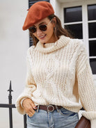 Women - Turtleneck Cable Knit Drop Shoulder Sweater