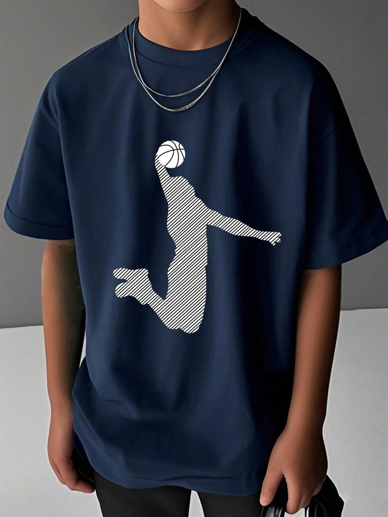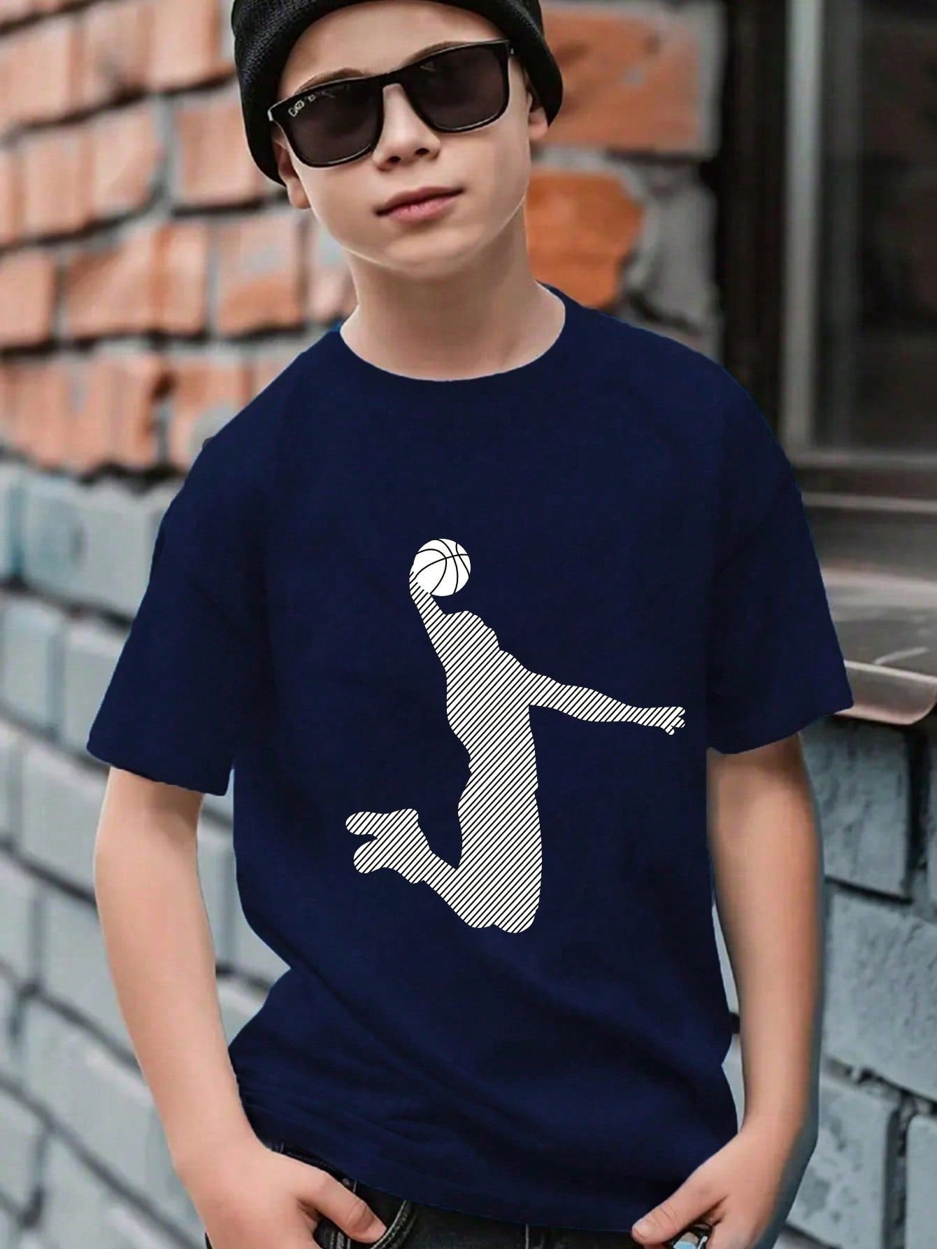 Tween Boy Basketball Print Crew Neck Short Sleeve T-Shirt