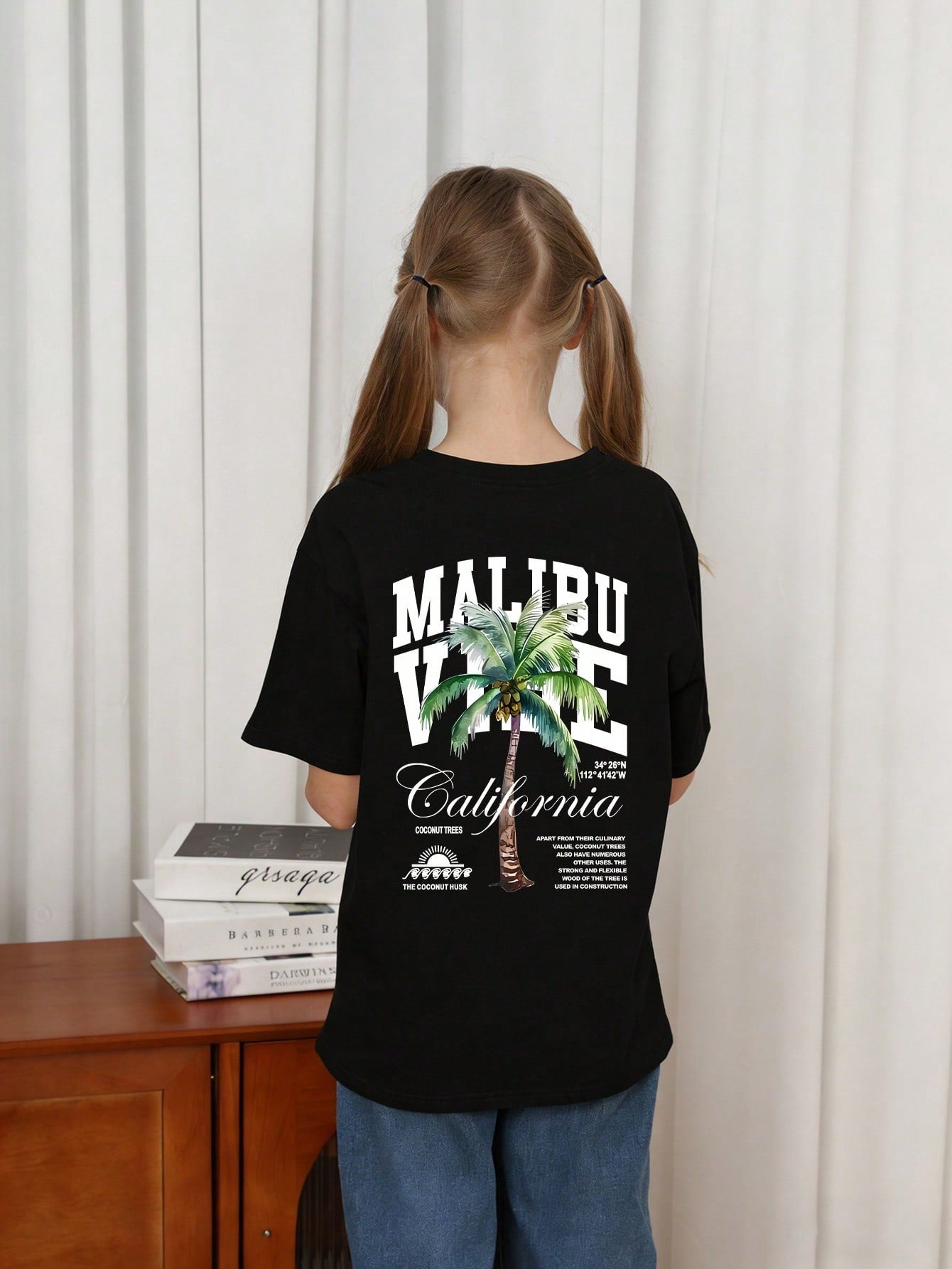 Tween Girl Casual Funny Print Crew Neck Short Sleeve T-Shirt Top