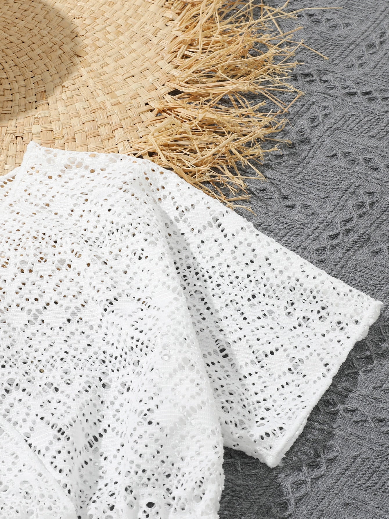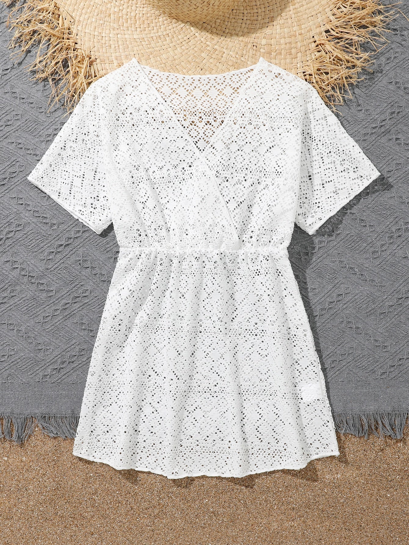 Tween Girl Solid Hollow Out Surplice V Neck Cover Up Summer Holiday