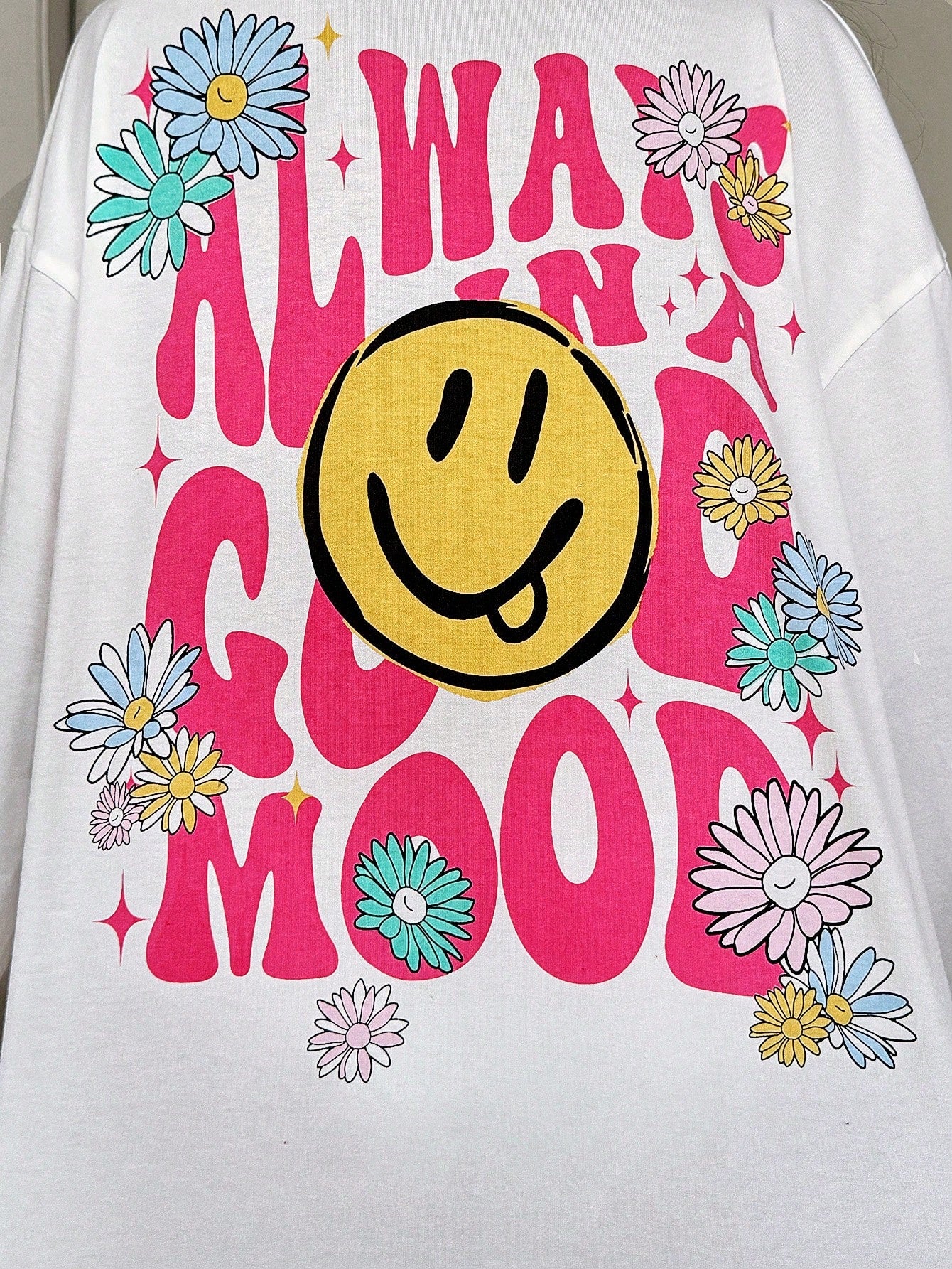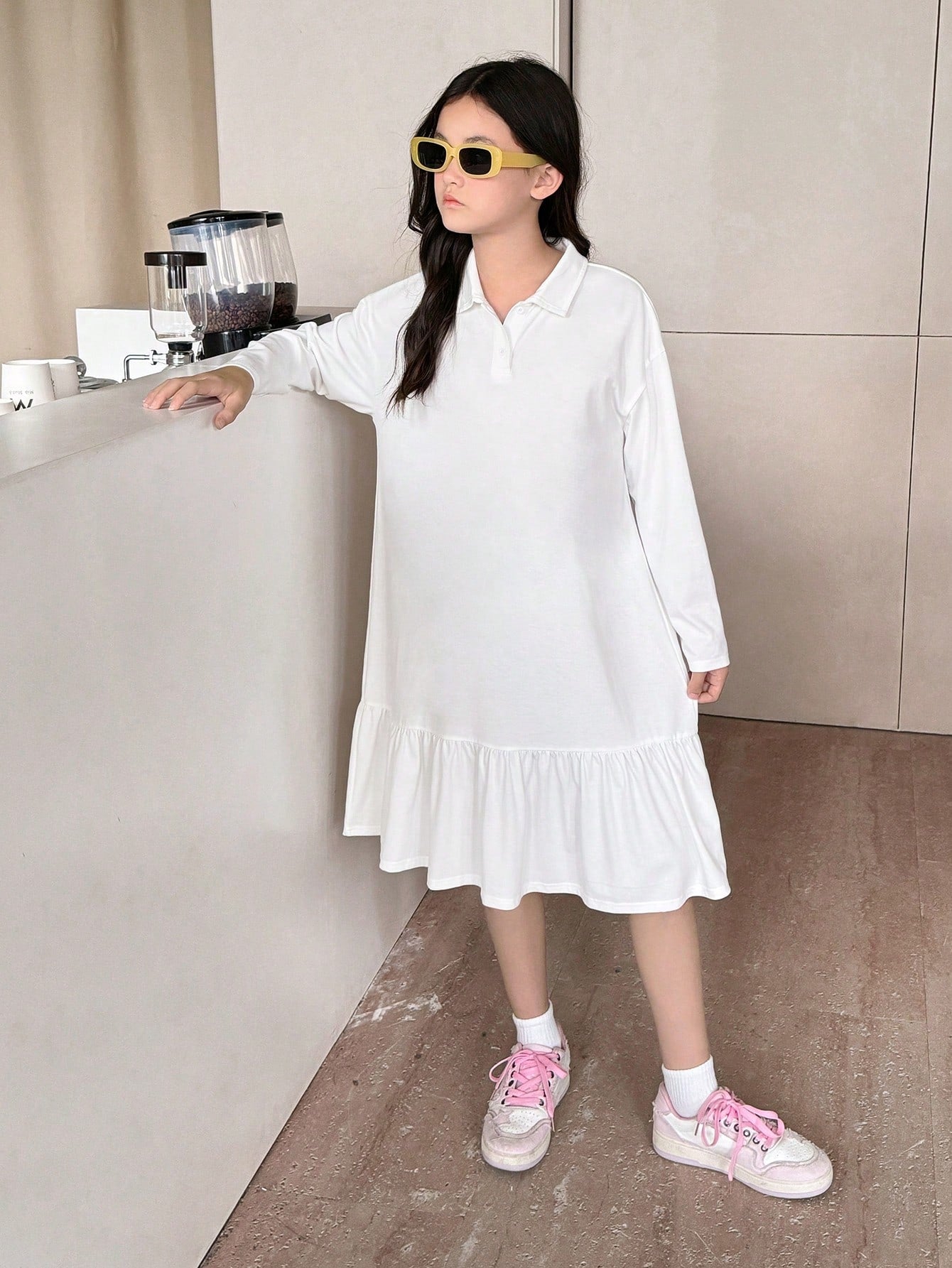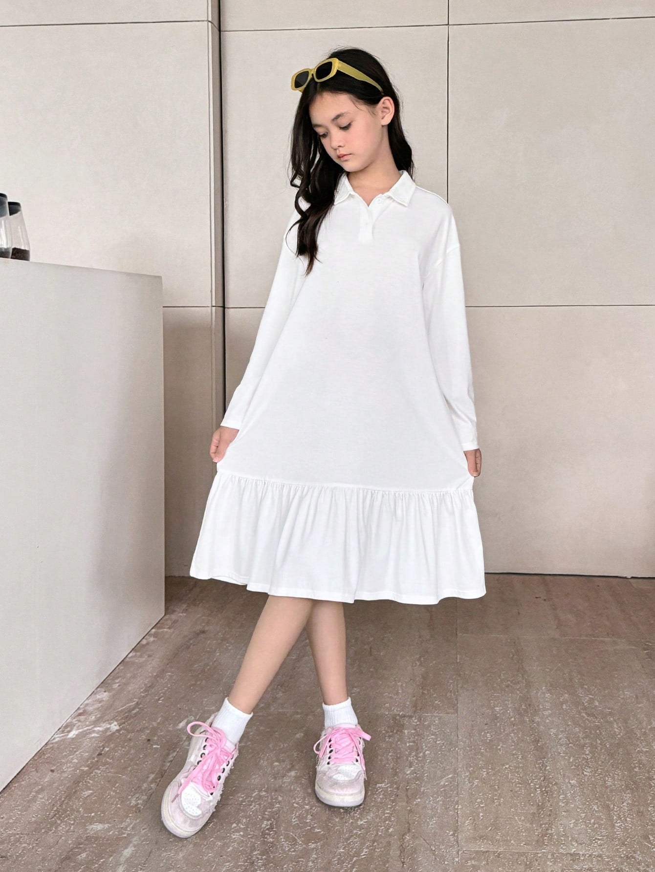Tween Girls Casual Cotton Pique Fabric Back Smiling Face Graphic Print Collared Patchwork Hem Polo Dress,