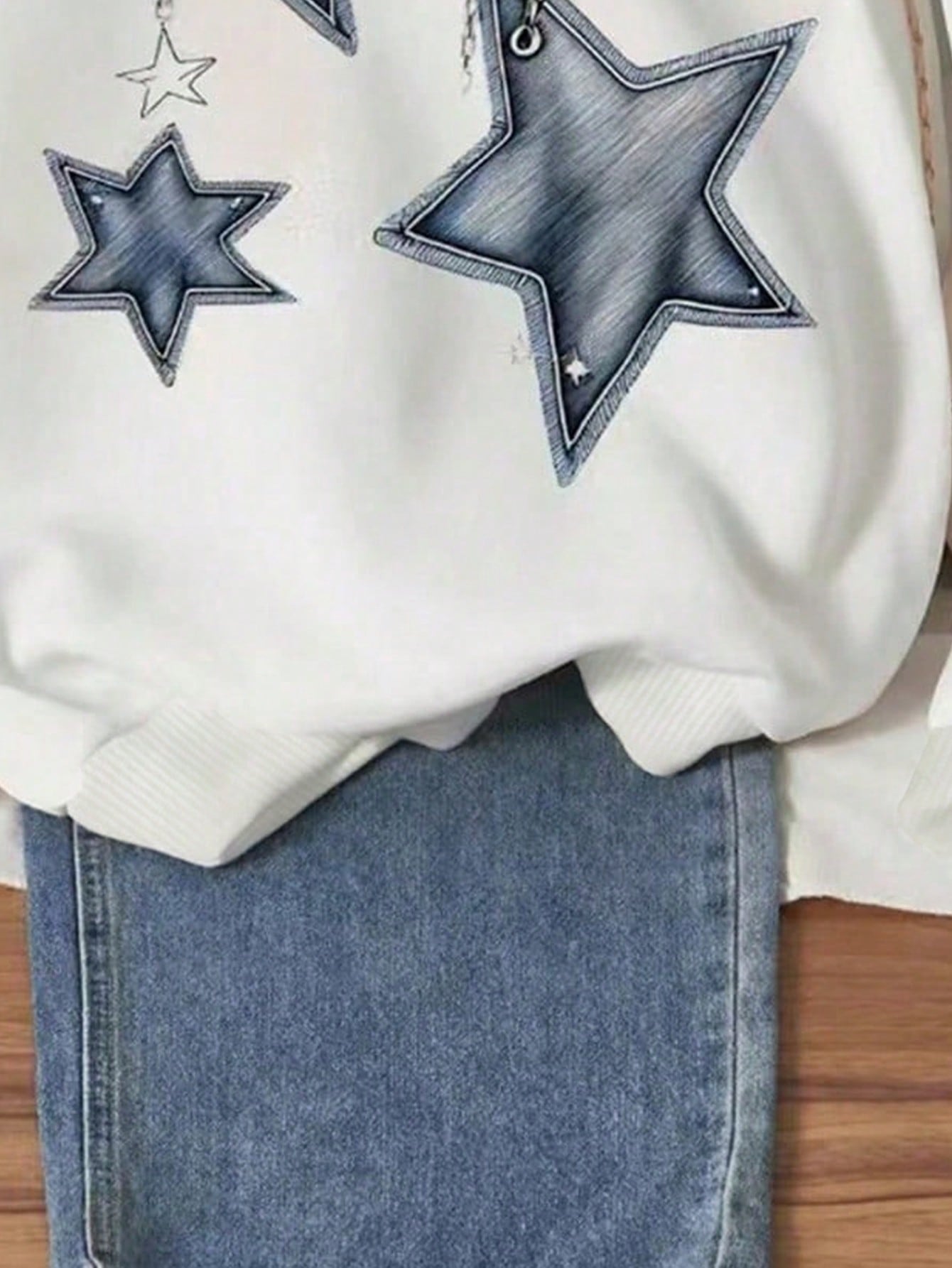 Tween Girls Star Print Round Neck Long Sleeve Casual Sweatshirt