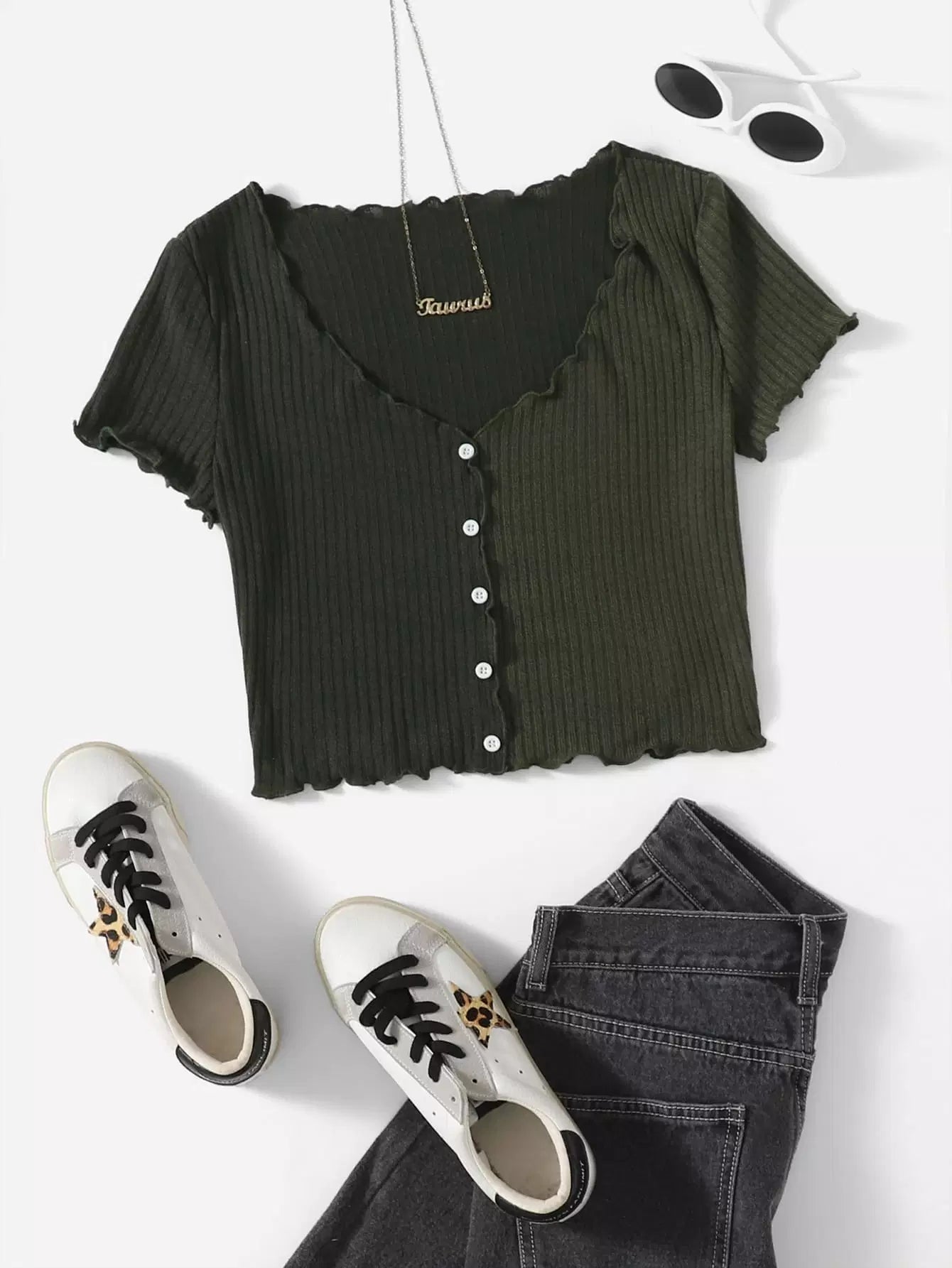 Two Tone Lettuce Trim Tee