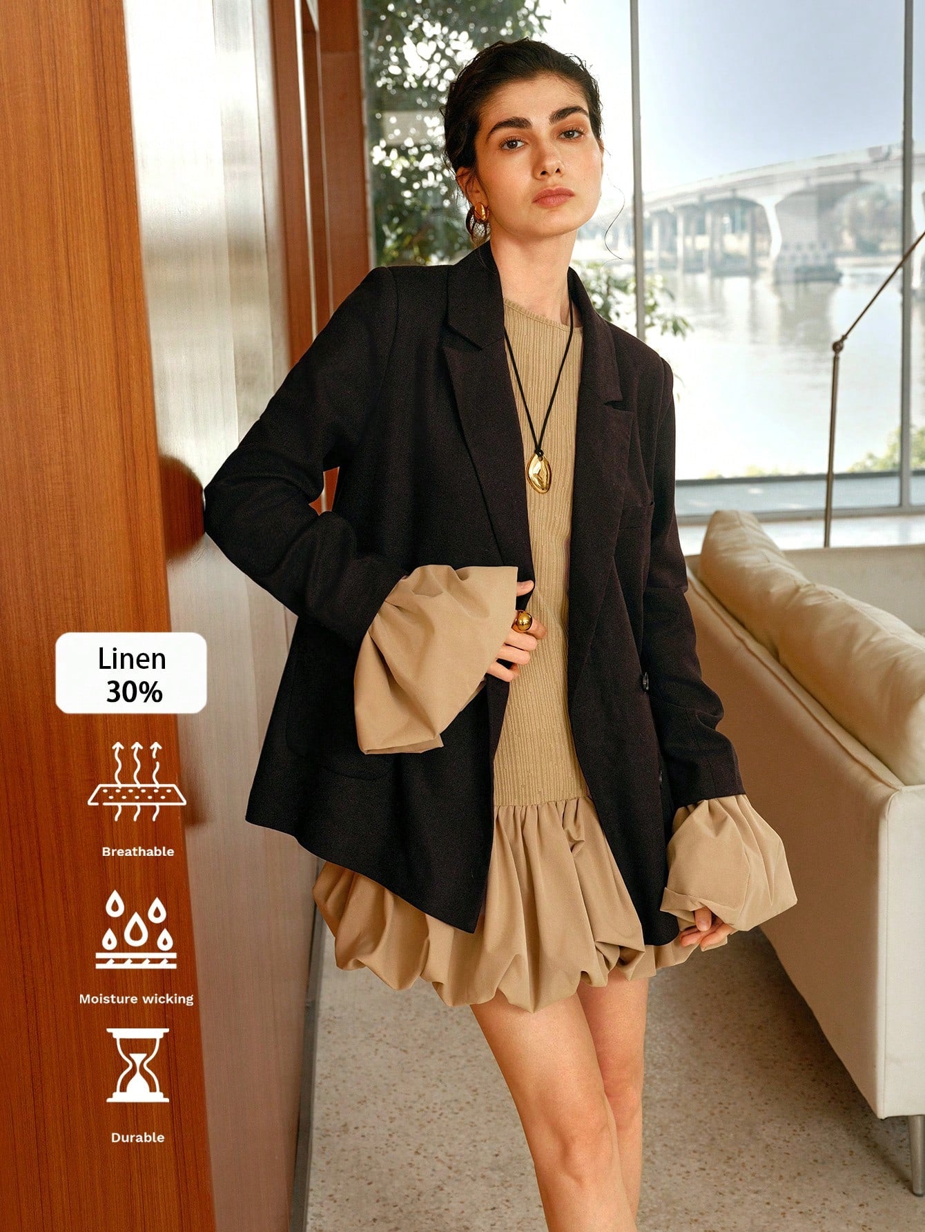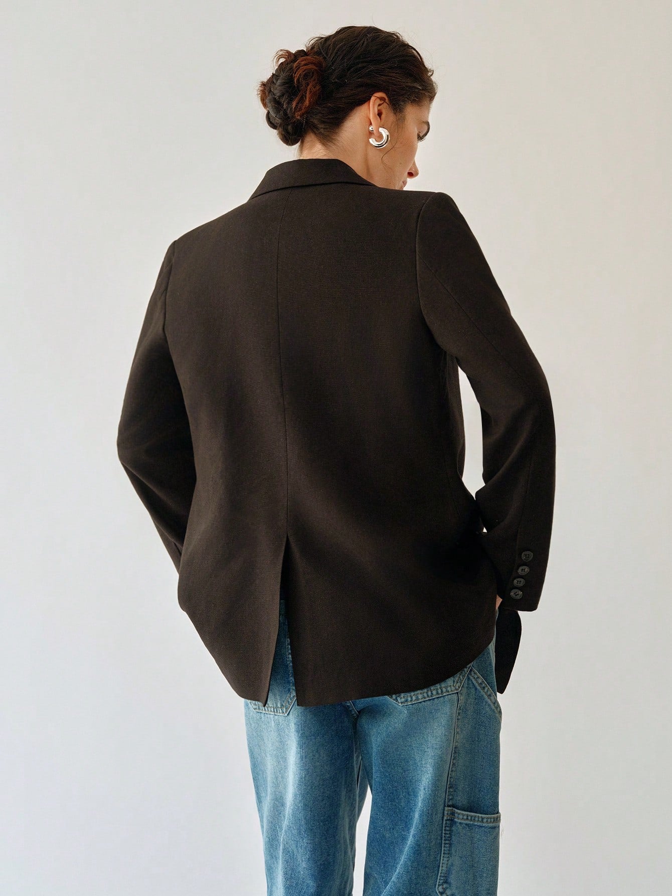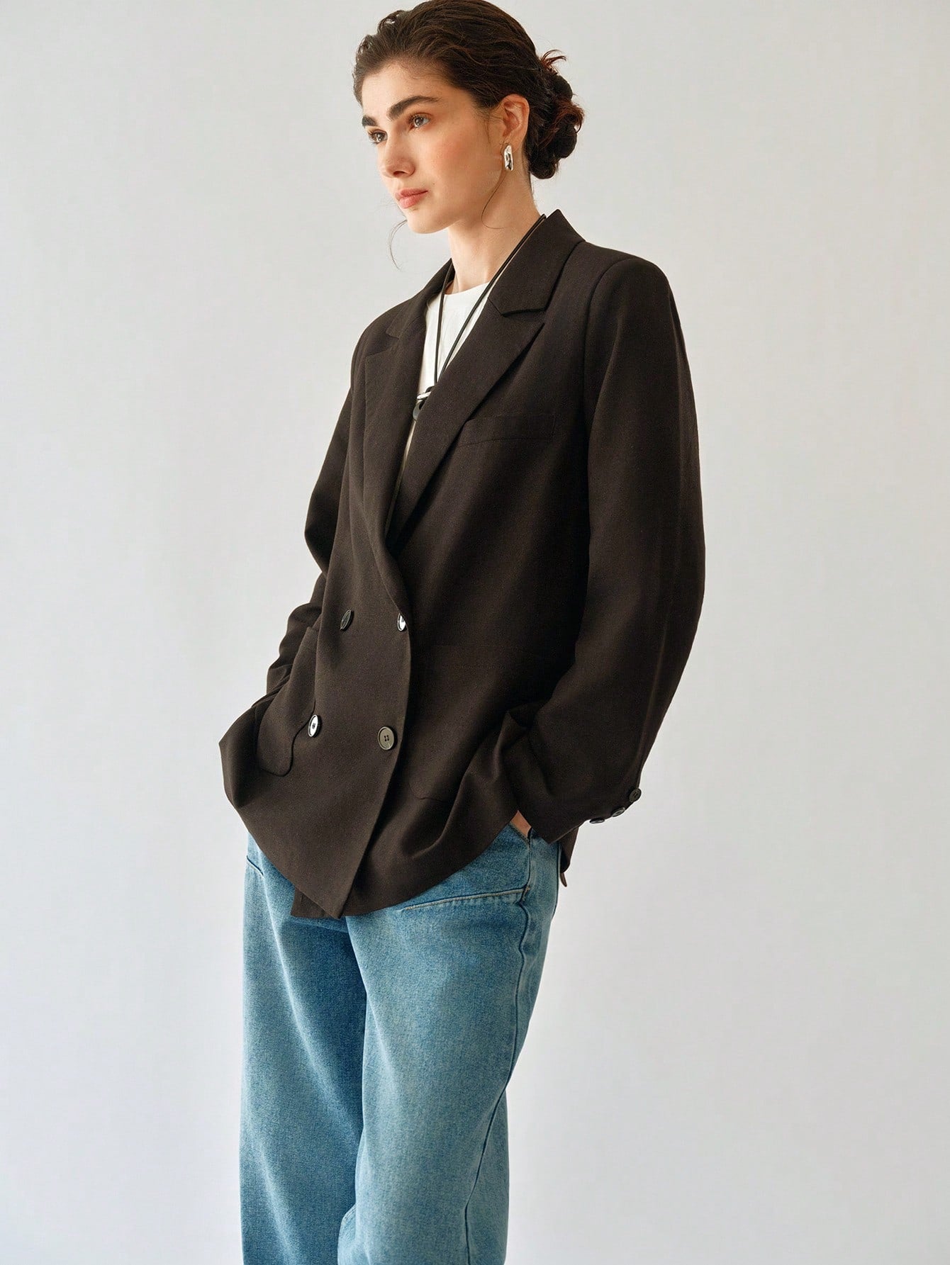 Uhlyne Fashionable Woven Linen Double-Breasted Revere Collar Long Sleeve Slim Fit Casual Women Suit Jacket