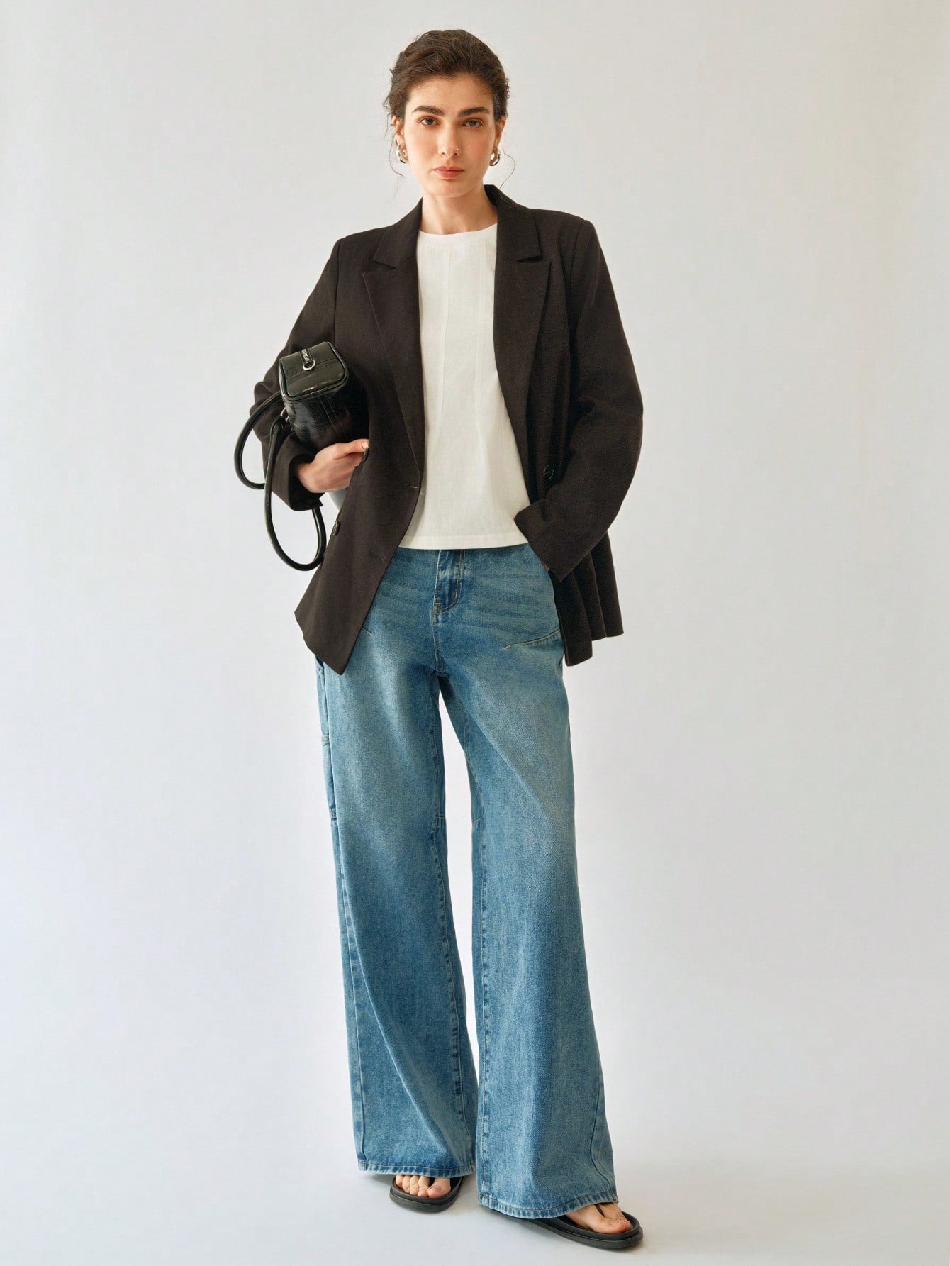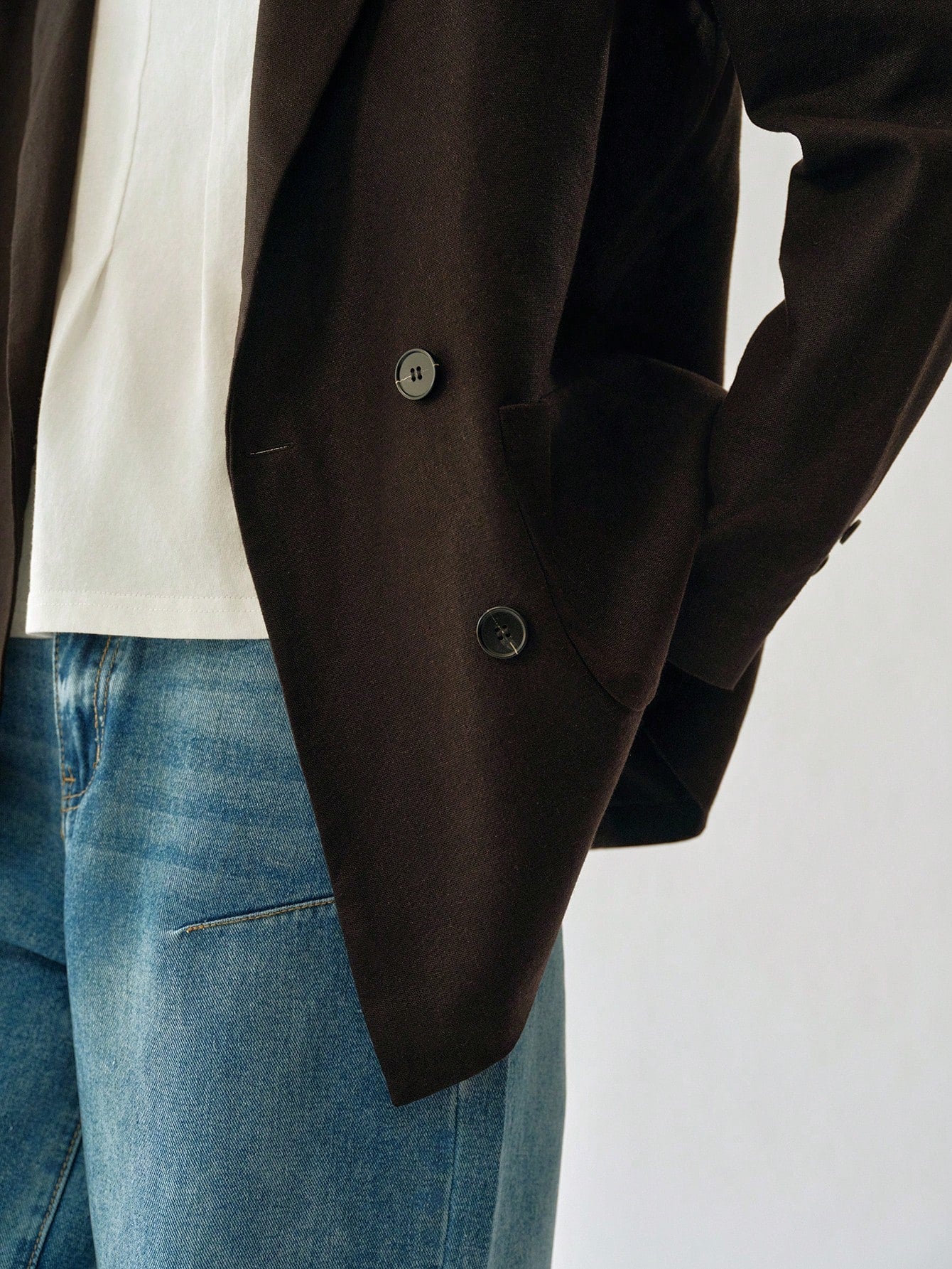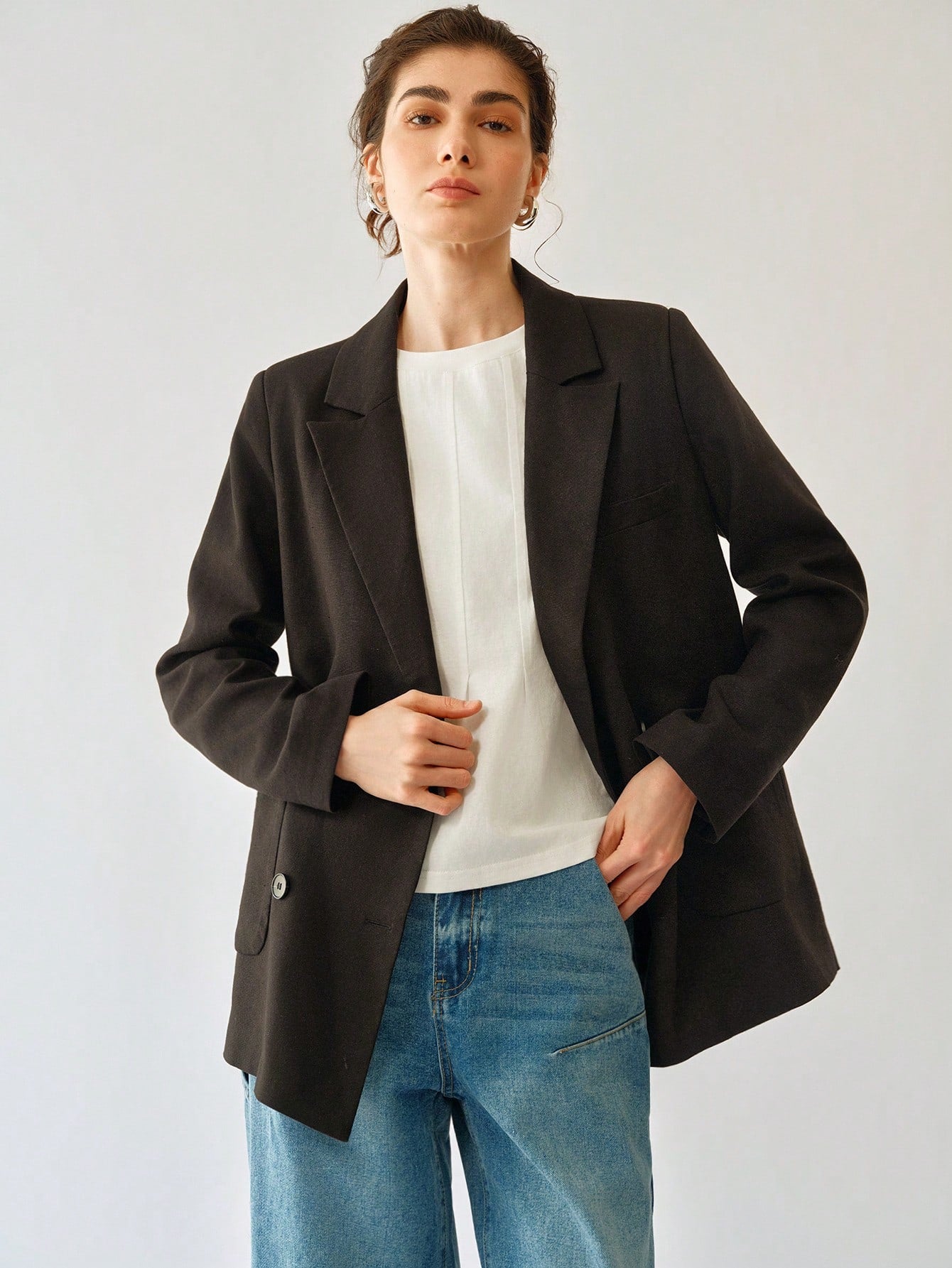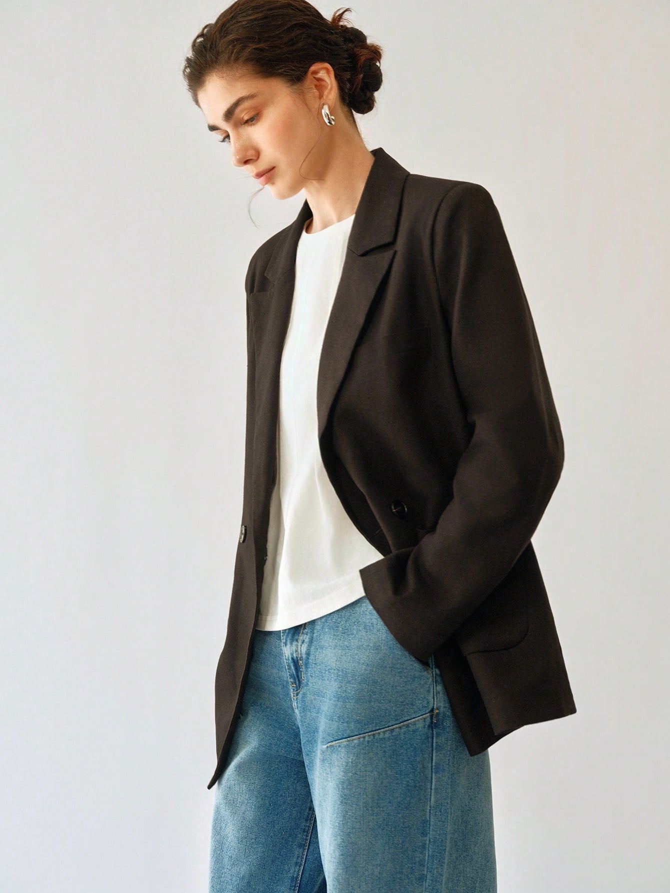 Uhlyne Fashionable Woven Linen Double-Breasted Revere Collar Long Sleeve Slim Fit Casual Women Suit Jacket