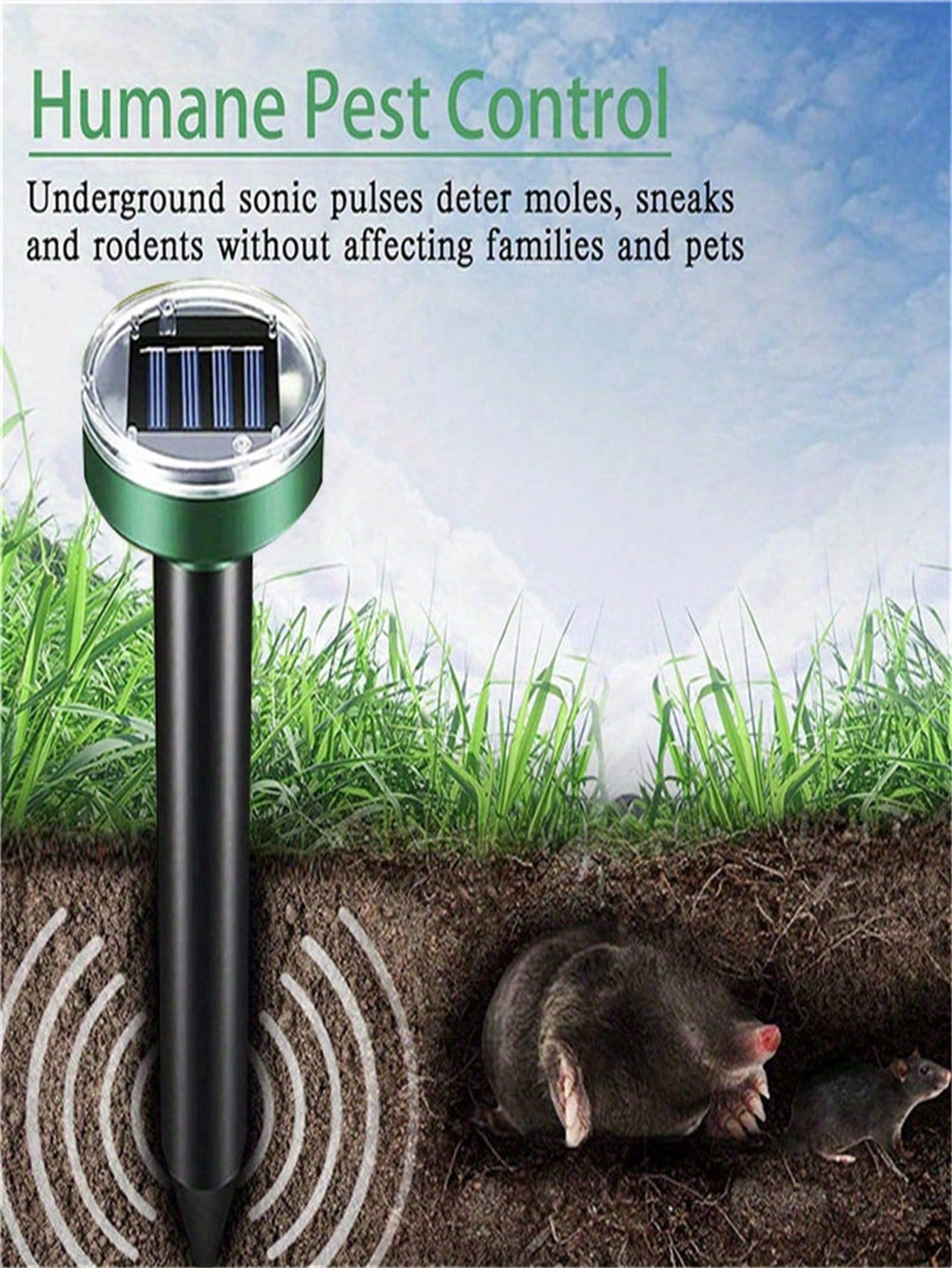 Ultrasonic Solar-Powered Lawn Light For Outdoor Pest Control