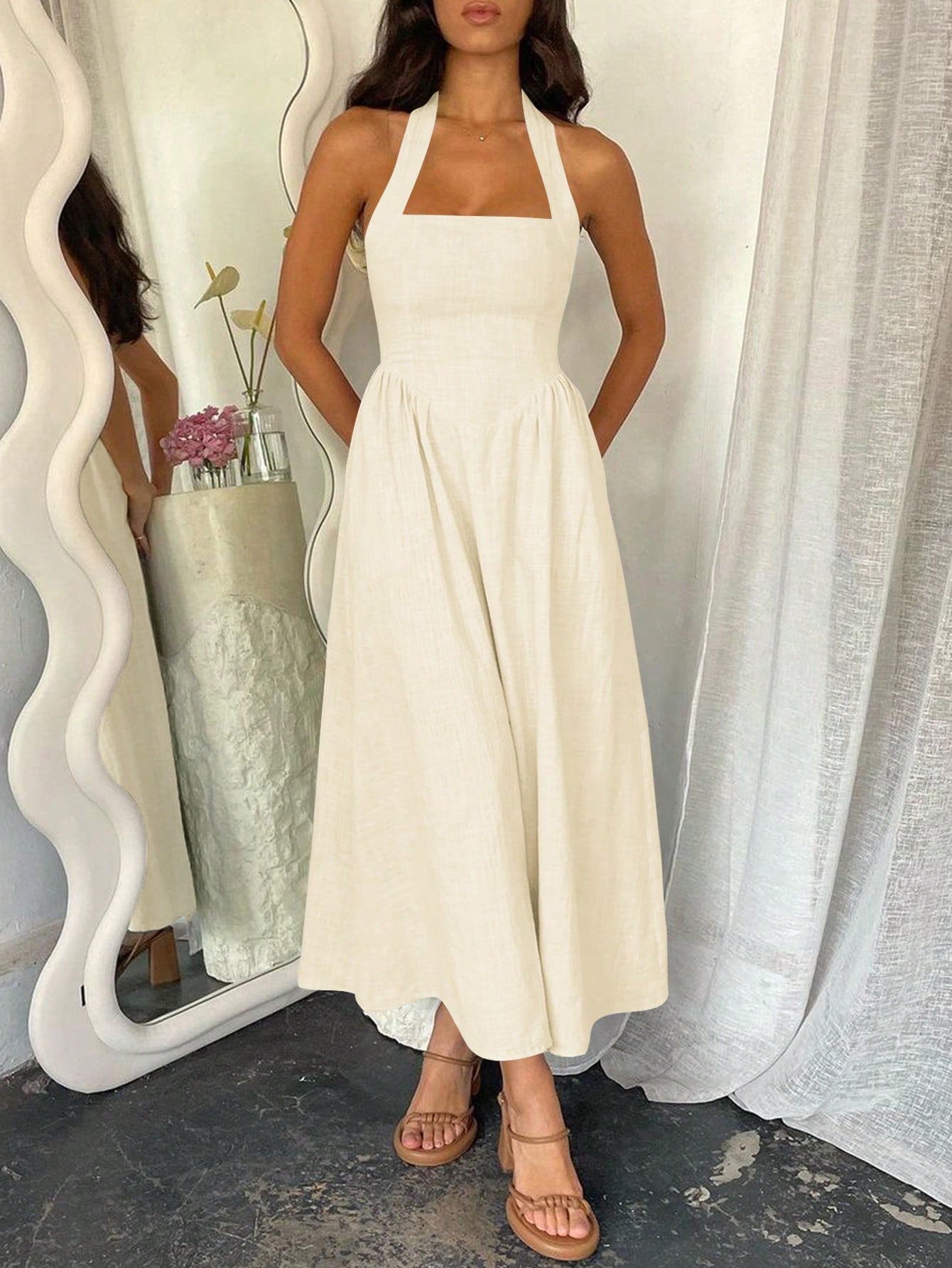 Unadoll Women's Halter Backless Zip-Pleated Casual Elegant Dress-Perfect For Beach Vacations